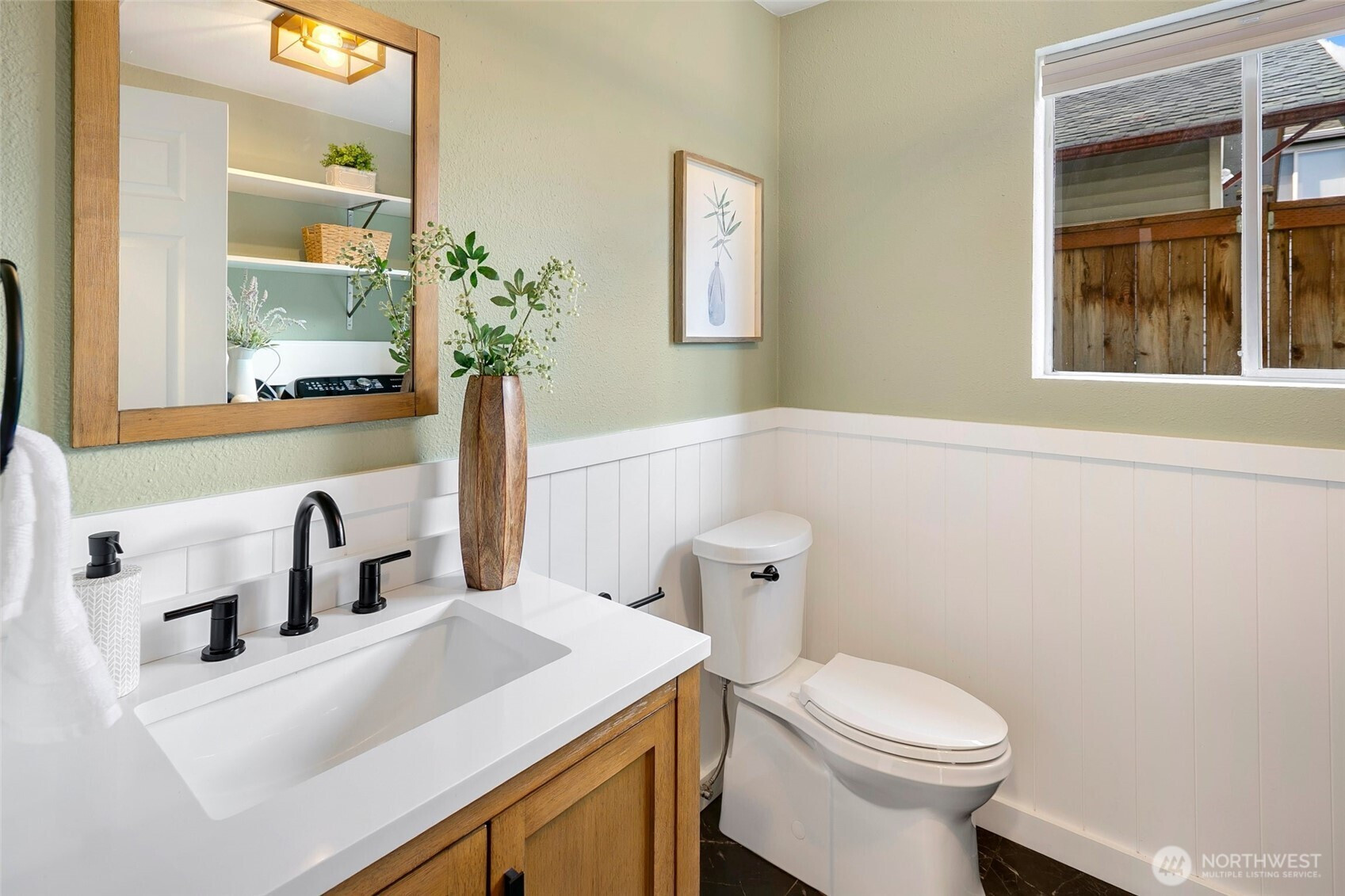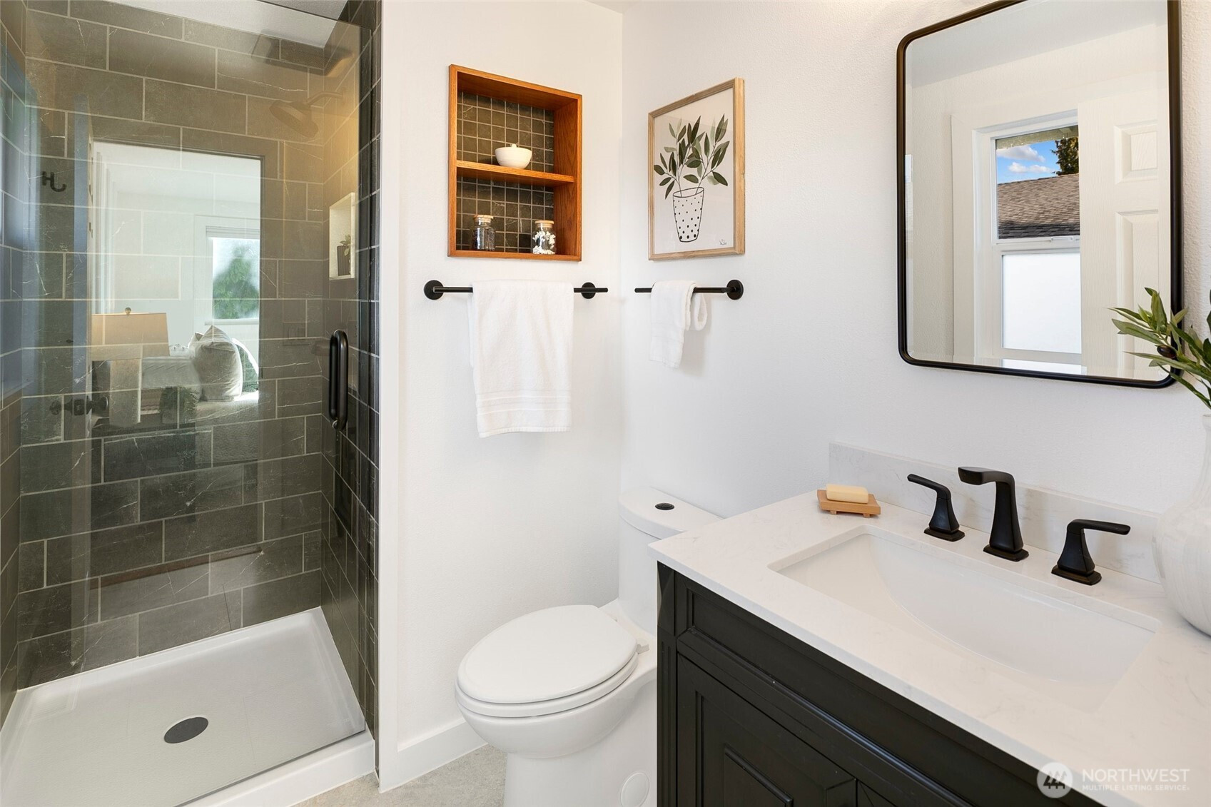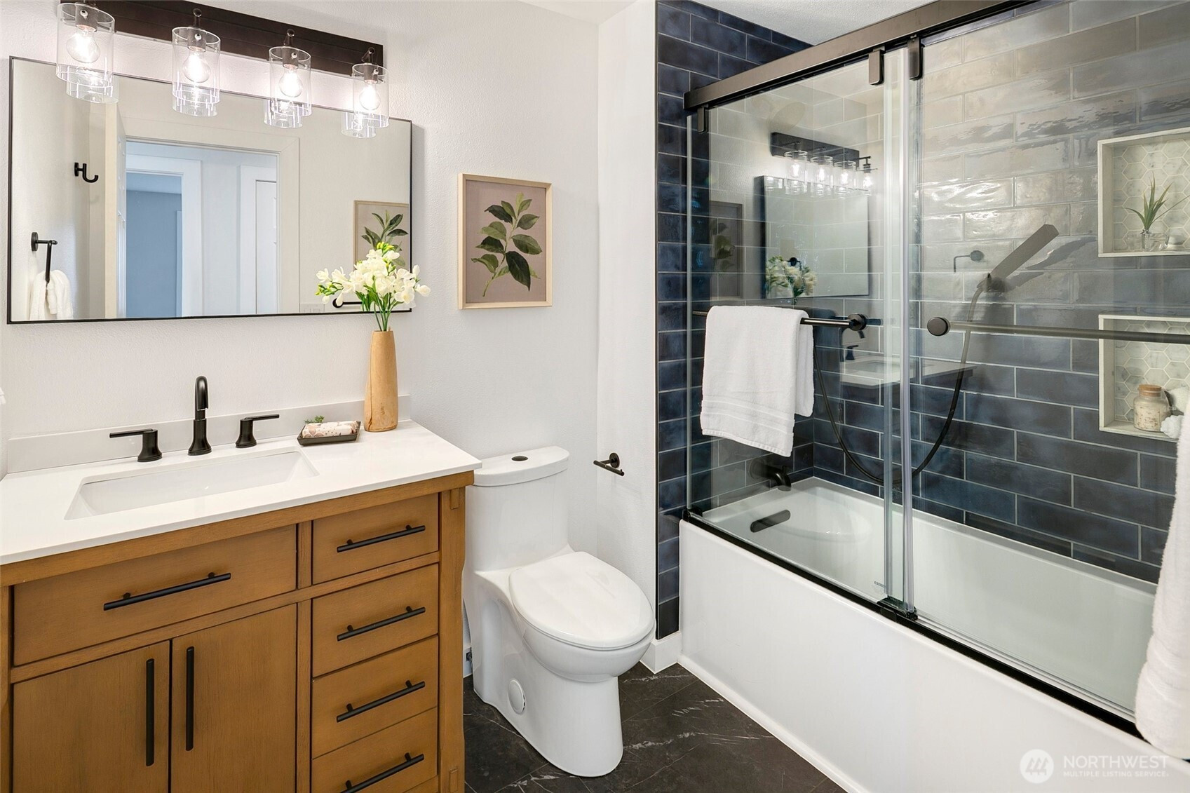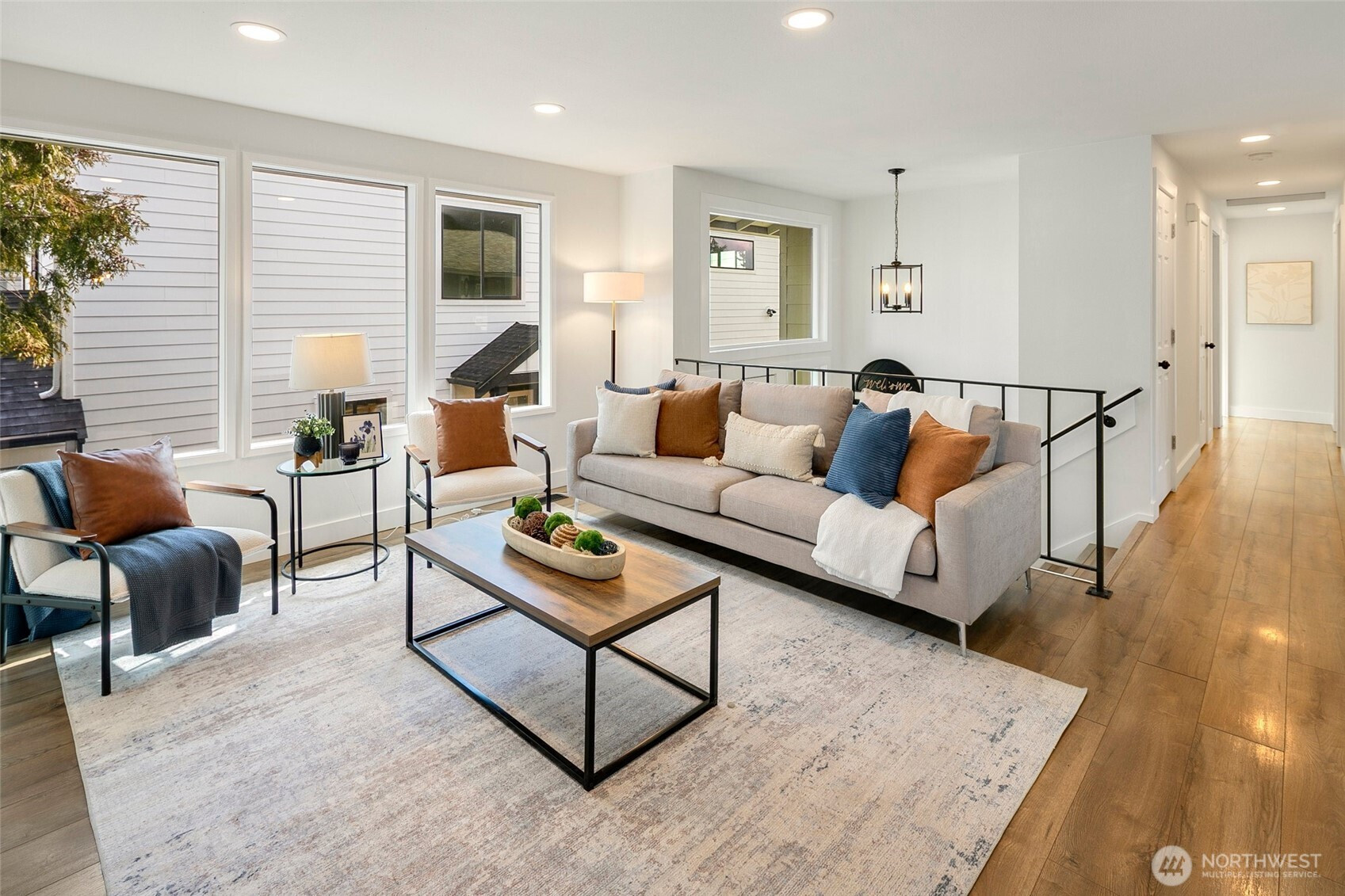Reimagined Greenwood beauty with designer-level finishes throughout. Sun-drenched interiors and warm wide-plank flooring set the tone, while a striking statement fireplace anchors the main living space. The updated kitchen shines with crisp white cabinetry, stainless appliances, open shelving, and stylish accents that blend modern elegance with everyday functionality. Three bedrooms and two beautifully refreshed bathrooms on the main level include a serene primary suite with en-suite bath. The lower level offers exceptional versatility with a spacious rec room featuring a dramatic second fireplace, custom navy wet bar with wood counters, and built-in shelving, ideal for entertaining, guests, or multi-generational living. A dedicated office and additional bath complete the space. Step outside to a charming back deck and fully fenced yard, perfect for gatherings or quiet mornings. A massive two-car garage provides abundant storage and convenience. All just minutes to Green Lake, Trader Joe’s, parks, and the vibrant dining scene that makes Greenwood so loved.