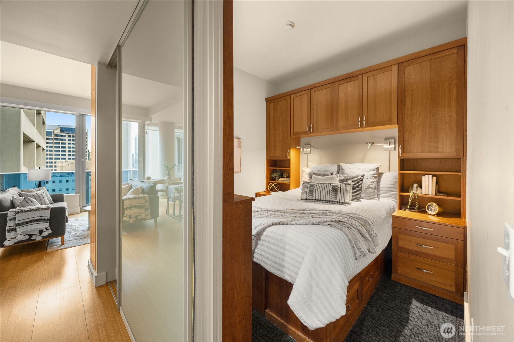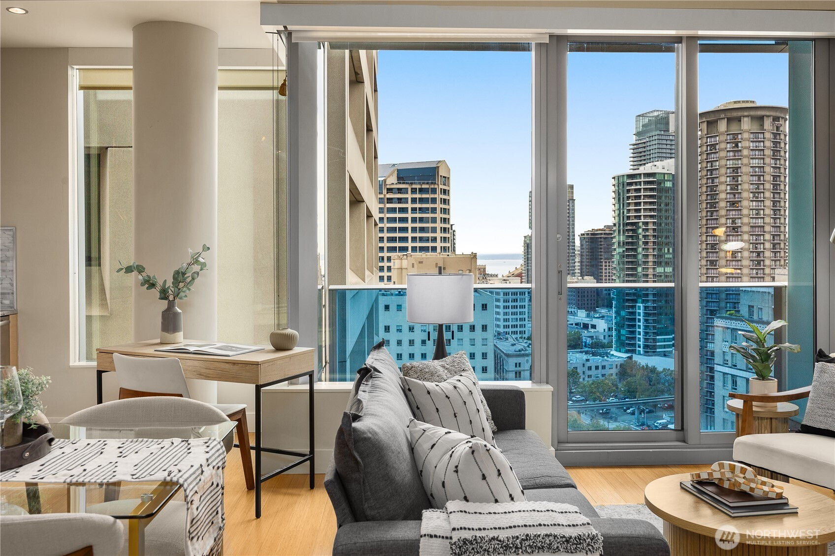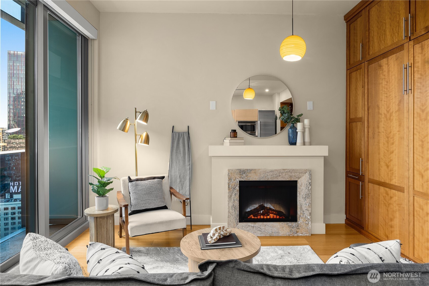 (503) 893-8874Sweeping views of Downtown Seattle, Puget Sound & the Olympics through a wall of windows. Remarkable location at the renowned Olive 8 - central to everything Seattle has to offer. Large open living w/vaulted ceilings, gourmet chef's kitchen, pantry, office space, open dining, electric fireplace, spacious outdoor deck & custom built Murphy bed in the main living space. Separate primary bedroom area is private & features high ceilings, custom oak cabinetry & slider doors. Bathroom has all the luxury finishes w/too many to list. New HVAC system ($12K+), New W/D & much more! Unit also comes w/one parking space, one storage unit, owner's lounge & other Hyatt Hotel offerings. NO RENT CAP! Perfect for living or great as a rental investment!