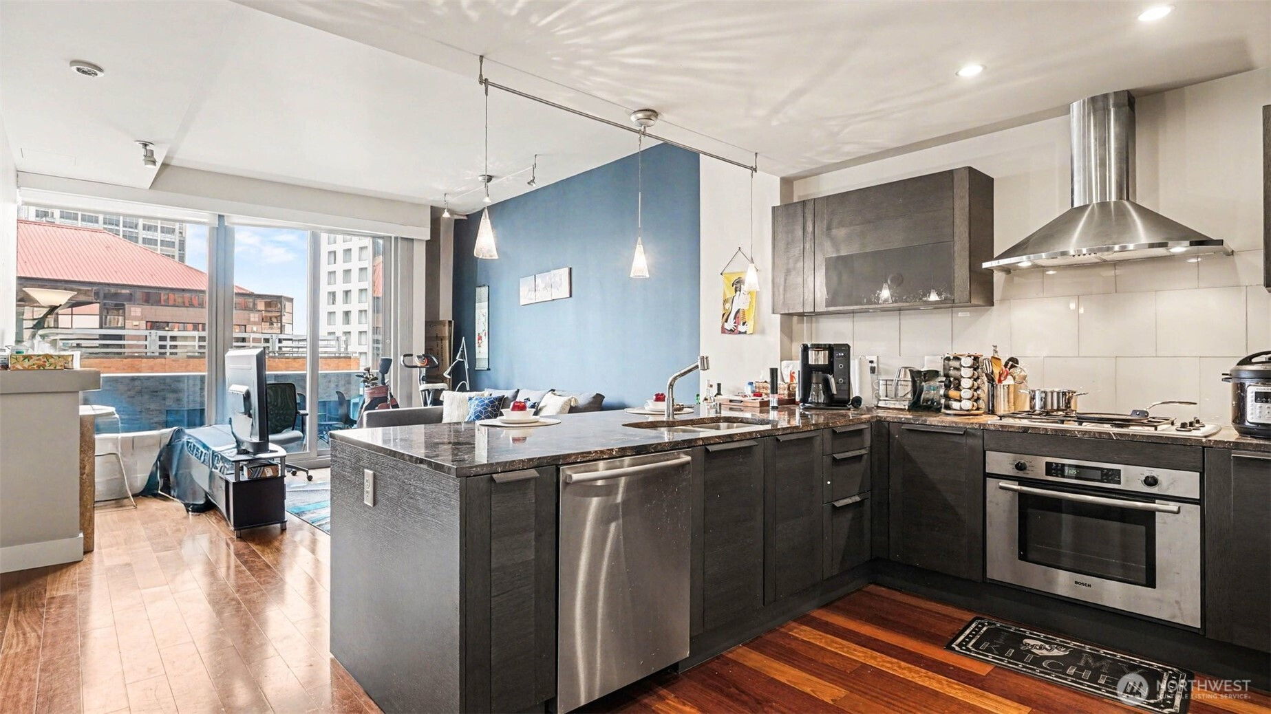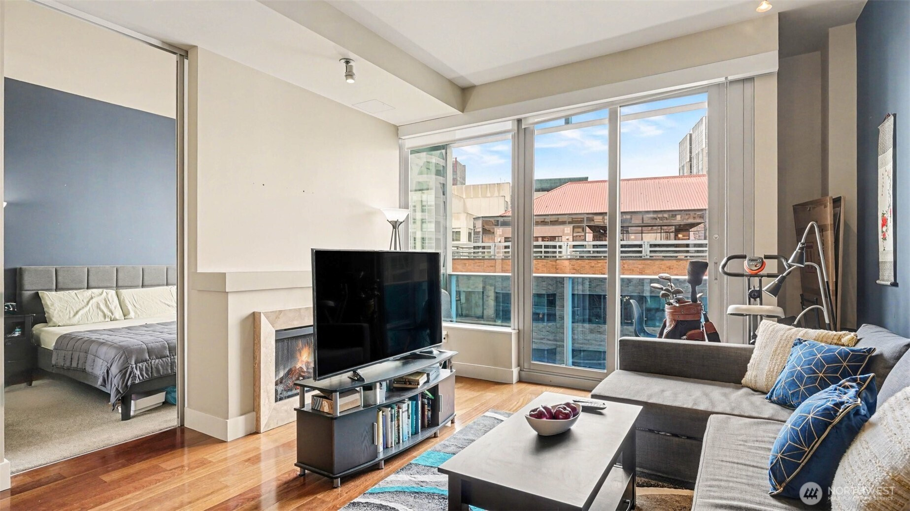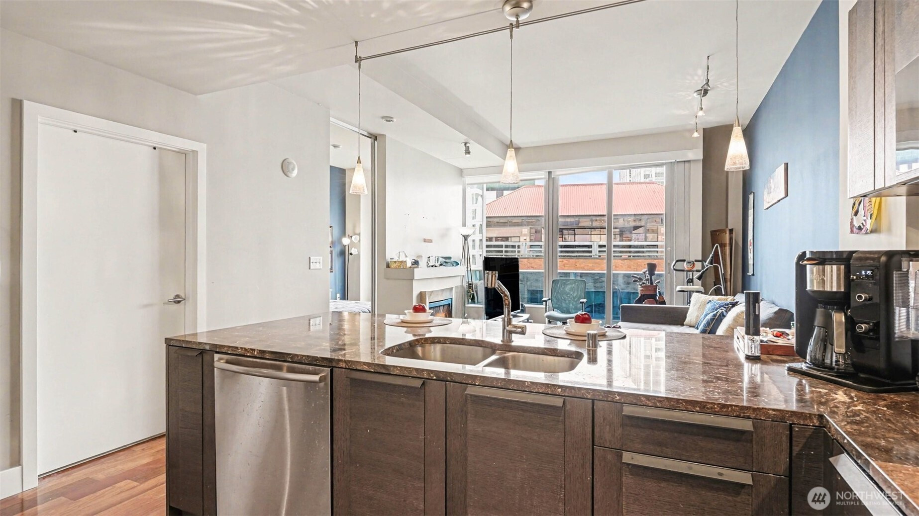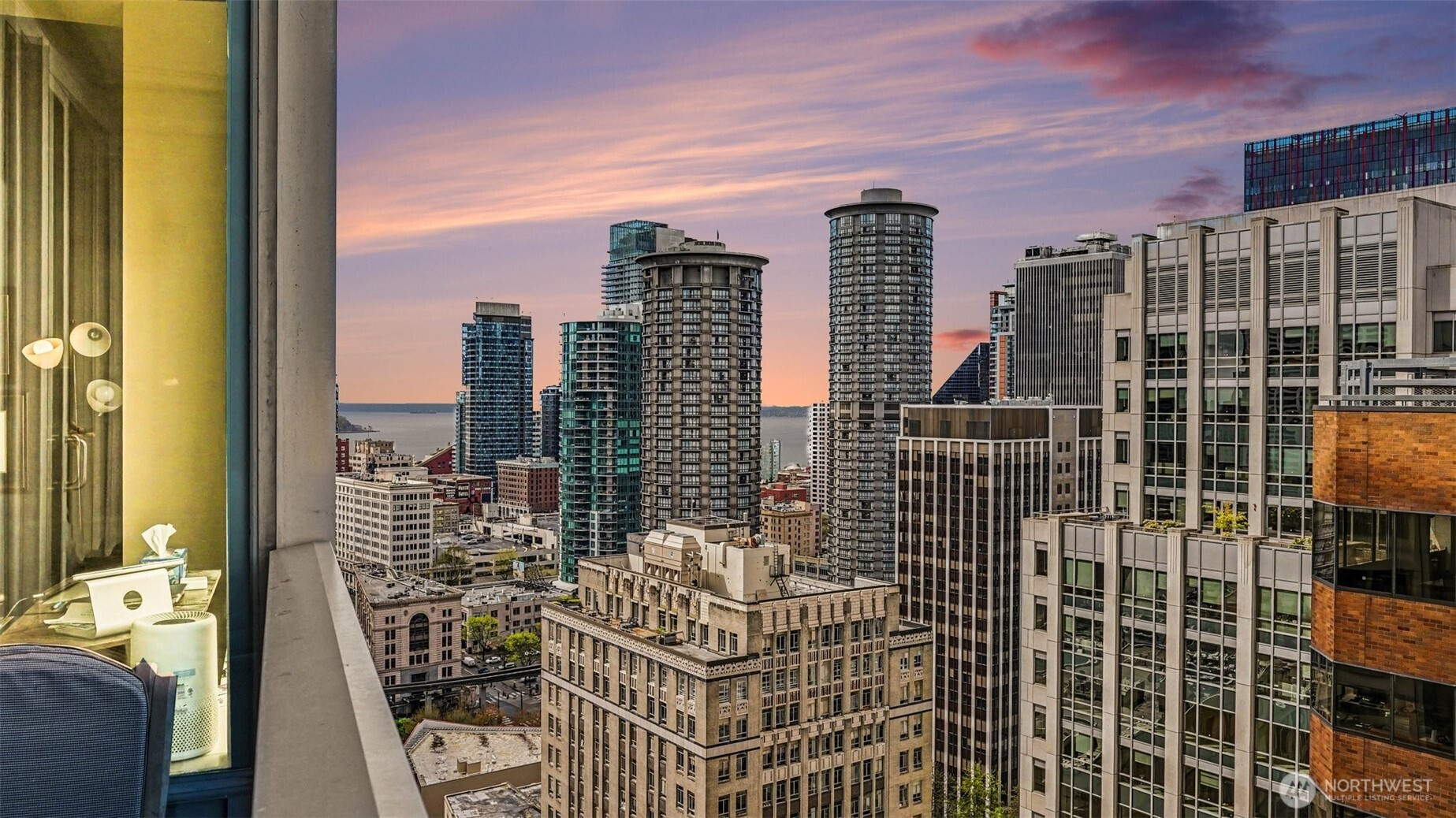 Welcome to luxury living at Olive 8, perched above the Hyatt Hotel in the heart of downtown Seattle. This east-facing home features floor-to-ceiling glass, 10’ ceilings, abundant natural light, and a private balcony with sweeping city and partial water view. The Pedini-designed kitchen includes Italian cabinetry, Italian marble countertops, Liebherr stainless steel refrigerator, and stainless steel Bosch appliances. Modern, luxurious bathroom offers natural stone finishes and dual-vanity sinks. Hardwood flooring throughout and a gas fireplace anchor the living space with warmth and style. The spacious primary suite includes a versatile nook ideal for an office and custom California Closets. Residents enjoy exclusive access to the updated 18th-floor Owner’s Lounge with roof deck, pet retreat, and game tables. Additional amenities include a 65’ indoor saline pool, steam room, sauna, Elaia Spa access, state-of-the-art fitness center with Peloton bikes, and yoga studio with classes. Unbeatable walkability—steps to the Paramount, Convention Center, shopping, dining, and transit. Strong rental demand and a premier location also make it an appealing opportunity for investors seeking long-term value.