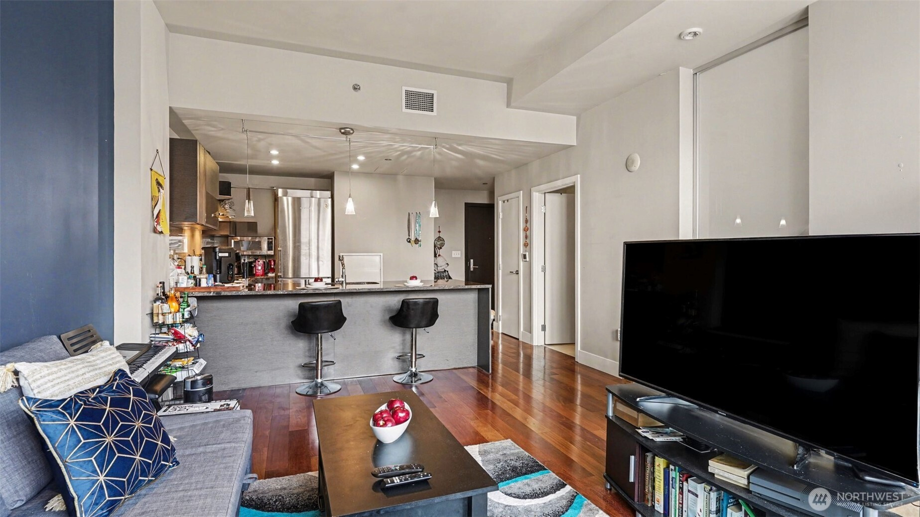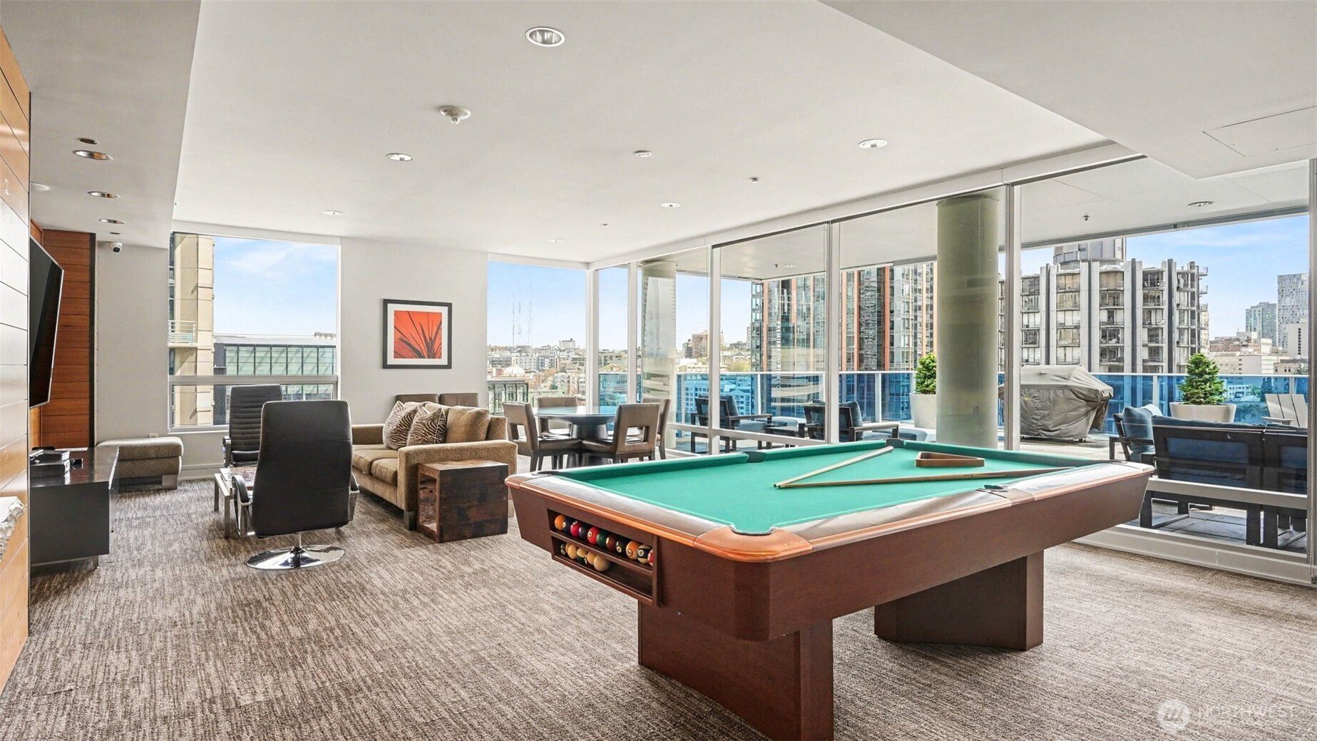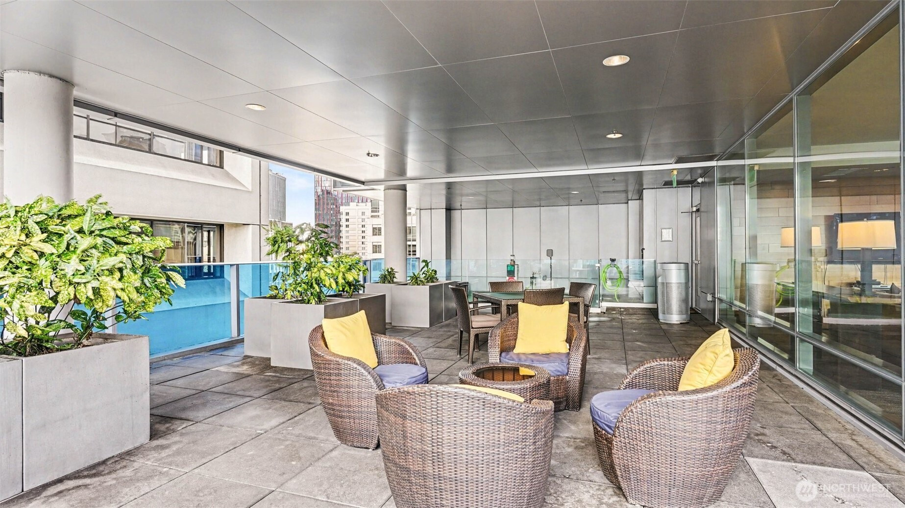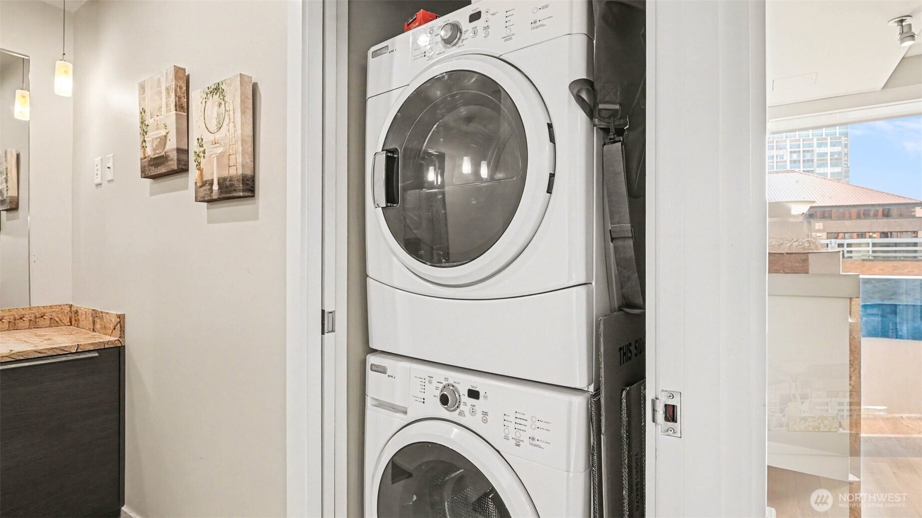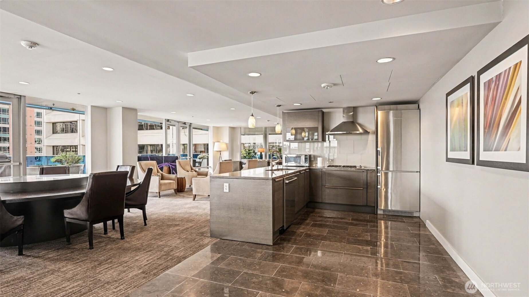 Welcome to luxury living at Olive 8, perched above the Hyatt Hotel in the heart of downtown Seattle. This east-facing home features floor-to-ceiling glass, 10’ ceilings, abundant natural light, and a private balcony with sweeping city and partial water view. The Pedini-designed kitchen includes Italian cabinetry, Italian marble countertops, Liebherr stainless steel refrigerator, and stainless steel Bosch appliances. Modern, luxurious bathroom offers natural stone finishes and dual-vanity sinks. Hardwood flooring throughout and a gas fireplace anchor the living space with warmth and style. The spacious primary suite includes a versatile nook ideal for an office and custom California Closets. Residents enjoy exclusive access to the updated 18th-floor Owner’s Lounge with roof deck, pet retreat, and game tables. Additional amenities include a 65’ indoor saline pool, steam room, sauna, Elaia Spa access, state-of-the-art fitness center with Peloton bikes, and yoga studio with classes. Unbeatable walkability—steps to the Paramount, Convention Center, shopping, dining, and transit. Strong rental demand and a premier location also make it an appealing opportunity for investors seeking long-term value.