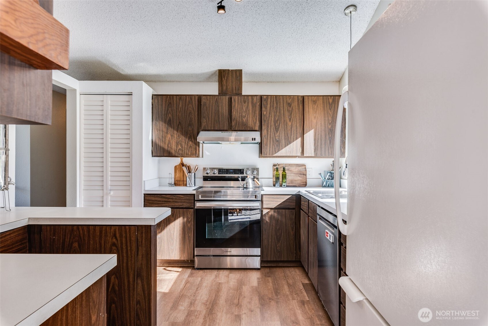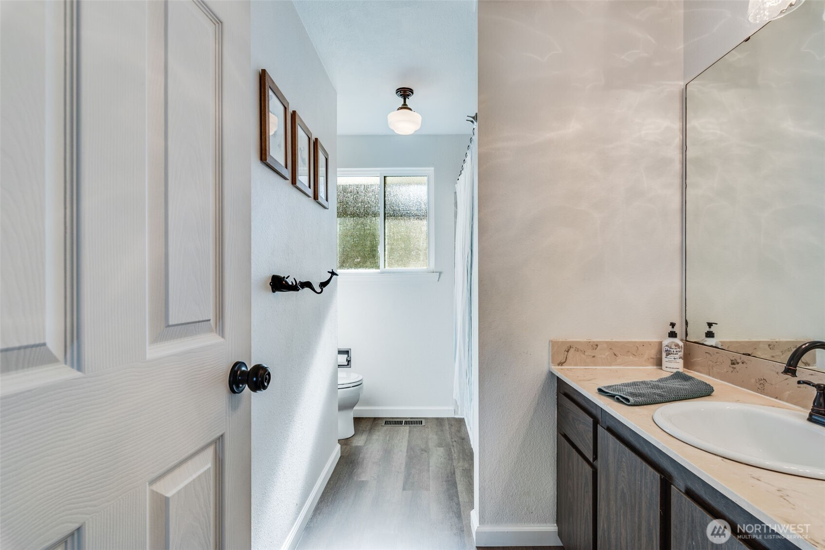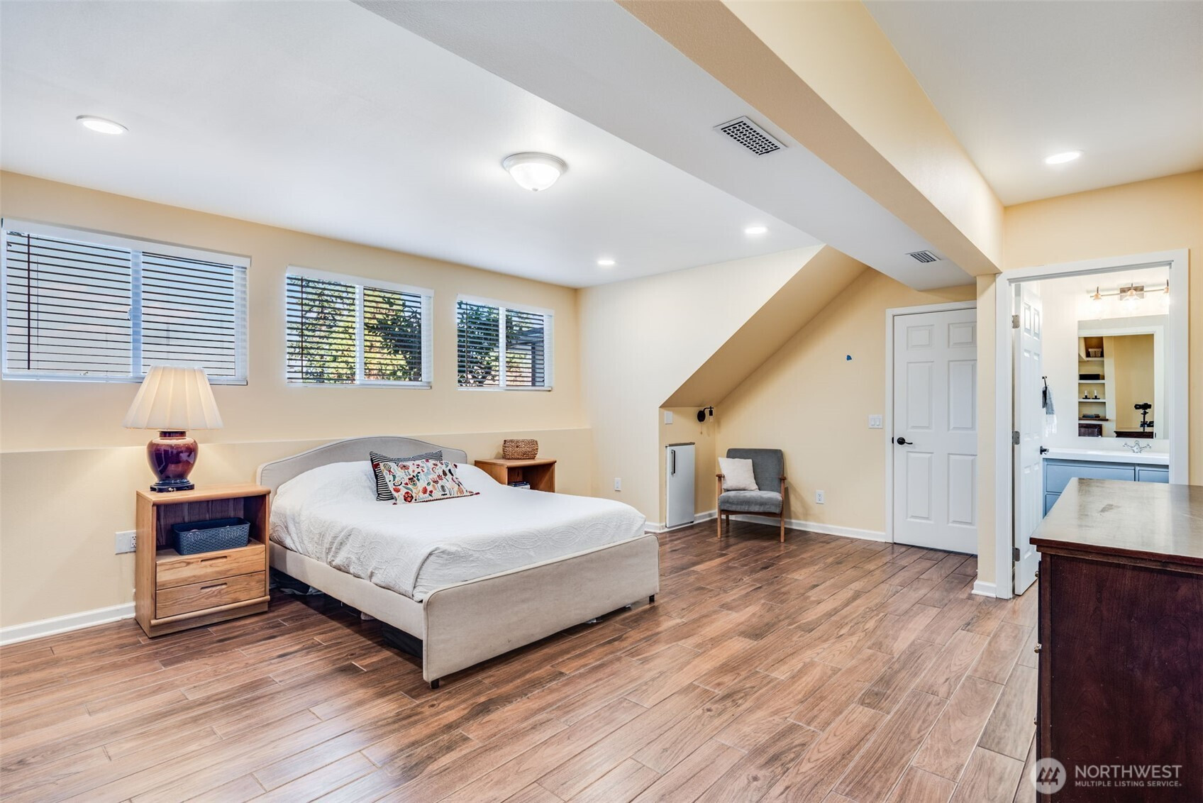 Light and bright home with the major updates already completed!! New 50 year roof w transferable warranty, new furnace & AC, new windows & garage doors, new LVP flooring, carpeting, paint, & beautifully finished lower level primary suite w primary bath. Peekaboo views of the Sound & Mt Baker! Additional primary suite upstairs w attached updated bath & 2 more upper bedrooms. Coveted Redondo area on a large corner lot w RV parking & RV electrical hookup. Room to play outside & entertain on the large backyard patio, fully fenced. Fantastic location near desired amenities and great for commuting North or South!