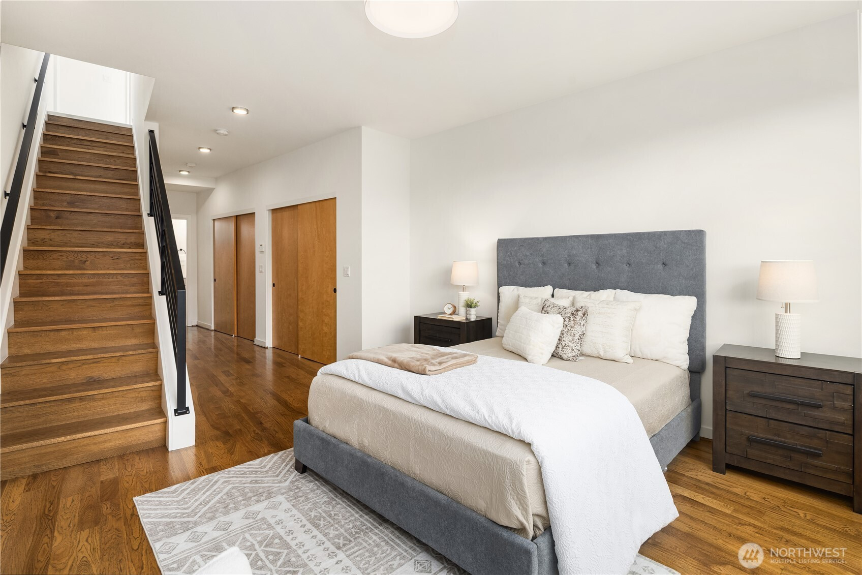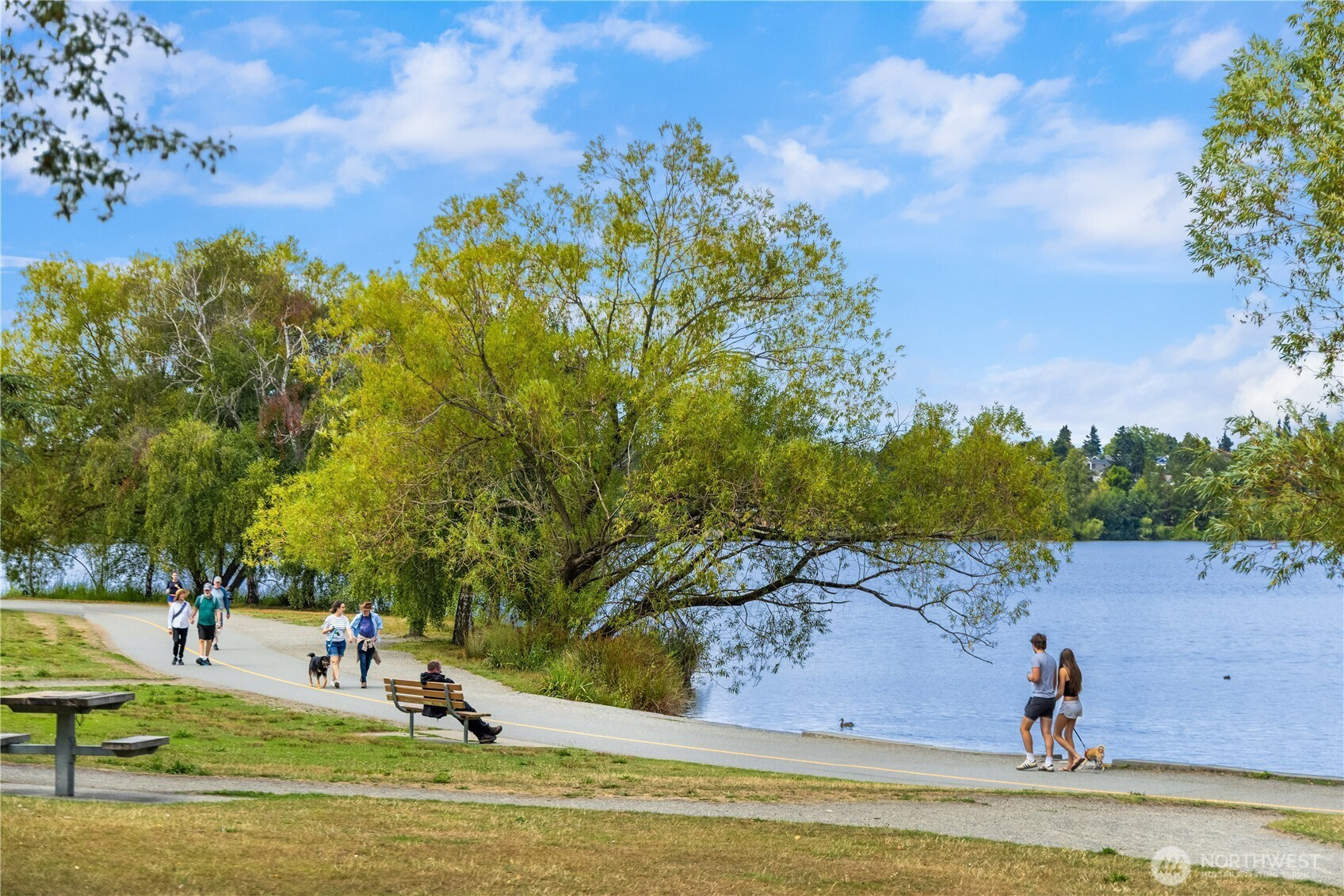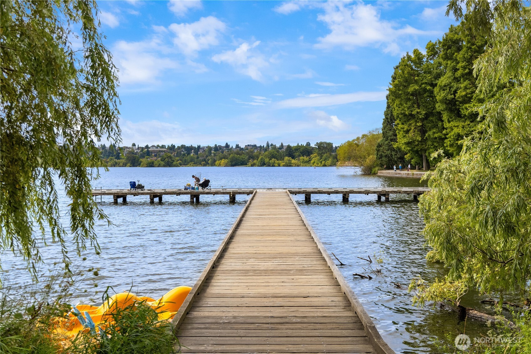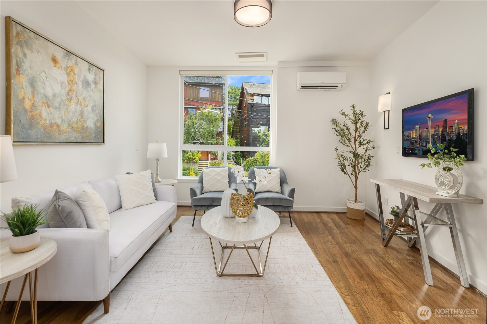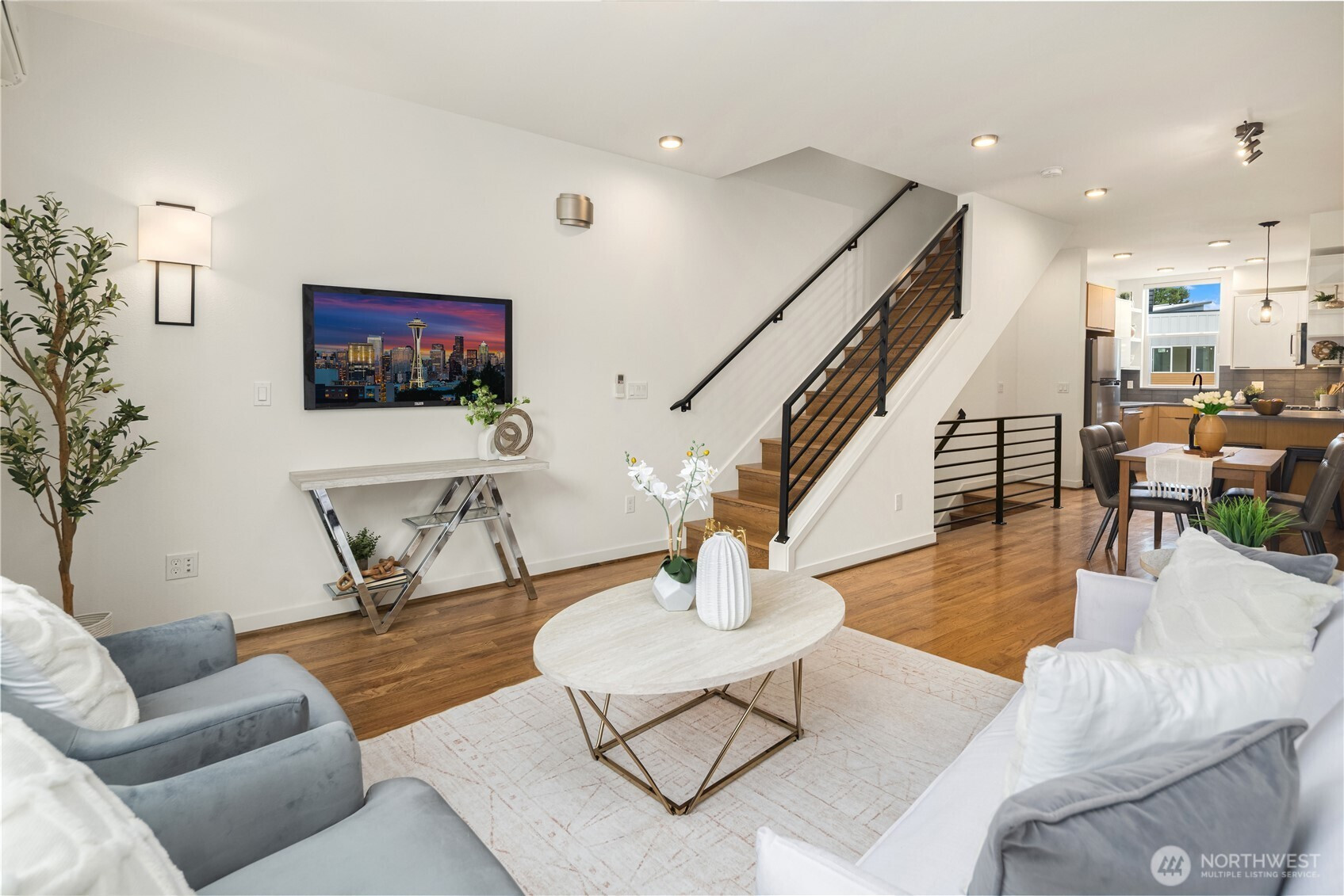 Just steps from Seattle’s iconic Green Lake, this modern townhome blends sleek design with everyday comfort. Light-filled interiors w/ vaulted ceilings and hardwood floors create a sense of openness, while the chef’s kitchen, featuring quartz counters, stainless appliances, and custom cabinetry anchors the main living space. The flexible three-bedroom layout includes a clever lower-level retreat with a custom Murphy bed and hidden desk, perfect for guests or remote work. Upstairs primary w/ spa-inspired bath and an expansive rooftop deck with lake & mountain views elevate daily living. And- with NO HOA dues, you’ll enjoy more freedom in one of Seattle’s most vibrant neighborhoods—where trails, cafes, and culture are right outside your door.