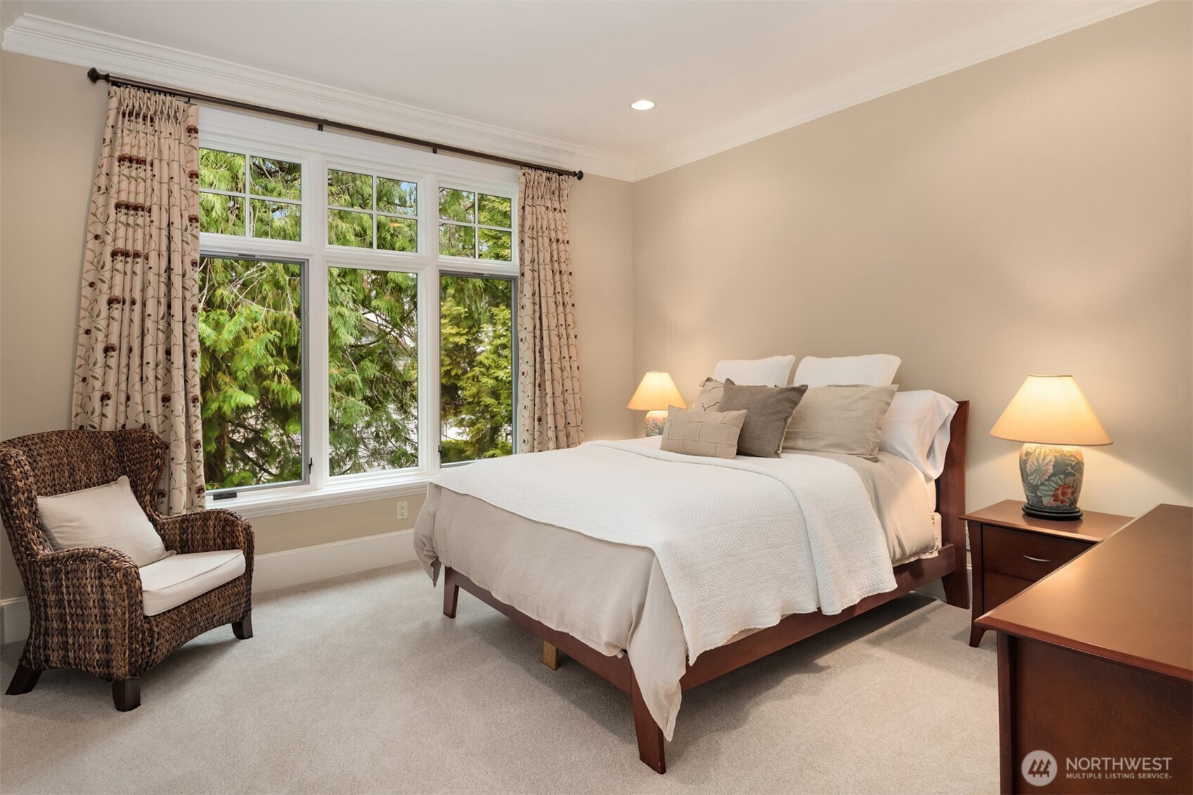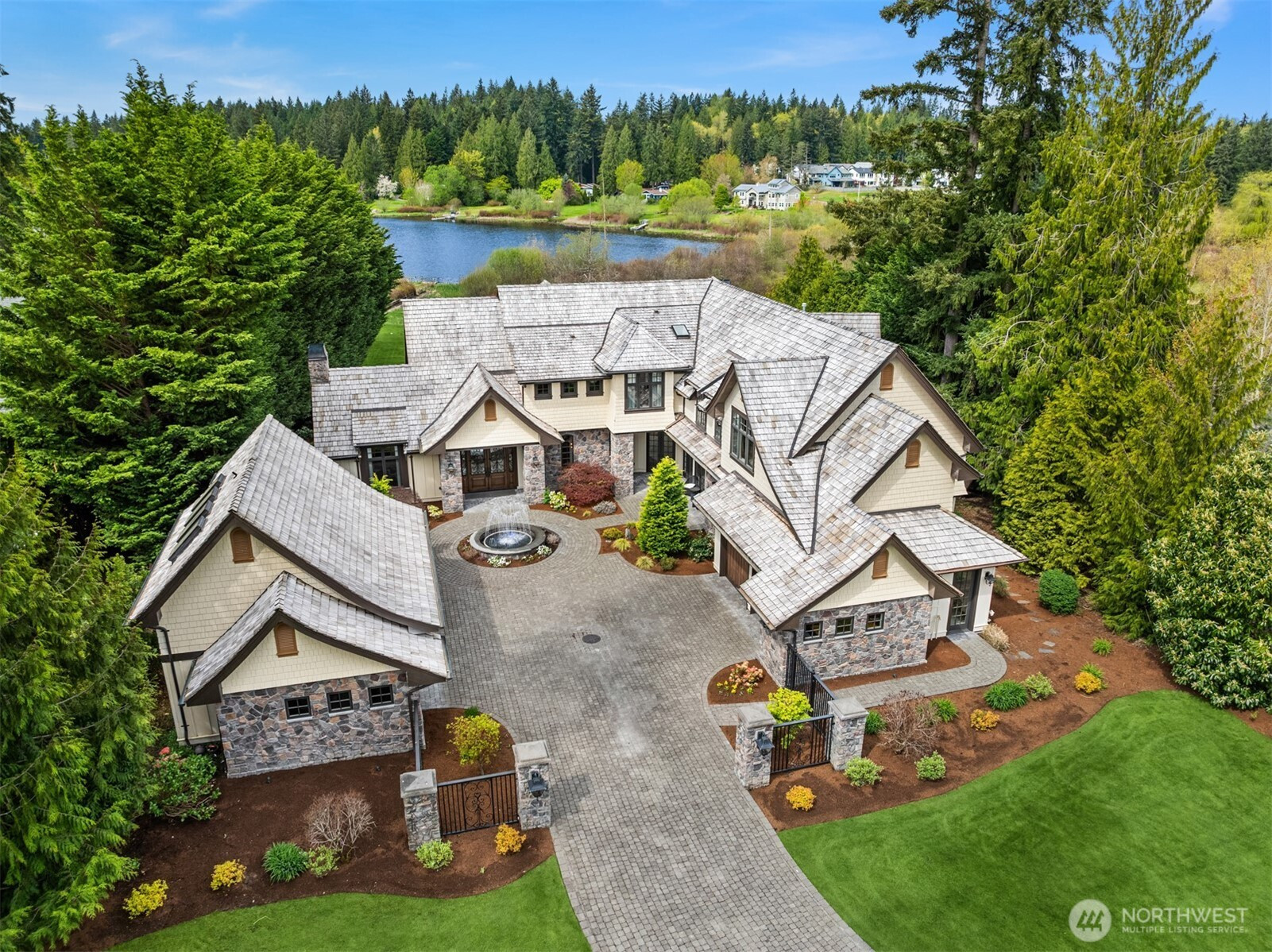 Set on a manicured estate within the gated enclave of Dodd Ranch, this custom home offers timeless English country architecture with a serene setting on Allen Lake. A graceful approach leads to a symmetrical façade, circular arrival court with fountain and attached and detached garages. Inside, refined craftsmanship is showcased through rich millwork, stone, and warm wood tones. The chef’s kitchen opens to inviting living spaces designed for both daily living and entertaining, featuring dual dishwashers and premium Sub-Zero and Viking appliances. A handsome den, dedicated theatre, whole-home sound system, and versatile bonus room provide exceptional comfort and flexibility. The primary suite offers a private retreat with a marble rotunda entry, spa-inspired bath, boutique-style closet, refreshment center, and balcony with tranquil lake outlooks. Outdoor living is elevated with covered terraces, an outdoor kitchen, and a striking stone fireplace, all set within lush, private grounds. Western exposure captures beautiful afternoon light and sunsets. Luxury, privacy, and thoughtful design define this exceptional Sammamish estate property.