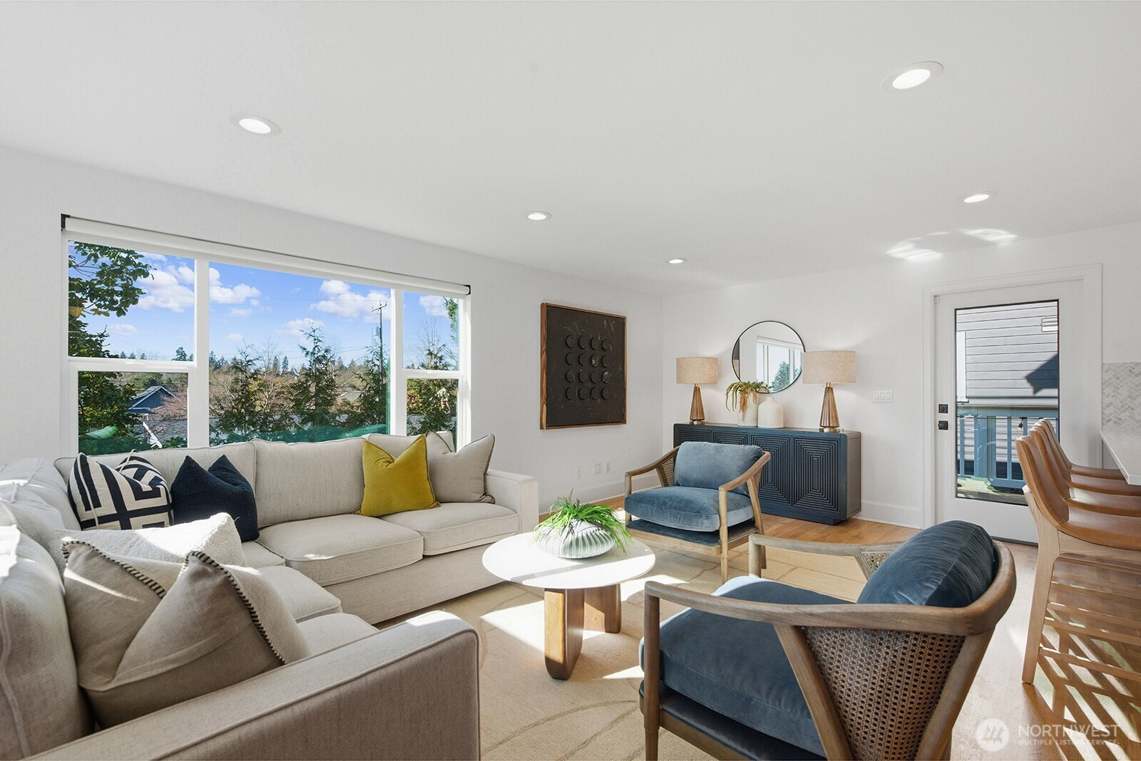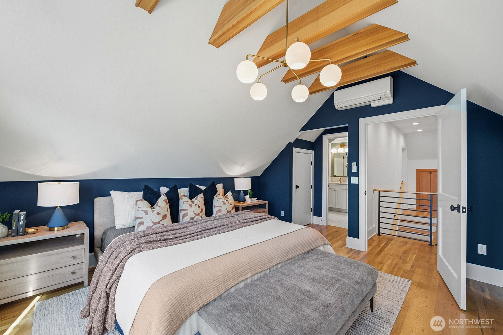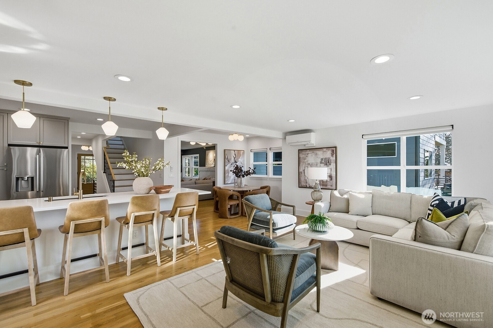 Located on a quiet street in View Ridge, this turnkey 2022 built Tudor is thoughtfully designed to exceed expectations. Custom craftsmanship and refined details highlight a flawless floor plan balancing private retreats and inviting shared spaces each filled with warmth and style. Offering 5 bedrooms and 4 full bathrooms, the home provides exceptional flexibility for today’s lifestyles. Extensive millwork and real oak hardwoods enrich the main level, creating a timeless connection to classic design. Stunning custom fireplace and wainscoting accent a grand formal living room setting the stage for relaxation. Chef’s kitchen shines with quartz countertops, marble backsplash, gas range, stainless steel appliances, and a peninsula perfect for casual eats. The informal living room flows seamlessly to a spacious cedar deck, private patio, and a west-facing backyard, ideal for entertaining. Upstairs, the cozy primary suite features a generous balcony and a stunning five-piece spa-inspired bathroom, and two additional bedrooms and a full bath. The lower level showcases a spacious rec room, large bedroom, workout room/den, laundry room, and a large finished storage area for all your weekend gear. Additional details include Mitsubishi mini-split heating and air conditioning for optimal air control, West Elm lighting, and a low-maintenance turf front yard. All of this is conveniently located near top-rated public and private schools, local cafes, I5/520, and the Roosevelt light rail.
