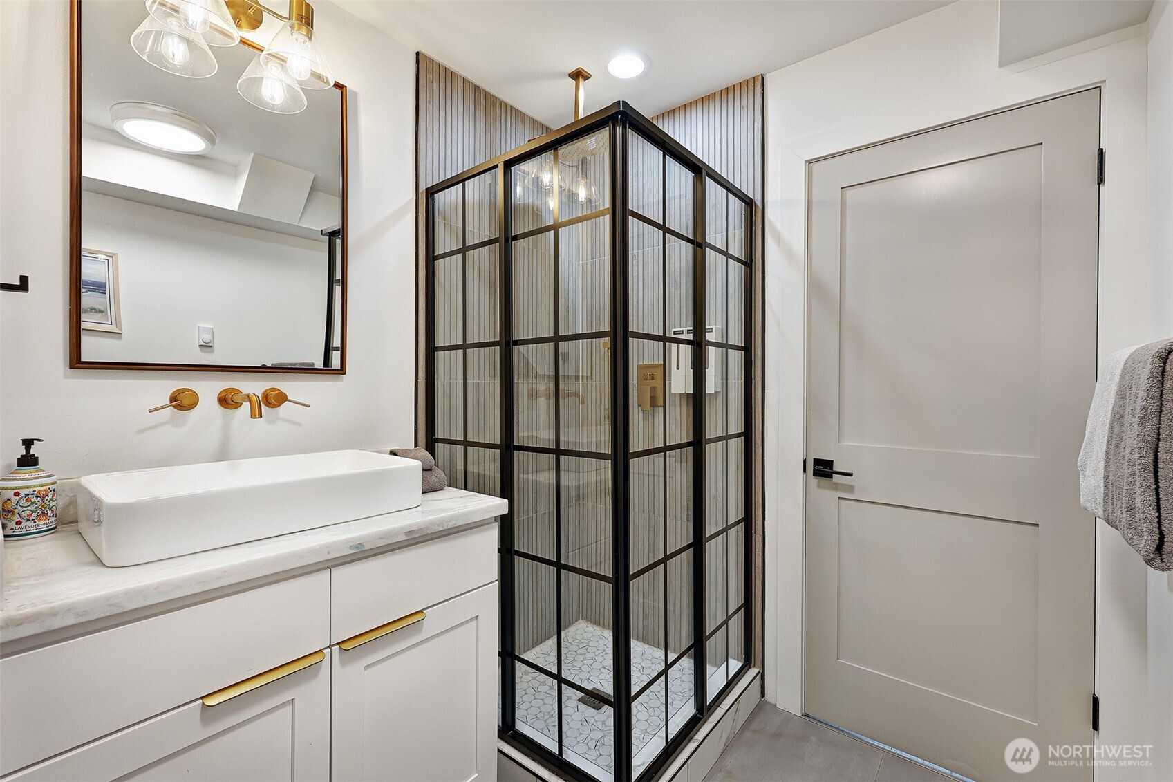 Short sale! Modern design meets effortless living in this striking contemporary home. Soaring ceilings and expansive windows fill the open living space with natural light, creating an airy feel that lives larger than expected. The inviting living room features wide-plank flooring and a sleek gas fireplace, flowing seamlessly into the stylish kitchen—perfect for everyday living and entertaining.The chef’s kitchen shines with quartz countertops, warm wood cabinetry, stainless steel appliances, gas range, and designer backsplash. Upstairs, the dramatic loft-style primary suite offers vaulted ceilings and a spa-inspired bath with double vessel sinks and a stunning glass-enclosed shower. An additional bedroom and full bath provide flexible space for guests or a home office. Enjoy year-round comfort with efficient mini-split heating and A/C. Outside, low-maintenance landscaping and plenty of off-street parking add convenience to this modern urban retreat. A rare opportunity to own a turnkey contemporary home that blends style, function, and smart design.
