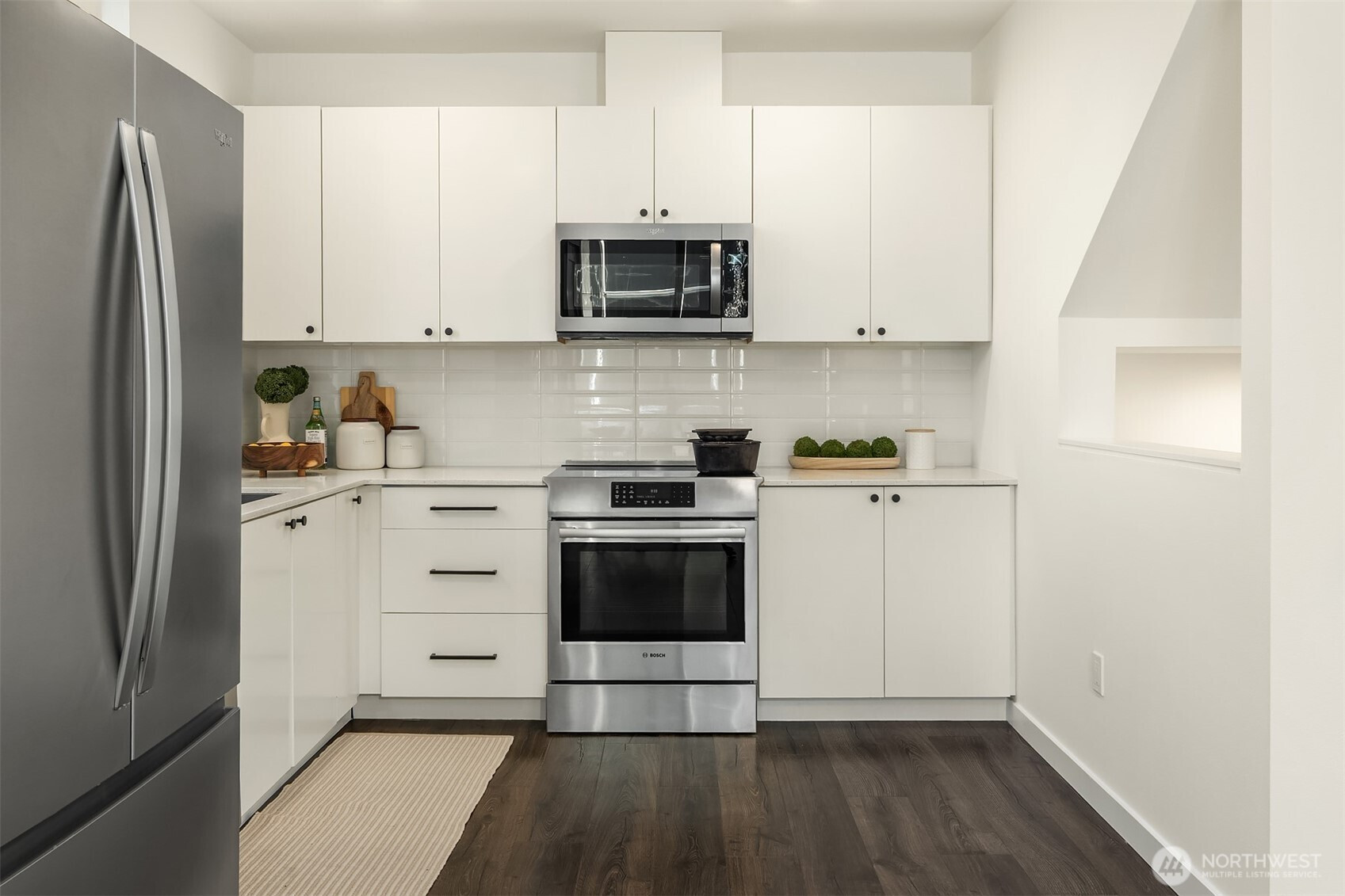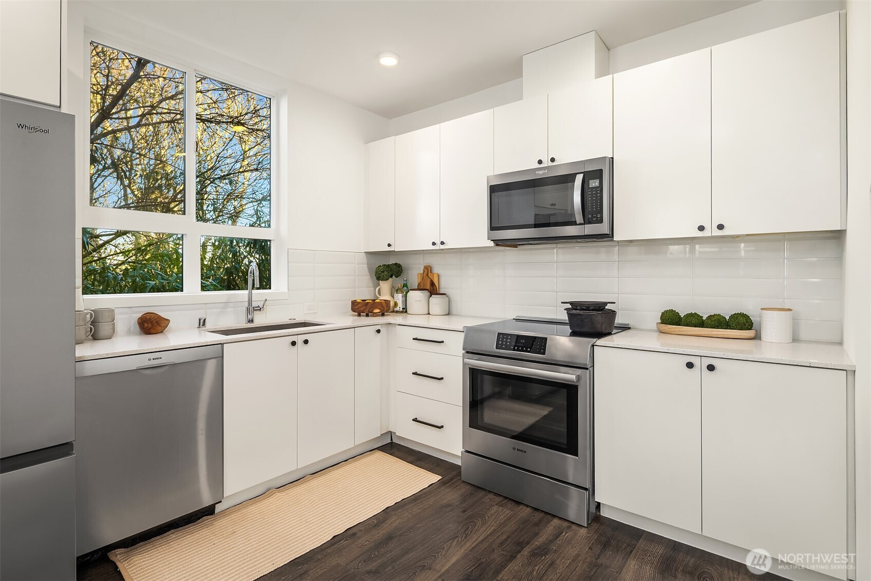 Modern living meets thoughtful design in the heart of Ballard. This 2020 Isola Homes townhome offers 1,410 square feet of open-concept living with 3 bedrooms, 2 bathrooms, and clean contemporary finishes throughout. A corner unit with additional walls of windows, the home is filled with abundant natural light across every level. The kitchen flows seamlessly into the main living area, creating an ideal space for both daily living and entertaining. Over $25K in recent upgrades, including fresh interior paint, enhancements to the rooftop deck, and updated kitchen cabinets and bathroom vanities. Step out onto your private rooftop deck and enjoy sweeping views of downtown, the mountains, Mt. Rainier, and the Space Needle. Multiple bedrooms provide flexibility for guests, a home office, or a comfortable primary suite retreat. Additional highlights include two secure parking spaces, controlled building access, and low-maintenance HOA coverage that includes exterior maintenance and landscaping. Located just moments from Ballard’s vibrant core, with easy access to top shops, dining, parks, and transit—this home offers the perfect blend of modern comfort and urban convenience.