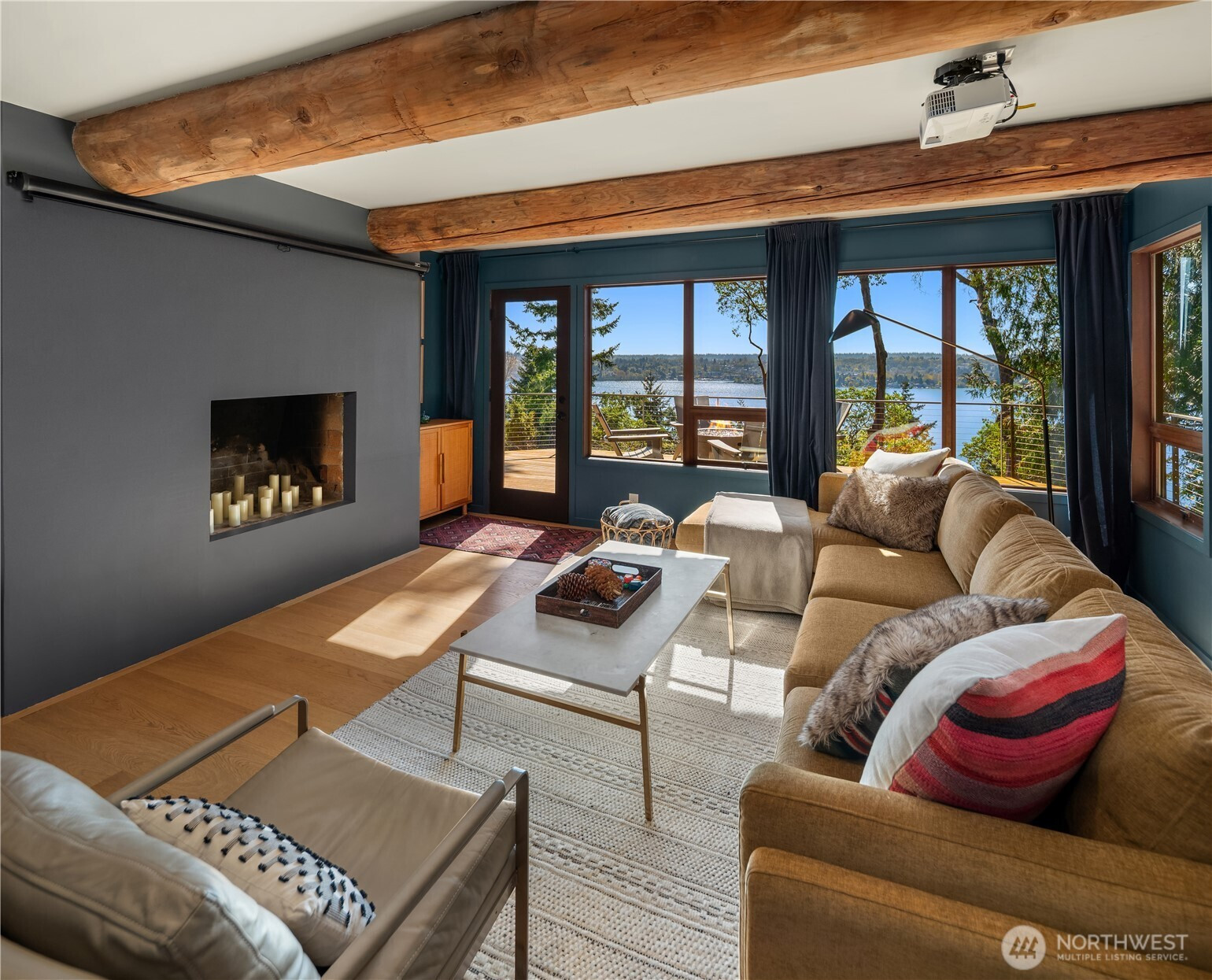 This truly feels like a San Juan Islands vacation home. Except no orcas frolic in the glittering water below, and the island is Mercer, a safe haven with legendary schools and speedy access to all points Seattle and Eastside. At the end of a hidden lane, a discreet facade greets you with exquisite privacy. But walk in the door and the world blows open. Dramatic expanses of glass drink in glittering lake and Olympics views. The forest below is yours, providing a brilliant buffer together with the rare ability to control your own views. Standing here, bathed in nature and light, you can downshift into holiday mode. Architect Carole Klees designed this iconic shingled home for her own family in the NW Modern vernacular of the late 1970s and early 1980s. Fans of the style will recognize its hallmarks. She emphasized soaring window walls to maximize light, vaulted, peaked ceilings, an open, airy floor plan, great indoor-outdoor flow and abundant natural materials. The current owner has made many sensitive updates, including adding an extra bathroom, 5th bedroom, hot tub and central AC. Bonus areas abound for maximum flexibility. Ipe-clad decks project into the view. There's even a spot for a trampoline in the yard. And it's a sweet location toward the south end for peace and quiet, yet on the west side for light and sunsets. It's close to amenities and great schools, yet tucked away in a world of its own, hovering above the lake. With this, who needs a second home?