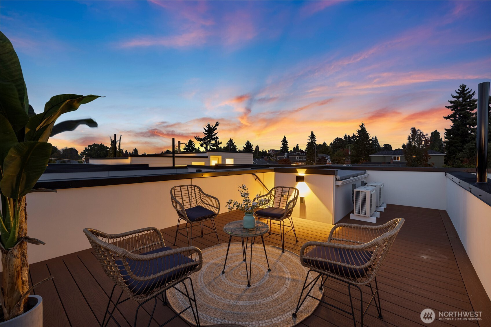 Move-in ready! Gorgeous new construction just steps from a serene neighborhood park in Ballard. Showcasing a bold modern façade, thoughtful layout, 2 bedrooms & a rare ATTACHED GARAGE. Step inside to top-of-the-line design featuring sleek porcelain floors, ambient under-lighting, chic hardware & a striking accent wall. Ready for cozy gatherings—chef's kitchen with SS appliances, quartz countertops & custom cabinetry. The 2nd level hosts a bedroom & full bath, perfect for guests or a home office. The top-floor primary suite is a personal retreat with a spa-like bath. Enjoy a private rooftop deck for entertaining. Near Green Lake, Golden Gardens, Ballard’s shopping, dining, parks & more. 1% credit w/preferred lender—act now to secure pricing!