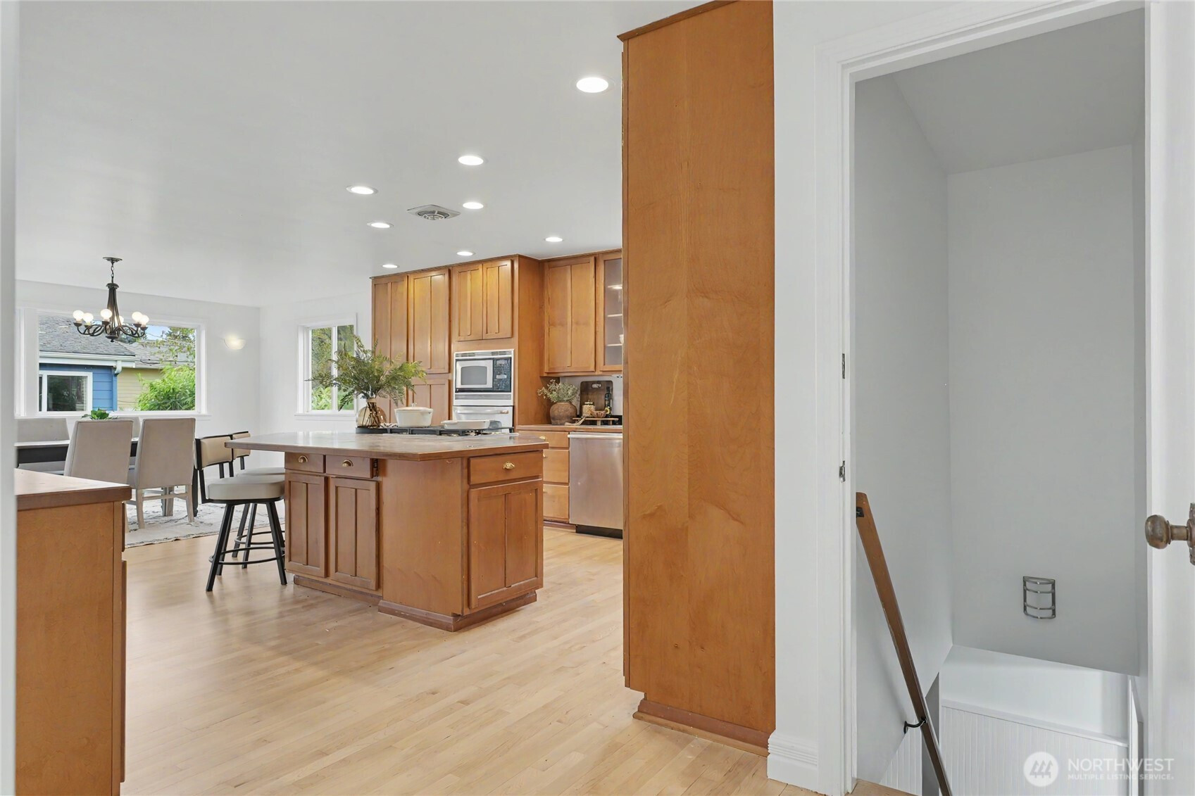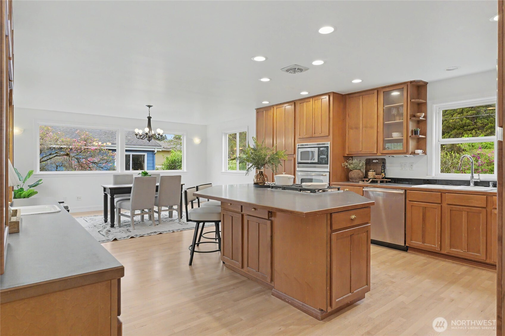 Spacious and versatile home with a layout perfect for both living and entertaining. The main level features two bedrooms, a full bathroom, and an open-concept kitchen and dining area overlooking the backyard. The bathroom has been fully updated with all new tile, plumbing, and fixtures. Downstairs offers two additional bedrooms and two bathrooms, plus a separate entrance leading to the backyard. A large detached structure provides flexibility for a shop or potential DADU. Alley access with additional off-street parking. Ideally located near neighborhood parks, top-rated schools, and UW, with convenient access to light rail, I-5, 520, and downtown Seattle.