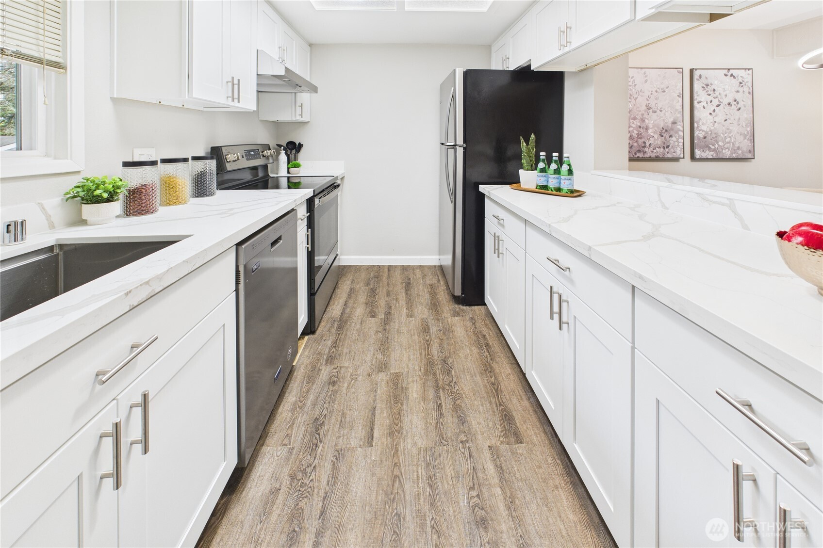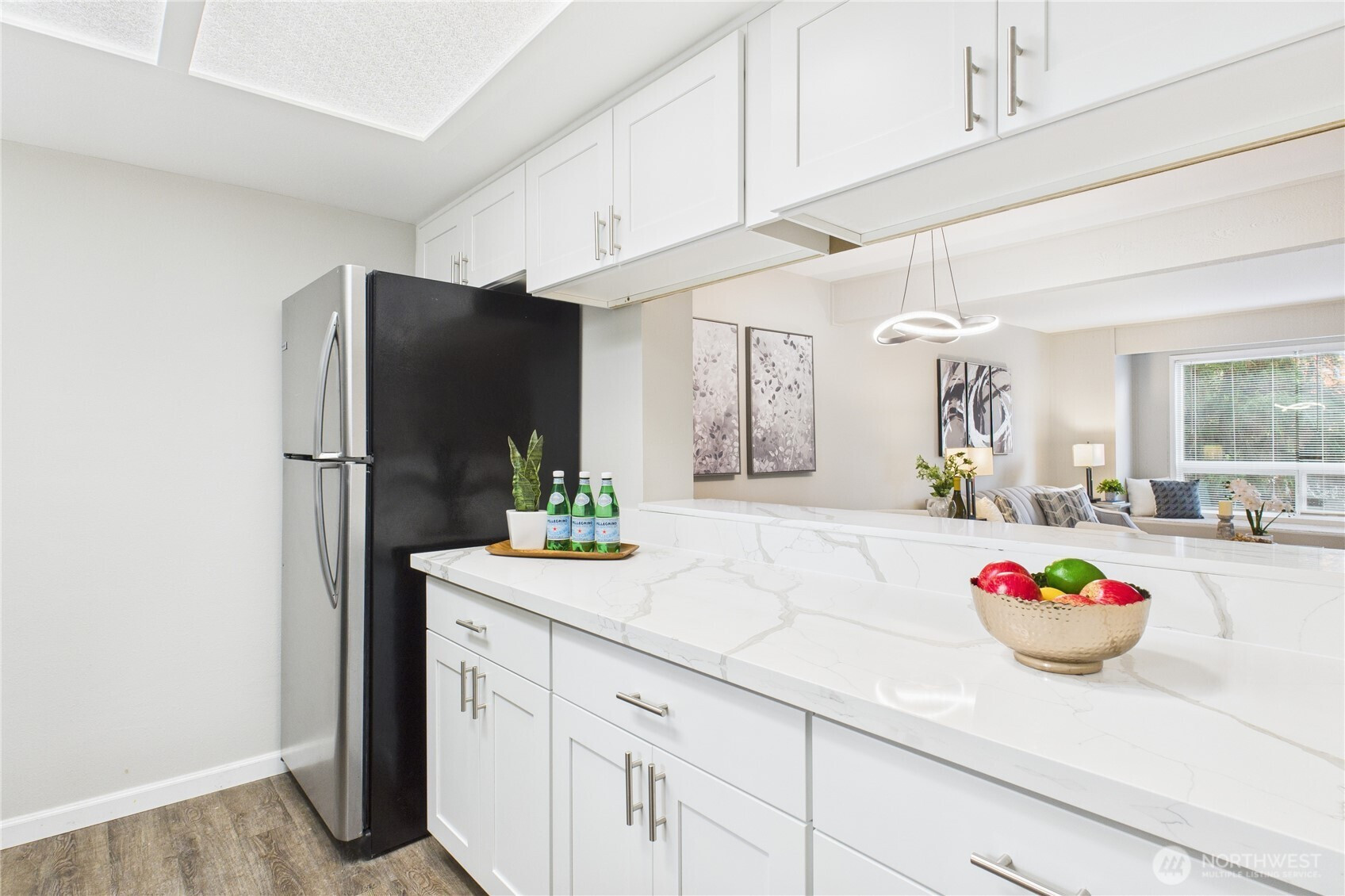 Fabulously updated Gull-Val 2 bed, 1.75 bath condo in a serene, private setting. Bright, updated kitchen w/quartz countertops, new cabinets, stainless steel appliances & brand new sink. Updated bathrooms, new carpet & fresh paint create a cheerful, move-in-ready feel. Spacious living & dining rooms, elegant wood fireplace & entertainment-sized covered deck w/storage room. No rental cap, no special assessment. Prime location—minutes to 520, Marymoor Park, downtown Redmond, trails, shopping & top-rated Lake Washington schools. This move-in ready beautiful home won’t last long!