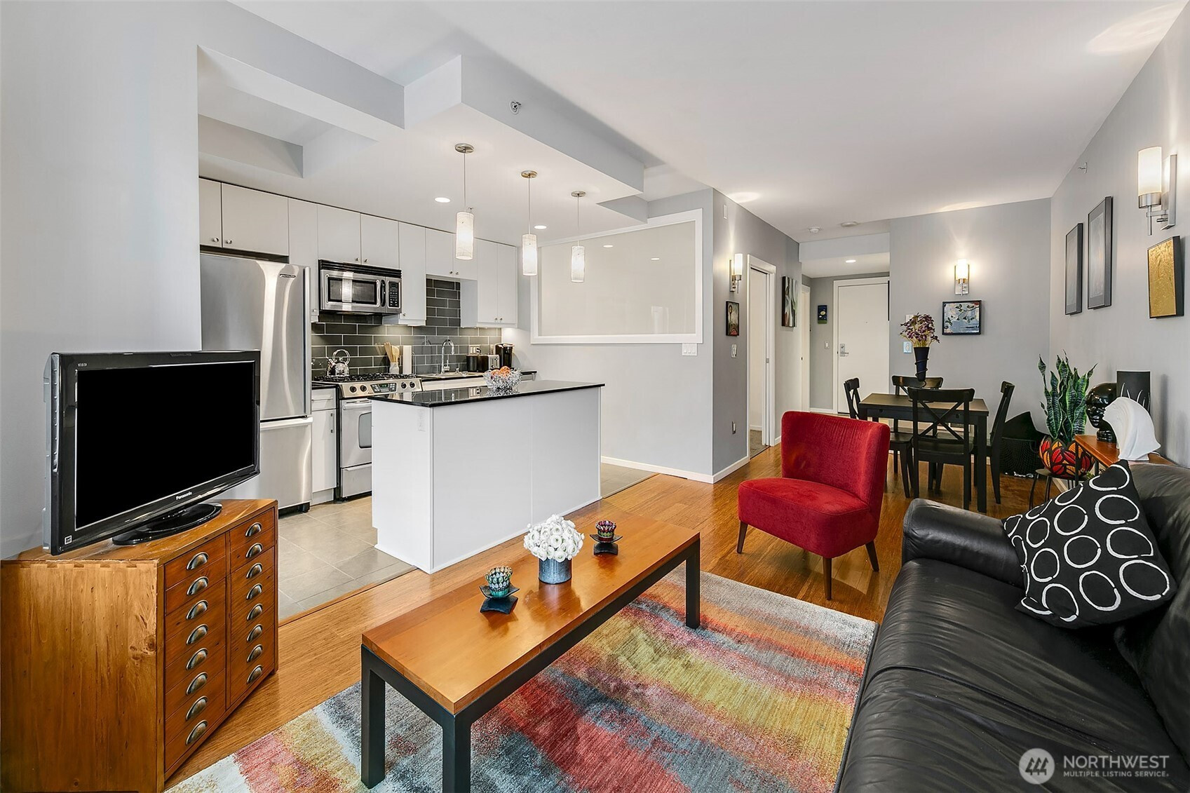Experience the best of North Belltown living! Steps from lower Queen Anne, enjoy the fusion of two vibrant neighborhoods. No rental cap, min. 30 day lease. Near Seattle Center, Olympic Sculpture Park, and the waterfront this home embodies urban living. Benefit from 2 parking stalls for personal use or rental income. Positioned on the tranquil side, facing an inner courtyard, with NW light flooding the living room and balcony in the late afternoon. Building amenities include concierge, guest suite, fitness center, and rooftop deck with stunning Puget Sound views. Pets OK. Embrace city life with convenience and style!