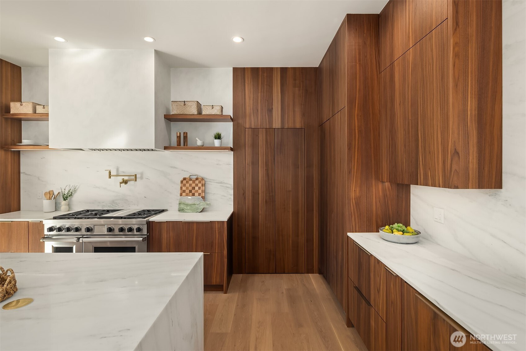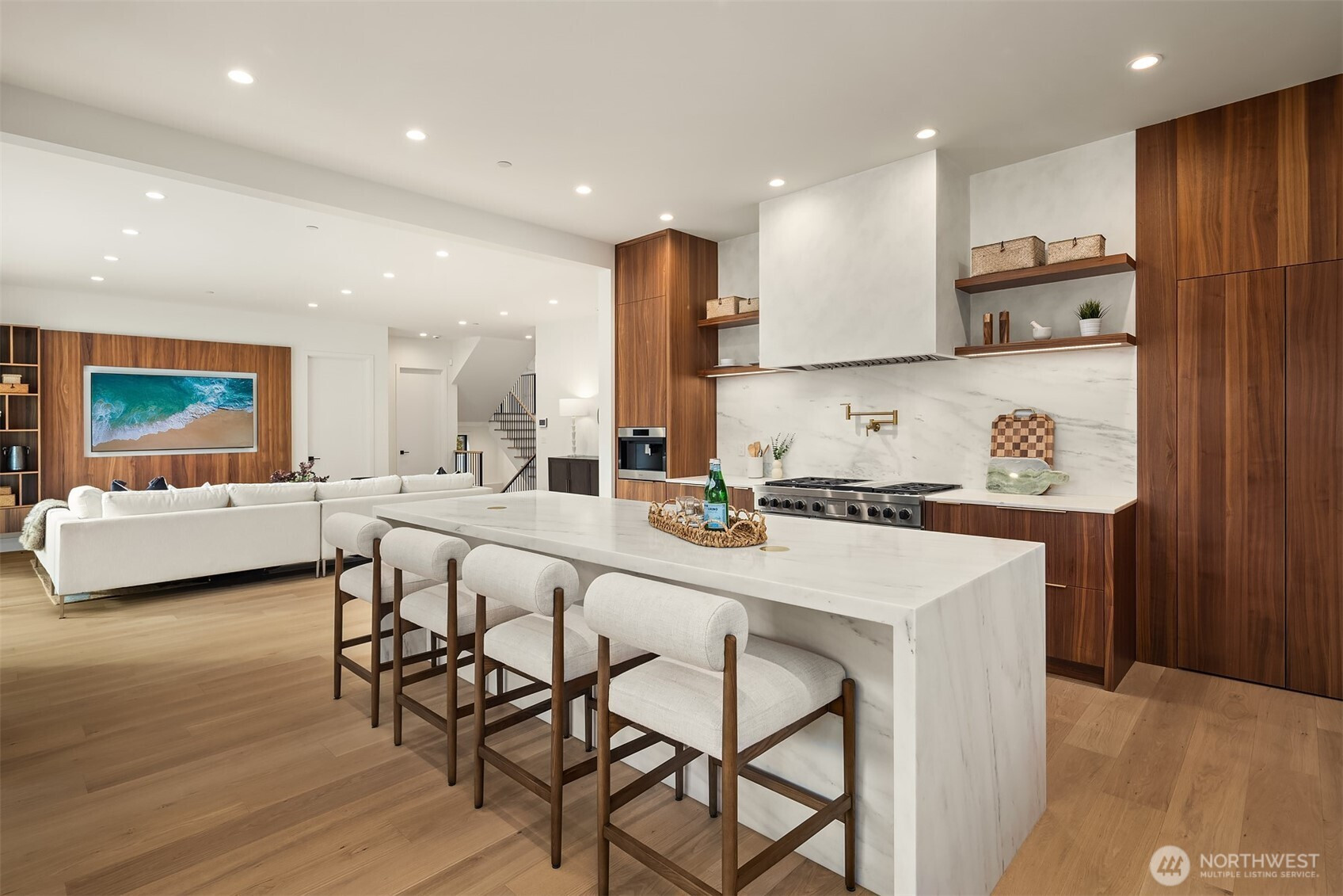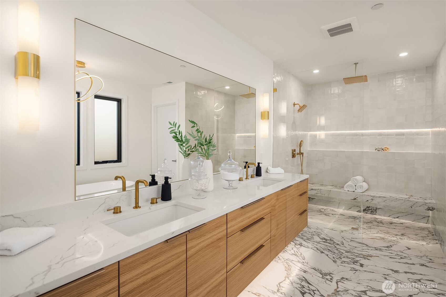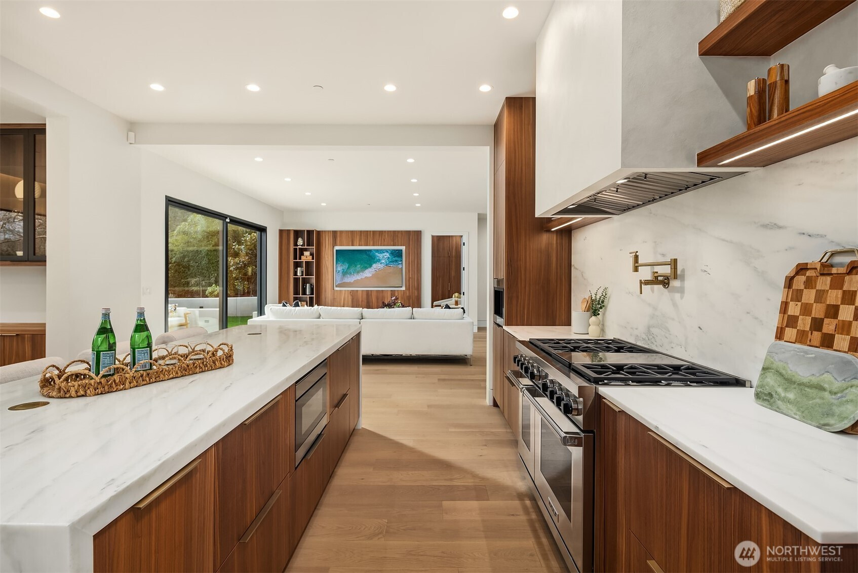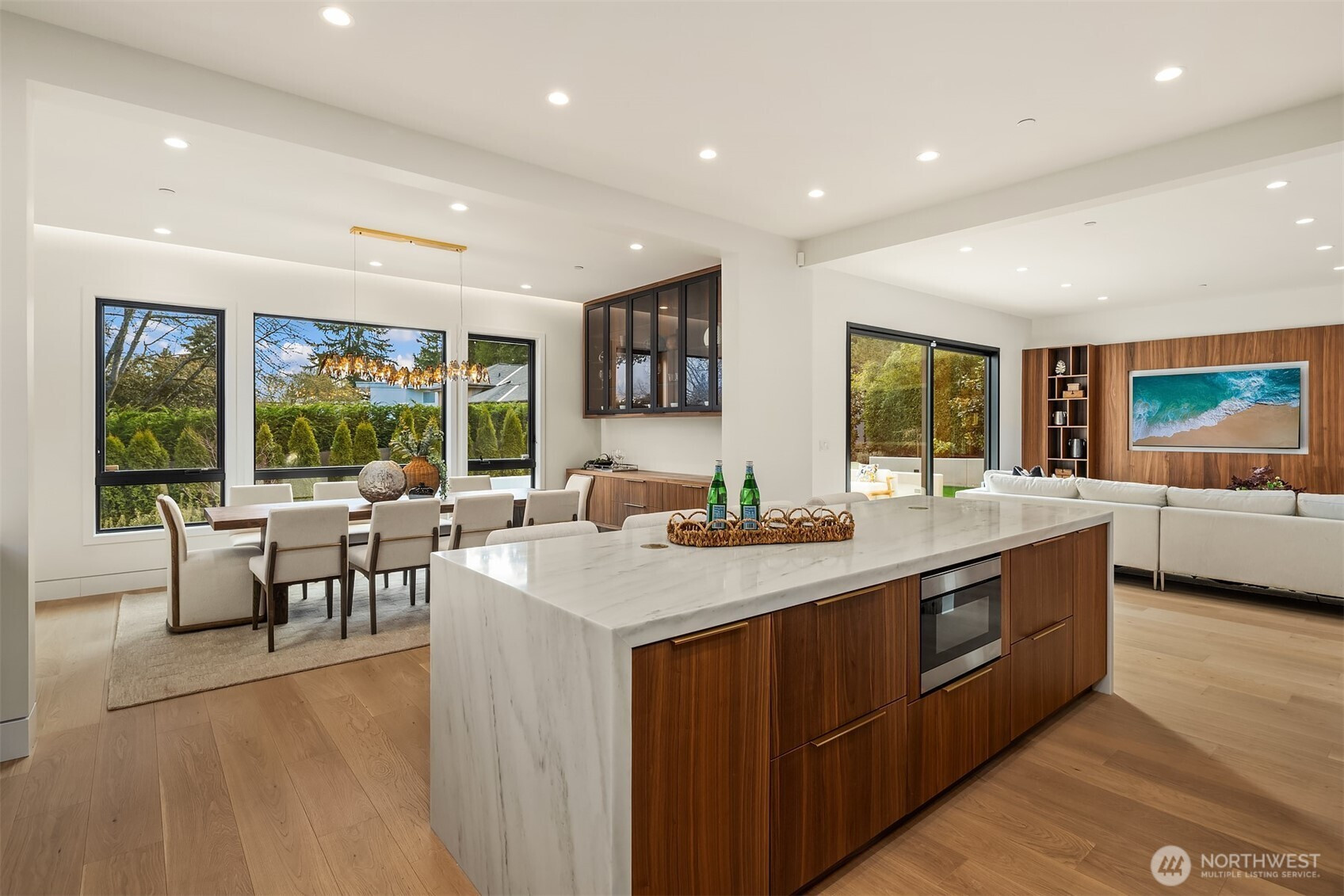 Experience the pinnacle of luxury living in this gorgeous custom-built home, where warm sophistication meets modern elegance. A grand 2-story entry sets the tone with soaring ceilings & a striking DaVinci fireplace — an artful welcome that instantly feels like home! The main level flows seamlessly from room to room, bathed in natural light & finished w/ extraordinary attention to detail. A home office w/ custom built-in cabinetry offers a work-from-home retreat, while the chef's kitchen is nothing short of a masterpiece. Wolf appliances, slab marble countertops, rich walnut cabinetry with European styling, & a cleverly concealed pantry combine beauty w/ serious culinary function. Upstairs, 4 bedrooms await, anchored by a primary suite with a spa-inspired bath, a curbless shower & marble tile. The lower level is an entertainer's dream: a wine cellar, guest suite, exercise room, rec room, wet bar, & theater room provide endless options for relaxation & hosting. Recessed lighting throughout creates a warm ambiance, while beautifully landscaped grounds & a 3-car garage completes this exceptional package. Step outside & find yourself in one of the Eastside's most coveted communities. Head to Medina Park to start your morning, or make your way to Medina Beach for the afternoon. Tee off at Overlake Golf & Country Club, just mins away. The area's top-rated schools reflect the high standards of this neighborhood. This is not just a home — it is the lifestyle you've dreamed of.