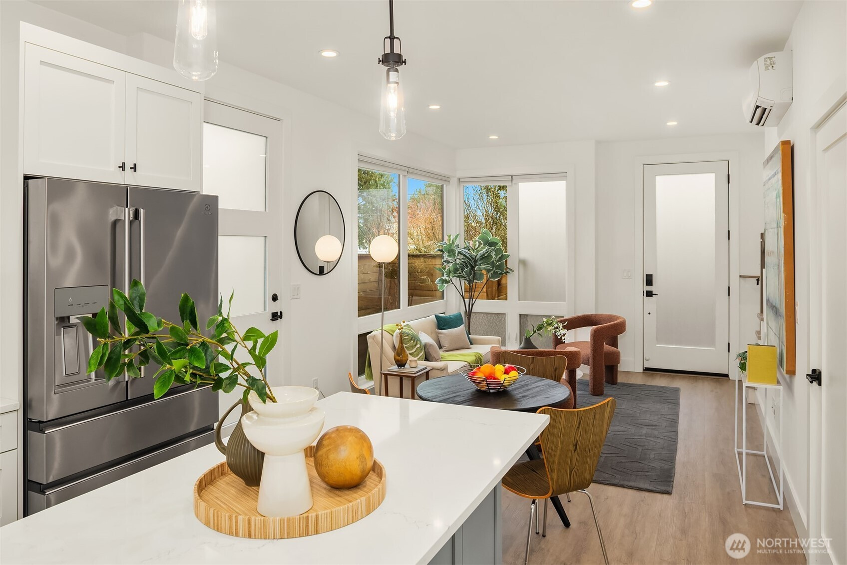 A better than new Thomas James Homes cottage on a quiet street, a short half-mile stroll from the Othello light rail station. Enjoy the livability and comforts of a two-story modern home with all the amenities, including a generously sized pantry, an induction stove, a large walk-in primary closet, a half bath on the main floor, and a mini split in every room for unparalleled temperature control; and be ready for whatever life brings with a large primary bedroom plus a guest bedroom/office upstairs, each with its own en-suite bathroom. Luxuriate in the great light that comes from owning an end unit with no shared walls, combined with the privacy of a 6-foot fence and an elevated position off the street, and take advantage of the ideal indoor/outdoor flow between the living room and your fully fenced patio & small yard to work on your green thumb, get that dog you've always wanted, or just throw great parties. And actually get to know your friendly neighbors! When the time comes to leave the house, walk 2 blocks to Othello playground and park, 12 minutes to the Othello light rail station (with service to the Eastside starting March 28th), Safeway, and all the shops and restaurants at King Plaza; or drive 5-10 minutes to your choice of downtown Columbia City, Georgetown, Seward Park, Pritchard Island Beach, or I-5. The lightweight HOA only exists to pay for water/sewer/garbage & a master insurance policy; and the home is still covered by a transferrable warranty through 2029.