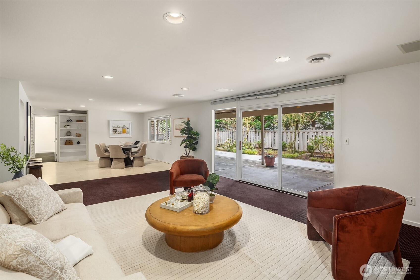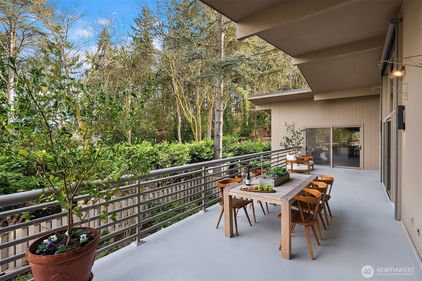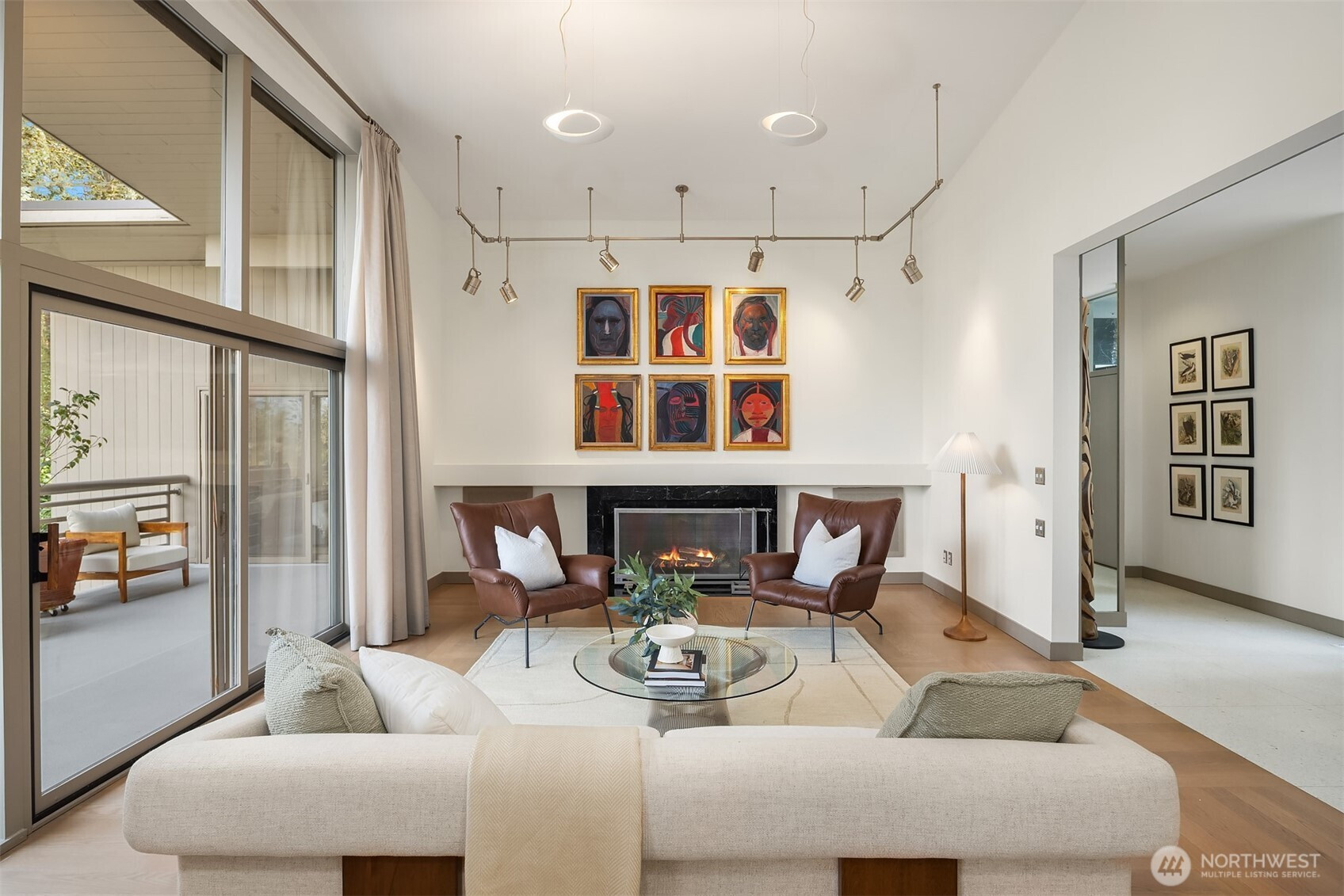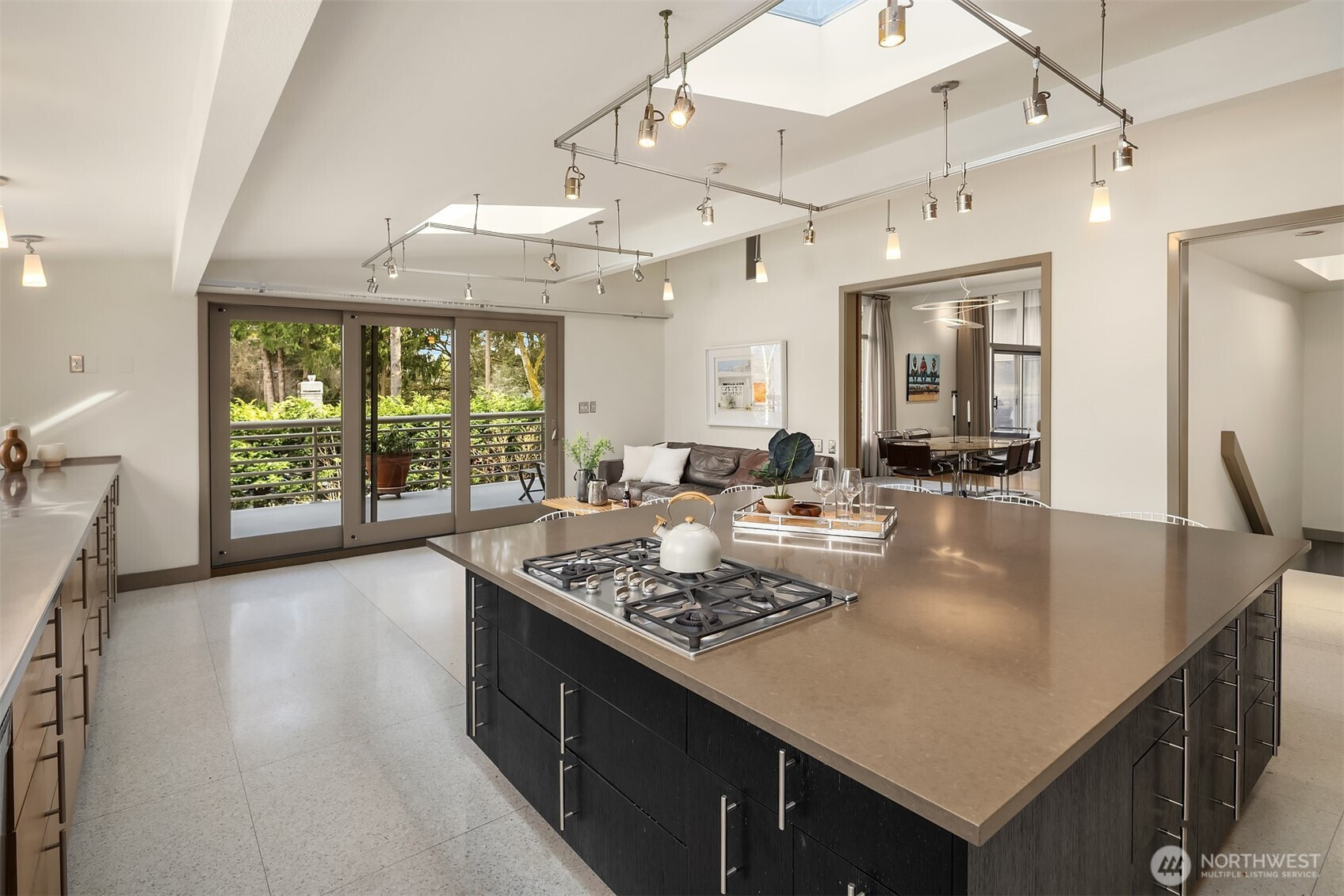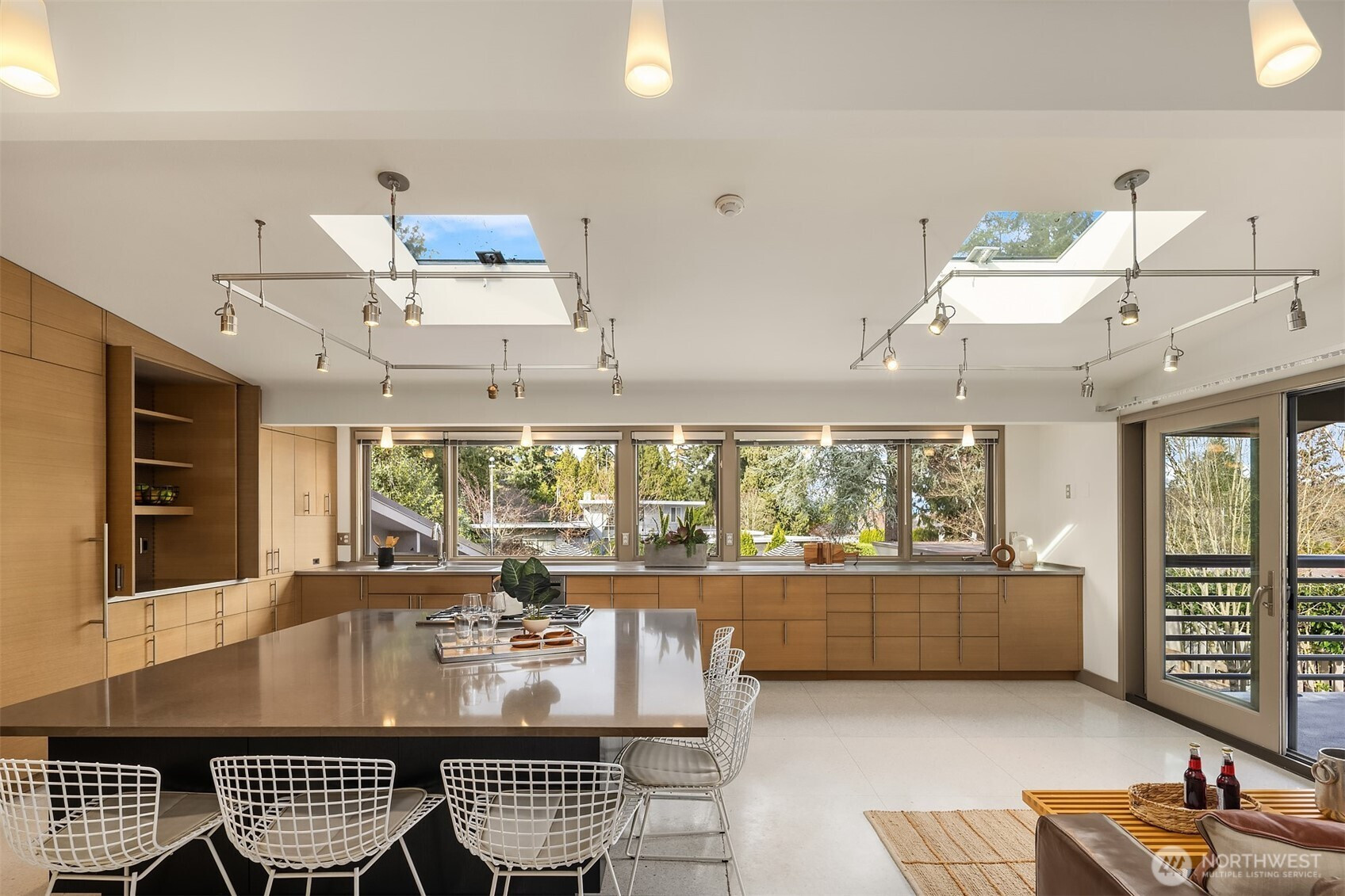 A beautiful arrival through Japanese-inspired gardens, featuring a dramatic fifteen-foot custom steel planting bed, invites you into an iconic Mid-Century Modern home inspired by the visionary legacy of Paul Hayden Kirk. Open the doors to luxurious, light-filled breadth: signature terrazzo floors, soaring walls of glass, and half acre of park-like grounds. This is a rare home where artistry defines the architecture and communion with nature is not a feature, it is the experience. Coveted ceiling heights and generous art walls create gathering rooms designed for everyday living and confident entertaining. Superbly updated while honoring its important original details. The kitchen's table-height island is a perfect nod to the thought behind every choice. Designed to invite conversation and comfort, the layout is masterful. The main floor primary suite opens to the deck with beautiful garden views and sits adjacent to the library offering a quiet retreat. Two closets and an updated 5-piece bath make it thoroughly modern. The sunny garden level is surprisingly spacious, with 4 bedrooms, a bonus/game room, and office-generous rooms to write a beautiful life story. Outside, a cabana, pool, hot tub and backyard celebrate the best of PNW living, while just across the street the protected Fairweather Preserve awaits. This is a rare diamond of esteemed PNW design with all of Medina's celebrated lifestyle convenience. Enjoy a home as beautifully special as the life you want to live!