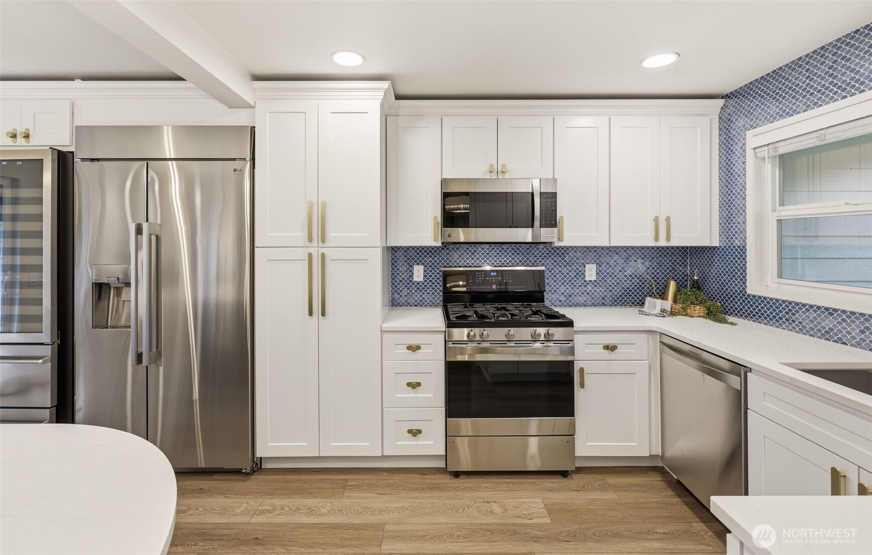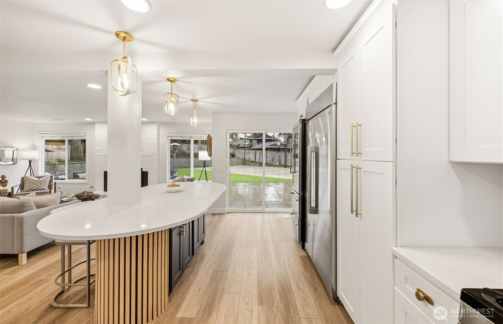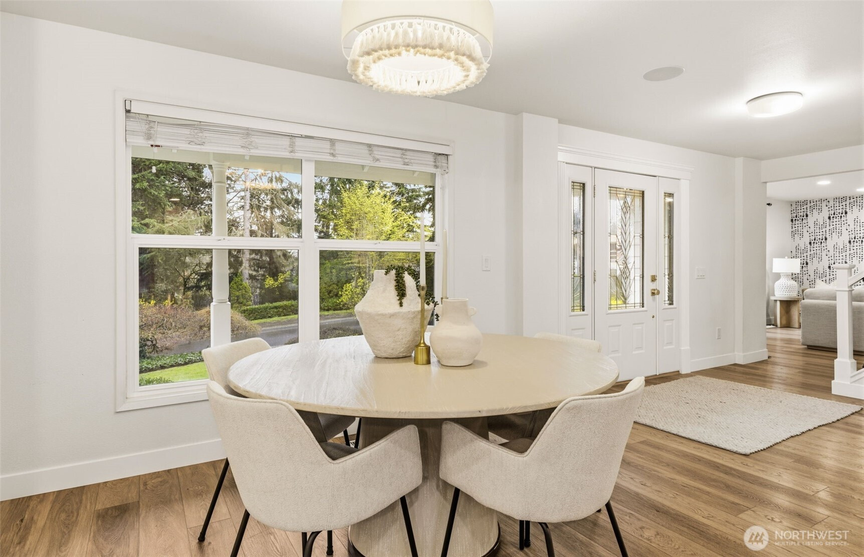 Step inside to a beautifully updated main level designed for modern living and effortless entertaining on a spacious 17,700sq ft lot. The renovated kitchen anchors the home with fresh finishes and great flow, complemented by new flooring throughout and integrated ceiling speakers on both levels and outdoors. A main-level flex room adds versatility—ideal as a guest room, office, or home gym. Upstairs, you’ll find 4 bedrooms, including a serene primary suite with a fully updated, light-filled bath enhanced by new skylights. Every bathroom has been stylishly remodeled, creating a cohesive, modern feel throughout the home. Over $350K in thoughtful upgrades elevate the property: new roof, gutters, exterior paint, garage doors, updated electrical panel, and added A/C for year-round comfort. And then… the backyard. A true showstopper and entertainer’s dream. Fully fenced, flat, and completely reimagined with turf, a sport court, putting green, spacious patio, grilling area, and outdoor kitchen. New irrigation and landscape lighting add both function and ambiance. Located on a quiet, walkable street near Medina Park, Medina Elementary, the beach, and Overlake Country Club—within the award-winning Bellevue School District. Turnkey, stylish, and ready for modern living.