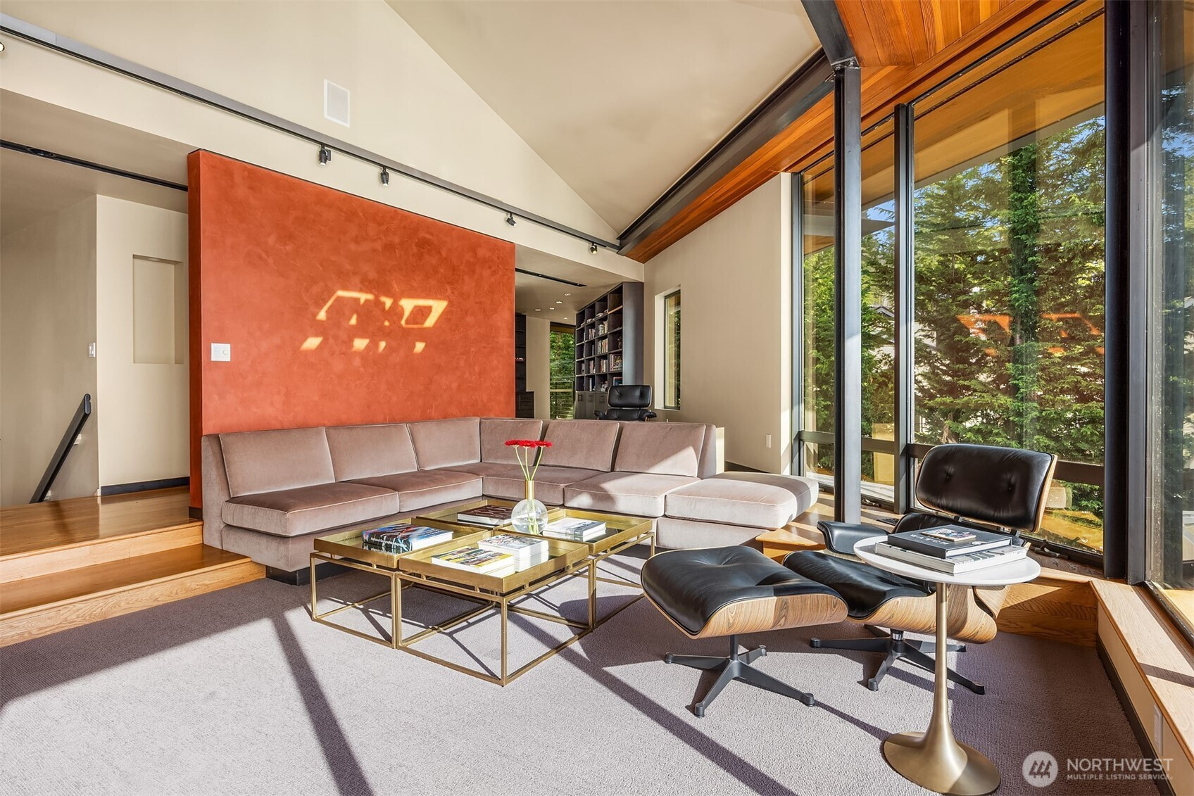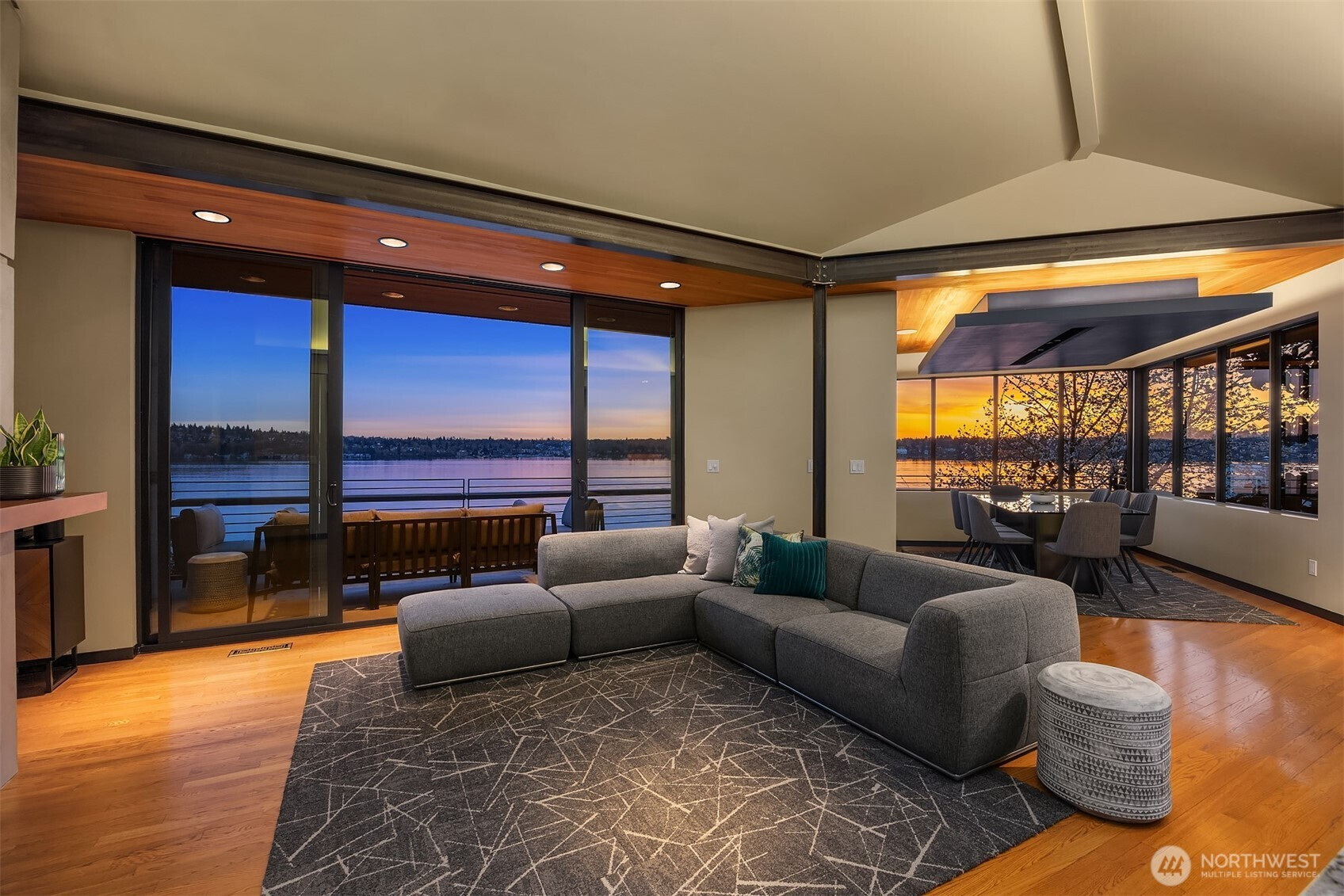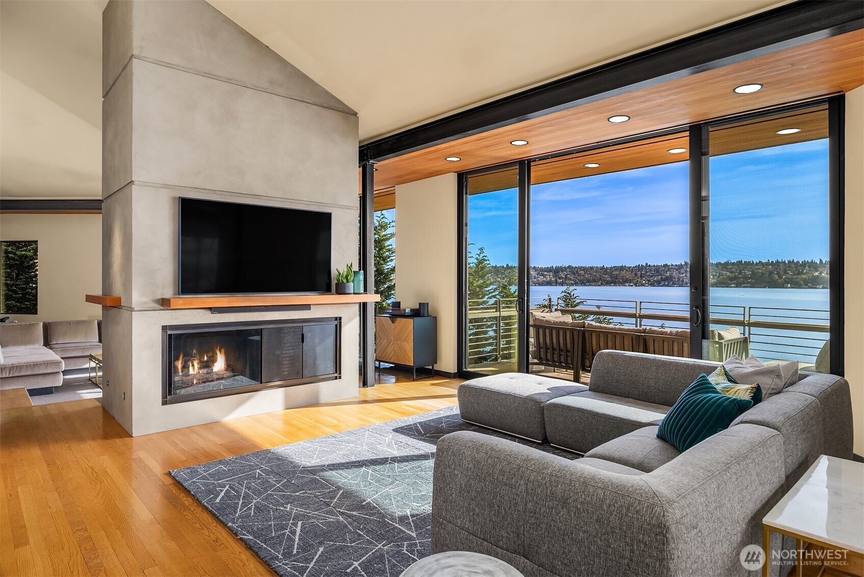 Olson Kundig design set upon the shores of Lake Washington. Light finds you in every space & the views are inescapable in your modern jewel-box home of glass, steel, wood & concrete, artfully reimagined by world renowned architect, Jim Olson, in 2008. Mt Rainier & the Olympics are your backdrop for all-day sun along 65' of coveted West-facing Mercer Island waterfront with new dock in 2017 & boat lift. Enter near waters edge to vaulted gathering spaces with seamless indoor/outdoor flow for social nights by the lake, quiet & intimate zones for retreat & relaxation, primary suite & two additional bedrooms share their own floor centered around a communal family room hub, & lakeside-level entertaining room with additional bedroom, office & 3/4 bathroom.