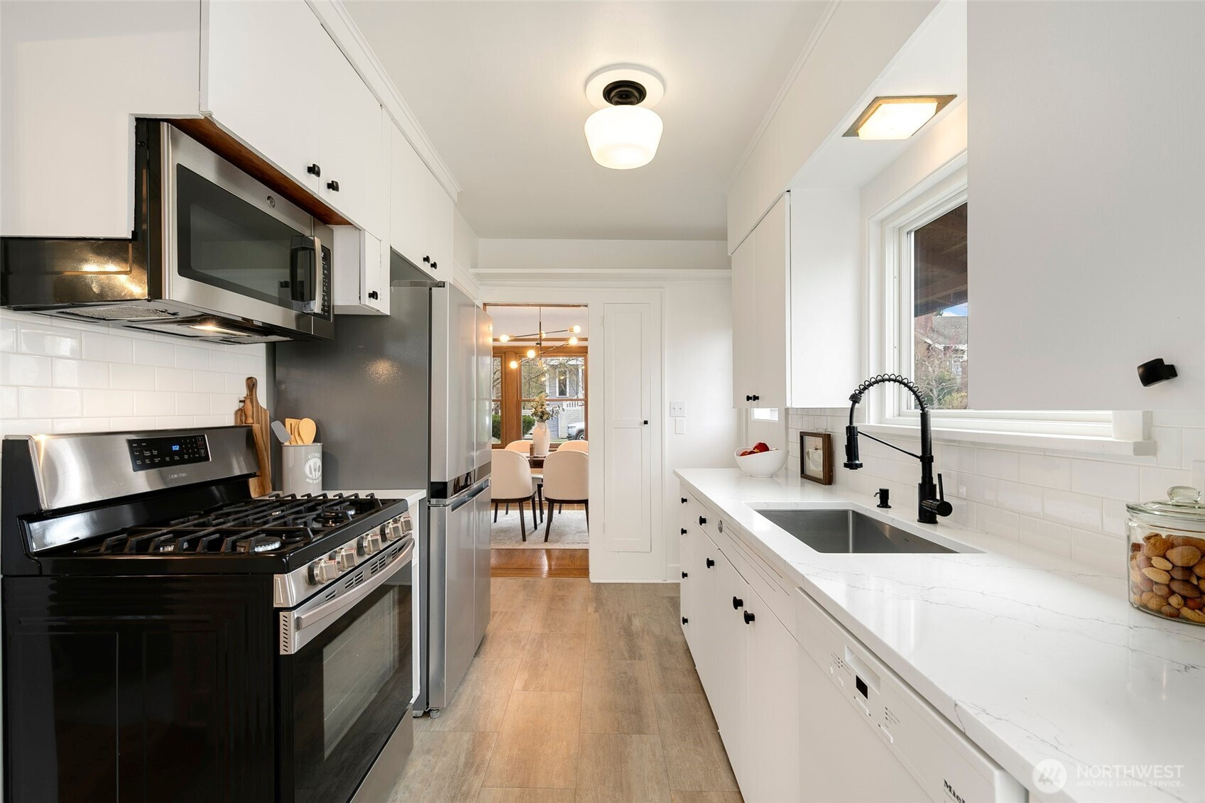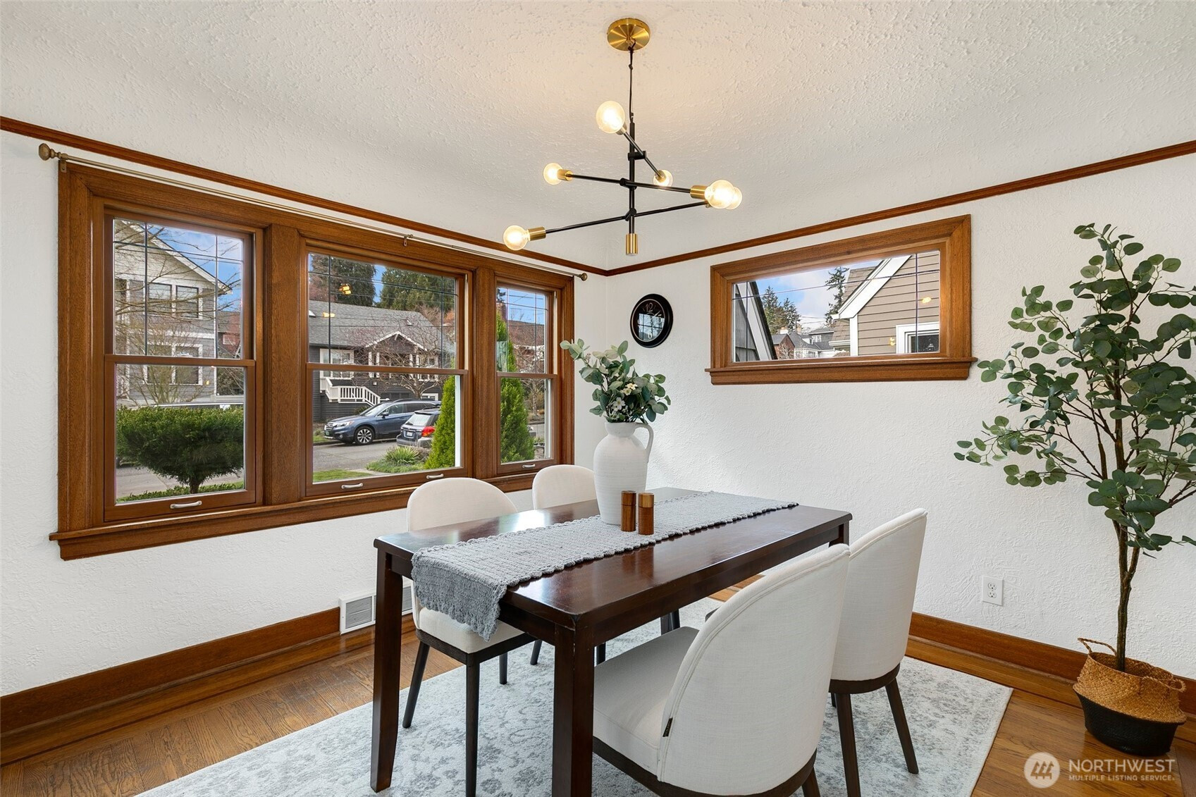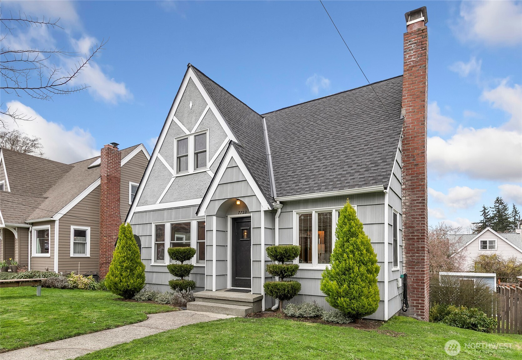 Storybook Tudor charm meets thoughtful updates in the heart of Ravenna. Beautiful curb appeal welcomes you with classic gabled architecture, manicured landscaping, and timeless character. Inside, the home blends preserved period details with modern improvements, including plaster coved ceilings, rich mahogany casework, and hardwood and fir floors. Light-filled living and dining spaces showcase the home’s warmth and craftsmanship, while the updated kitchen offers clean finishes, stainless appliances, and excellent functionality. Other updates include newer siding, newer windows, fresh interior paint and carpet, plus earthquake-retrofitted foundation. The fully finished lower level expands the living space with a kitchenette and flexible rooms ideal for guests, work-from-home, or media. Outside, enjoy a sunny backyard, patio space for entertaining, alley access to off-street parking, and storage shed. Close to neighborhood parks, top-rated schools, cafés and restaurants, with easy access to light rail, I-5, 520, and downtown Seattle. A rare opportunity to own a truly charming and well-cared-for Tudor in one of Northeast Seattle’s most beloved neighborhoods.