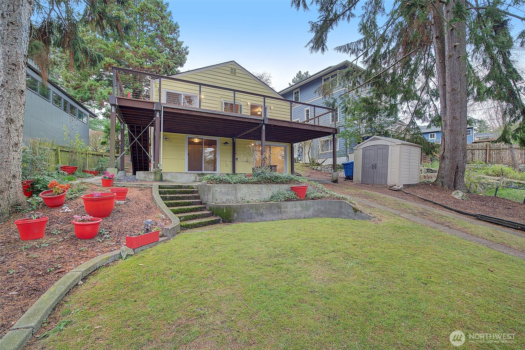 King County new 2026 assessed value as $1,014,000; Redfin Value as $1,186,000; Zillow value as $1,074,000. There is enough discount for buyers to remodel or add an addition or build a DADU after closing. The property has been owner-occupied since 1999 when current owner moved in, never a rental. House inspected, report available on 2/26/26 upon request. Tucked in a nice & quiet neighborhood, easy access to I5, top seattle schools, Street to Street lot from 22nd Ave NE to Ravenna Ave NE, house nicely situated in front of the lot. The back lot is a perfect candidate for a DADU with its own entrance on Ravenna Ave NE possibly its own house address. Also a good candidate to do addition, if not DADU. First time on market since 1999. Gleaming hardwood floors throughout upper floor. A lots of big windows and sliding doors. Very sunny and light indeed! County record shows 4 bedroom 2 baths. The 4th bedroom in lower floor with sliding door was converted into a bonus room which left a big open space for buyer's imagination. Right now, it is 3 bedrooms 2 bathrooms. A grand and spectacular deck in the back with sliding doors from master bedroom & kitchen. Lower floor has two sliding doors to the huge back patio and carport. Affordable price in one of Seattle's nicest and sought after Ravenna neighborhood.