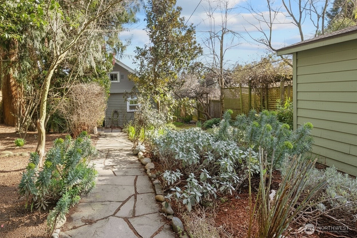 Storybook Craftsman tucked away on a private, secret-garden style lot in West Seattle’s Highland Park neighborhood. Perched high above the street, this enchanting 2-bedroom, 1-bath home welcomes you with a spacious rocking-chair front porch—perfect for morning coffee. Inside, you’ll find fresh interior paint, updated windows, and a newly refreshed kitchen with seamless flow to the backyard patio—ideal for al fresco dining and effortless entertaining. As spring arrives, the lush landscaping bursts into bloom, creating a vibrant and serene outdoor retreat. The backyard offers thoughtfully designed spaces including a dedicated firepit area, established blueberry plants, and a versatile storage shed tucked into the corner of the yard. Additional highlights include off-alley parking, abundant storage in the clean crawl space, and 85 sq ft of attic space. Convenient access to Hwy 509 and nearby bus routes makes commuting a breeze while still enjoying the tranquility of this elevated setting. A truly special place to call home - complete with its own HGTV spotlight moment circa 2017.