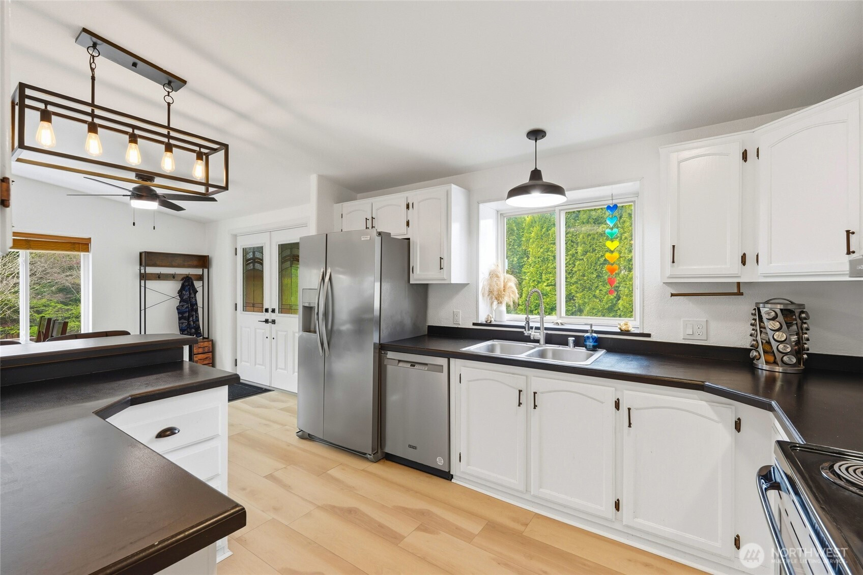 Surrounded by breathtaking Northwest scenery, this beautifully updated Snoqualmie home blends modern comfort with exceptional outdoor living. Fresh exterior paint and tasteful landscaping welcome you to a private yard designed for year-round enjoy a manicured lawn, patios, and a cozy fire pit create an inviting setting for entertaining or quiet evenings under the stars. Inside, enjoy new LVP flooring, updated electrical, fresh interior paint, modern appliances, skylights that flood the primary suite with natural light, and a 2023 roof for peace of mind. Walk to downtown Snoqualmie and riverside dining, explore Snoqualmie Falls, or spend weekends hiking Mt. Si, kayaking Rattlesnake Lake, or golfing nearby. Easy I-90 access makes Seattle and the slopes an effortless escape. Don’t miss this blend of move-in ready updates and gorgeous outdoor appeal.