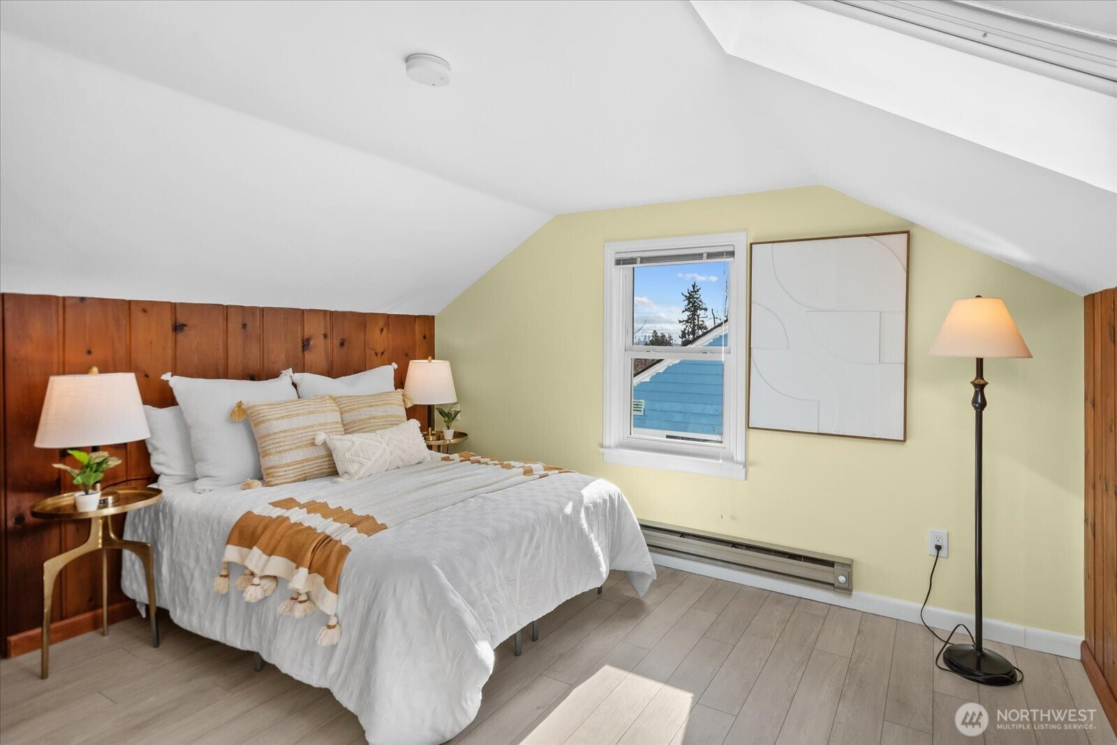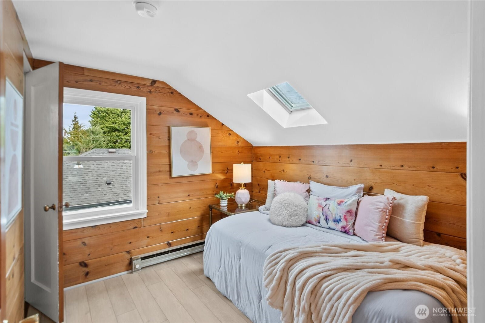 Welcome to the sought-after Sunset Hill neighborhood of Ballard. This beautifully maintained, thoughtfully updated and light-filled 4-bedroom home seamlessly blends timeless architectural character with refined modern comforts. Warm hardwood floors anchor the main living spaces, complemented by fresh interior paint and an inviting wood-burning fireplace that creates an atmosphere of understated elegance. The updated kitchen features new LVT flooring and flows effortlessly into a generous dining area designed for gathering. Two bedrooms and a full bath on the main level, while two more bedrooms and a half bath upstairs provide opportunity for a potential primary suite. Enjoy year-round comfort with a new heat pump which provides both heat and cooling. Step outside to a fully fenced, private west-facing backyard—perfect for relaxed summer evenings and effortless outdoor entertaining. The clean 700 sq ft unfinished basement offers an impressive ceiling height, laundry hookups, and direct backyard access—an exceptional opportunity for future customization. Ideally located near beloved neighborhood favorites including Larsen’s Bakery, Café Munir, Golden Gardens Park, boutique shops, the Ballard Farmers Market and the historic Ballard Locks. Highly regarded Seattle Public and private schools nearby. This home has been pre-inspected and sewer scoped for peace of mind.