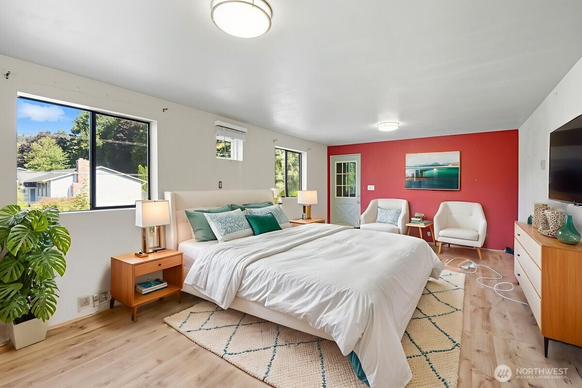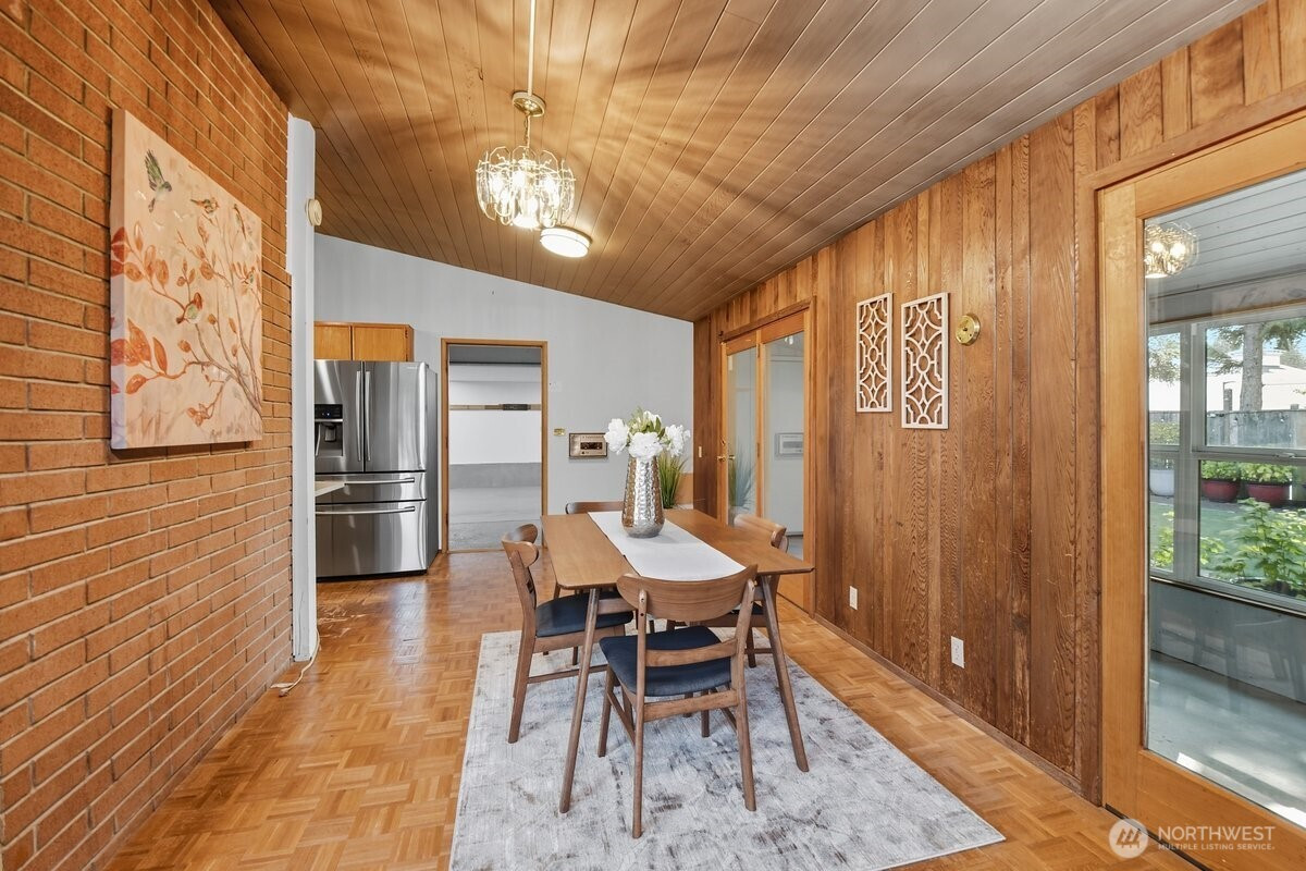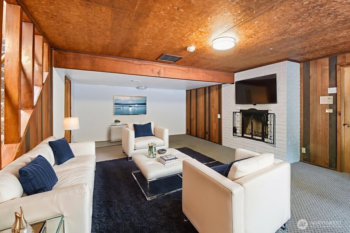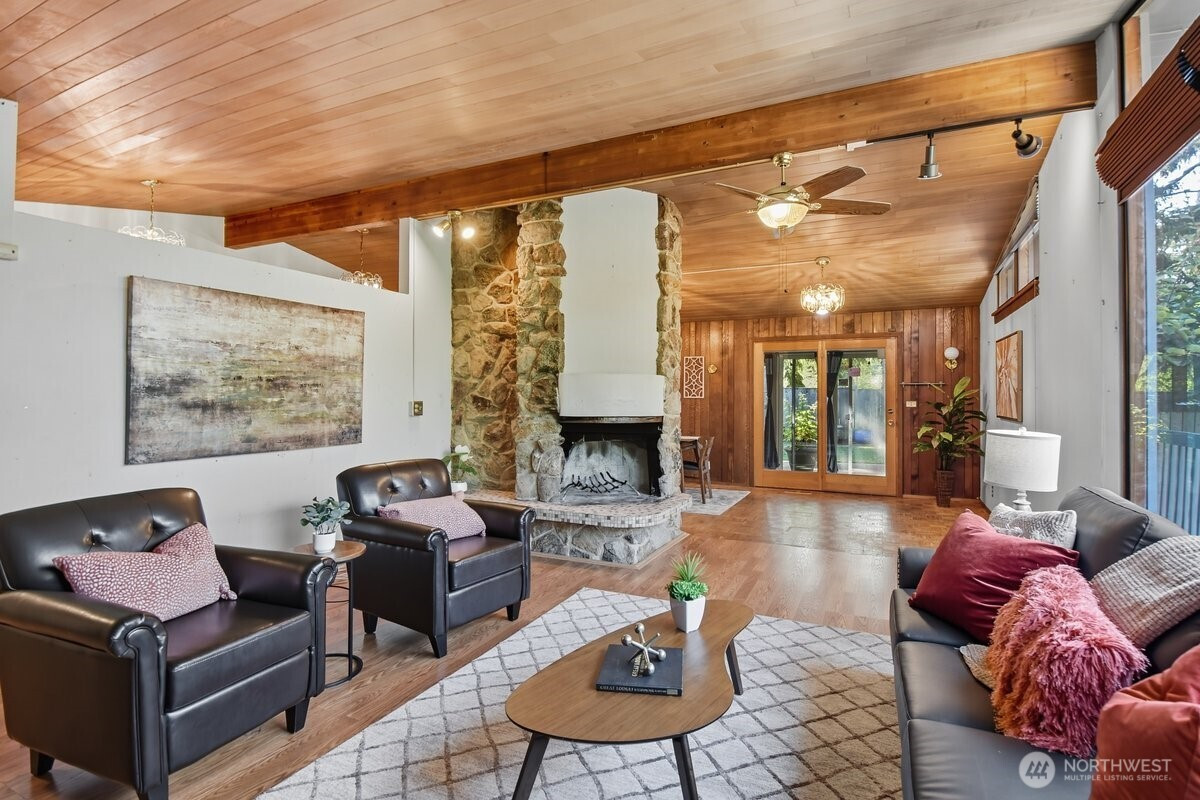 400K price drop; Family owned since 1961; unique A/C hm is full of character & endless possibilities. 5 bdrms, 2.5 baths, spacious living & rec rms w/woodburning frpls, vaulted wood-beamed ceilings & spacious kitchen; Enjoy a pickleball court, pitching mound, sunny deck, 6-person hot tub cabana, & a fully fenced secluded backyard with turf for pets. Garage features a hydraulic car lift, air compressor & 11 ft ceilings. Original 2-car garage was converted into a large bonus rm; 3 driveways for RV/boat/extra parking for at least 15 vehicles, a handyman's workshop, solar panels with 50 year roof warranty & a soundproof bomb shelter with bar & keg. A rare one-of-a kind property near all amenities & Juanita Beach Park; won't last @ this price!