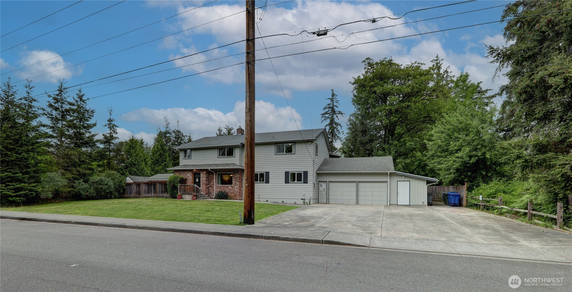 Spacious 5 bed/3 bath home in highly desirable Kenmore. Substantial lot w/ protected areas & good privacy. Fully fenced backyard. Off street parking can accommodate an RV & many guest vehicles. Main floor living area & adjacent deck ideal for entertaining. Updated kitchen has granite counters , new SS appliances & high quality cabinets. DR/LR/kitchen is open layout. One bedroom with full bath and adult gaming room on main floor, four bedrooms upstairs includes m/suite with jacuzzi tub. Bonus room above the garage has CAT 5 wiring. Large garage can house a shop, tools & shelf items. Adjoining storage rooms and backyard shed will convey. Raised garden bed in back Highly sought after Northshore school district. This gem has heat pump and AC.