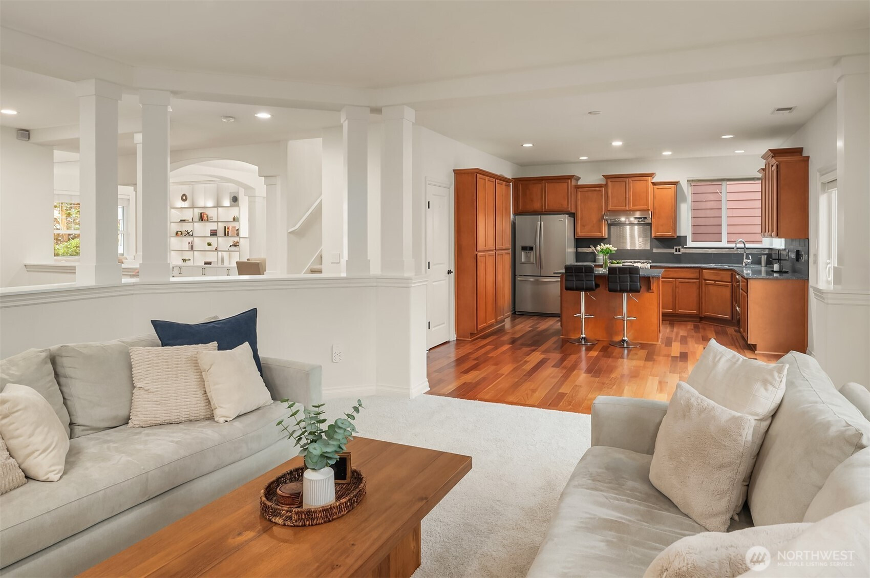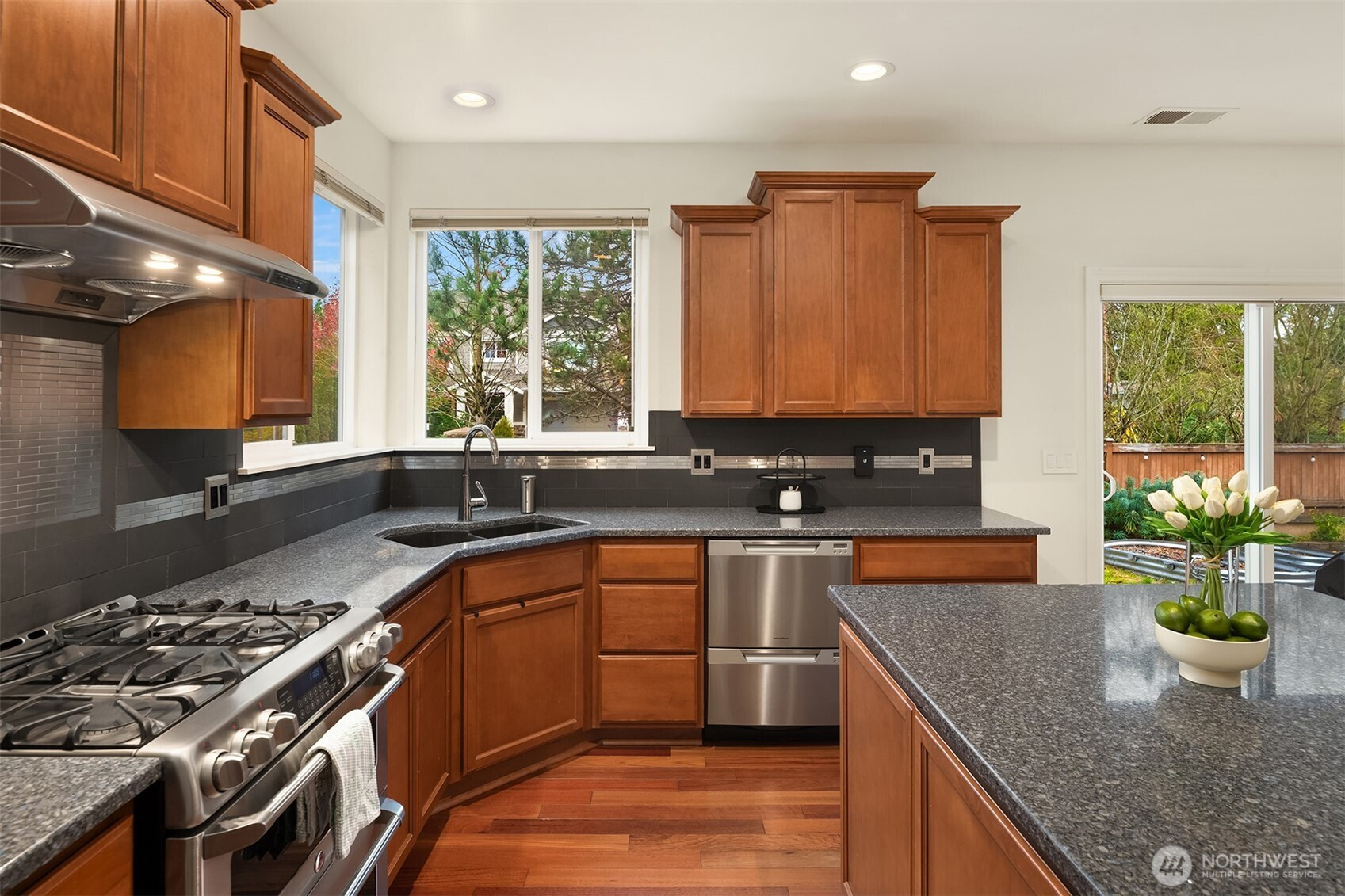 Gorgeous 4BD, 2.5BA craftsman in the VerCello neighborhood blending modern updates with timeless charm. Elegant details throughout - new carpets, 9' ceilings, rich millwork, gleaming hardwoods, skylights, abundant natural light, and a cozy gas fireplace. The open kitchen features stainless appliances, slab quartz counters, a butler’s pantry, and a breakfast bar for casual dining. Spacious upstairs loft perfect for media room, home gym or flex space. Primary suite offers an ensuite 5-piece bath and large walk-in closet. Outside, a private, fully fenced landscaped yard and patio ideal for entertaining. Private driveway, attached 2-car garage, newer HVAC and AC, plus generous storage. Close to parks, schools, and shopping.