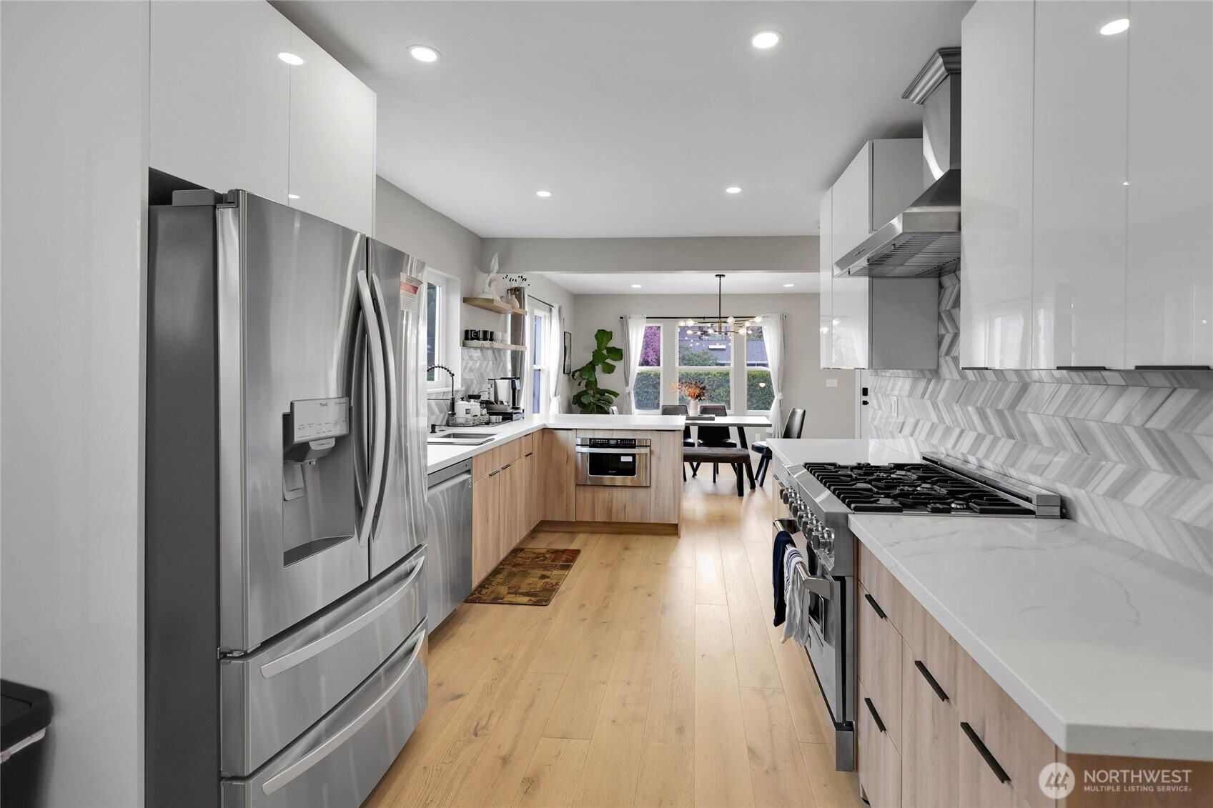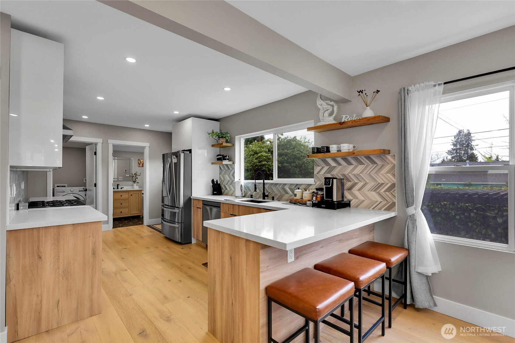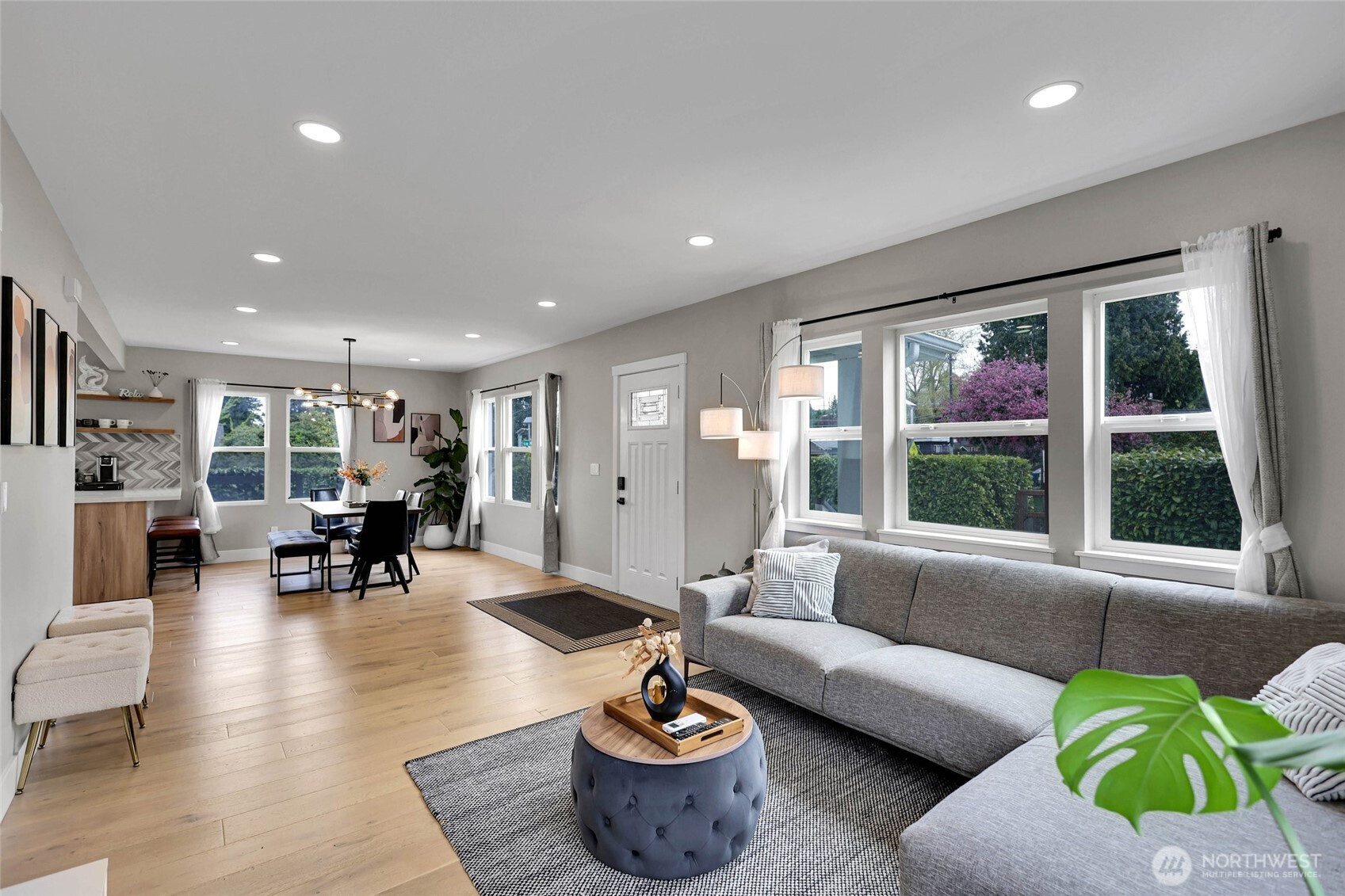 Experience the perfect blend of craftsmanship and modern comfort in this stunning, fully remodeled gem in Highland Park—a small community with three homes nestled in a friendly, quiet neighborhood. The main floor boasts an open-concept layout that seamlessly flows from the chef's kitchen to the dining and living areas. The kitchen is equipped with a high-end six-burner gas stove, stainless steel appliances, quartz countertops, and ample cabinetry. The master bedroom includes dual walk-in closets and luxury ensuite bathroom with heated tile floors. Additional second full bathroom is conveniently located off the stairs, as well as dedicated laundry room. Upstairs, you'll find two spacious bedrooms, an open loft, and two large walk-in storage areas. The lower level adds flexibility with additional living space, featuring a kitchen, full bathroom with heated tile floors, washer/dryer, and separate entry—ideal for guests, multi-generational living, or rental opportunities. The exterior features an oversized level corner lot, surrounded by tall hedges, a covered patio with solar lighting, RV parking, dedicated alley parking, and ample street parking. With extensive renovations already completed, including engineered hardwood flooring throughout the main floor and mini-split heating and cooling systems, this move-in-ready home delivers the perfect balance of style, functionality, and flexibility.