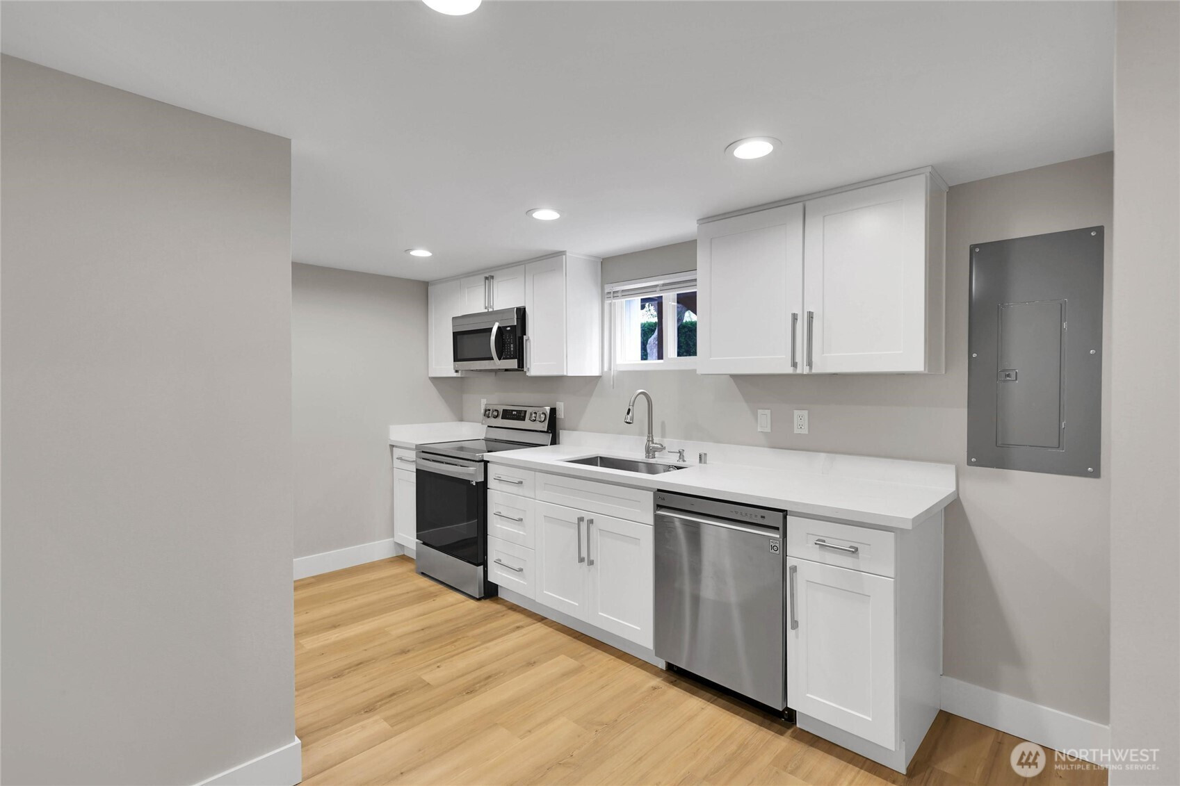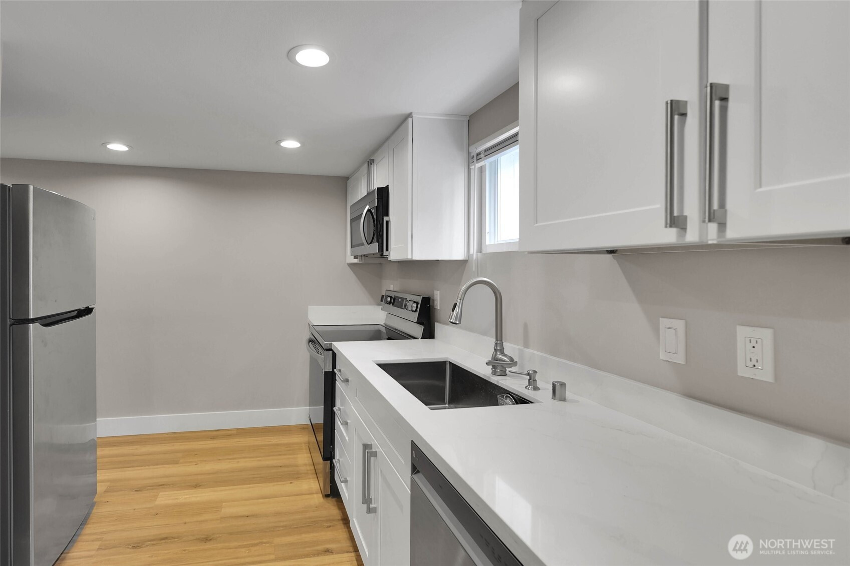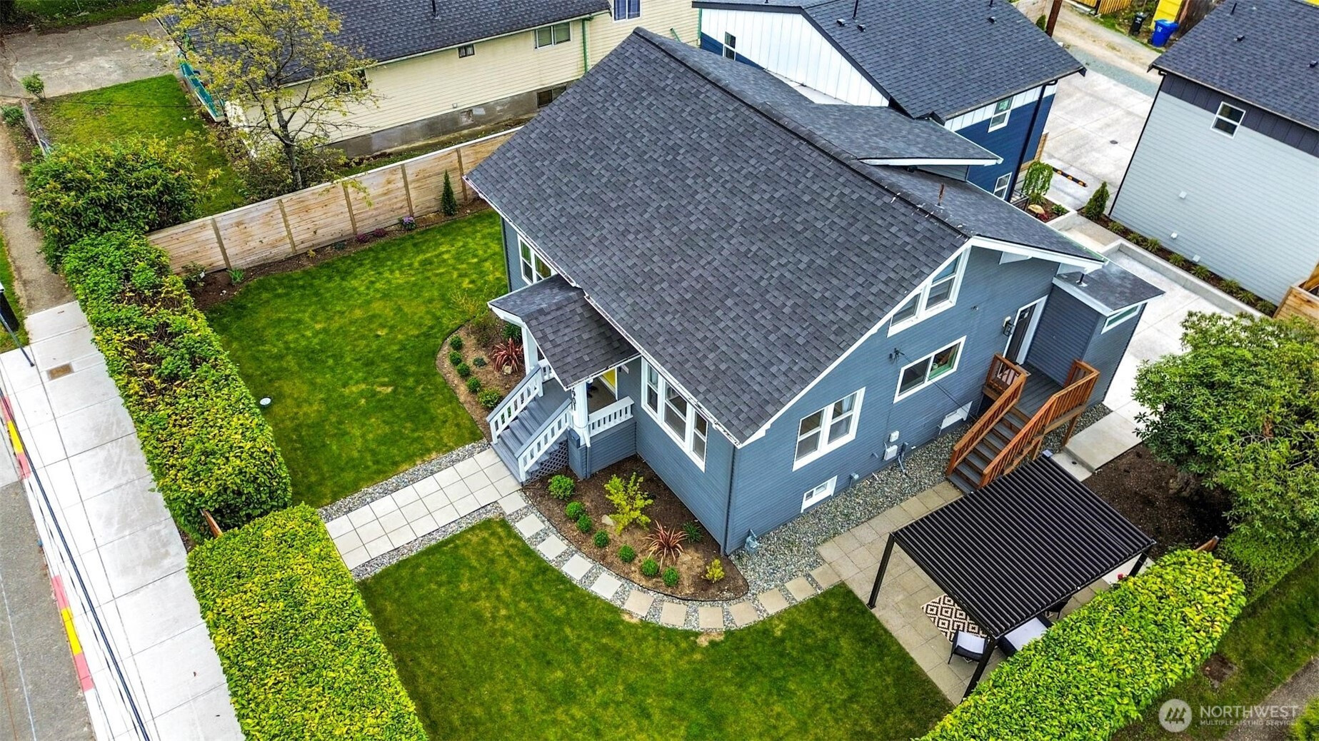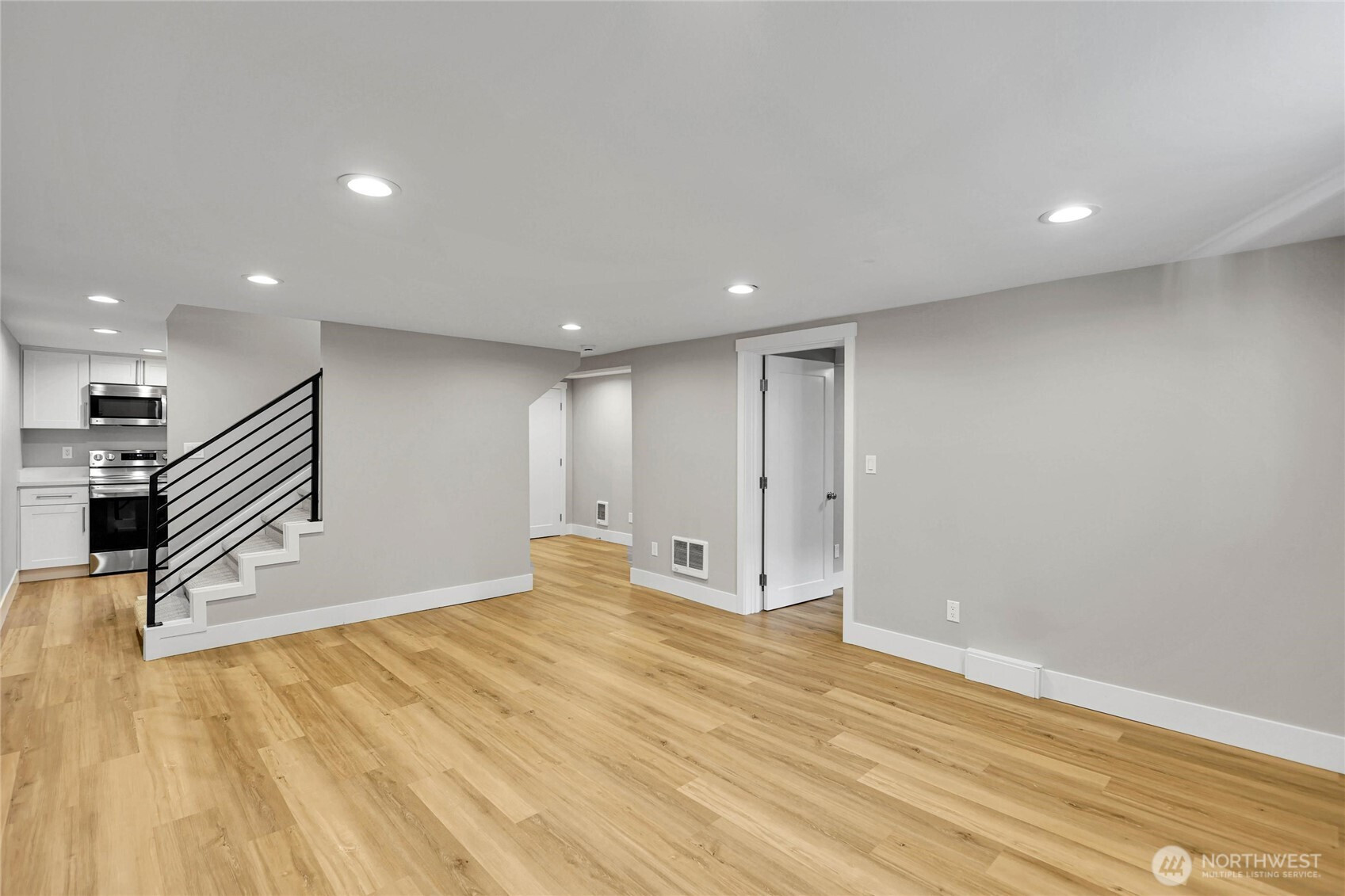 Experience the perfect blend of craftsmanship and modern comfort in this stunning, fully remodeled gem in Highland Park—a small community with three homes nestled in a friendly, quiet neighborhood. The main floor boasts an open-concept layout that seamlessly flows from the chef's kitchen to the dining and living areas. The kitchen is equipped with a high-end six-burner gas stove, stainless steel appliances, quartz countertops, and ample cabinetry. The master bedroom includes dual walk-in closets and luxury ensuite bathroom with heated tile floors. Additional second full bathroom is conveniently located off the stairs, as well as dedicated laundry room. Upstairs, you'll find two spacious bedrooms, an open loft, and two large walk-in storage areas. The lower level adds flexibility with additional living space, featuring a kitchen, full bathroom with heated tile floors, washer/dryer, and separate entry—ideal for guests, multi-generational living, or rental opportunities. The exterior features an oversized level corner lot, surrounded by tall hedges, a covered patio with solar lighting, RV parking, dedicated alley parking, and ample street parking. With extensive renovations already completed, including engineered hardwood flooring throughout the main floor and mini-split heating and cooling systems, this move-in-ready home delivers the perfect balance of style, functionality, and flexibility.