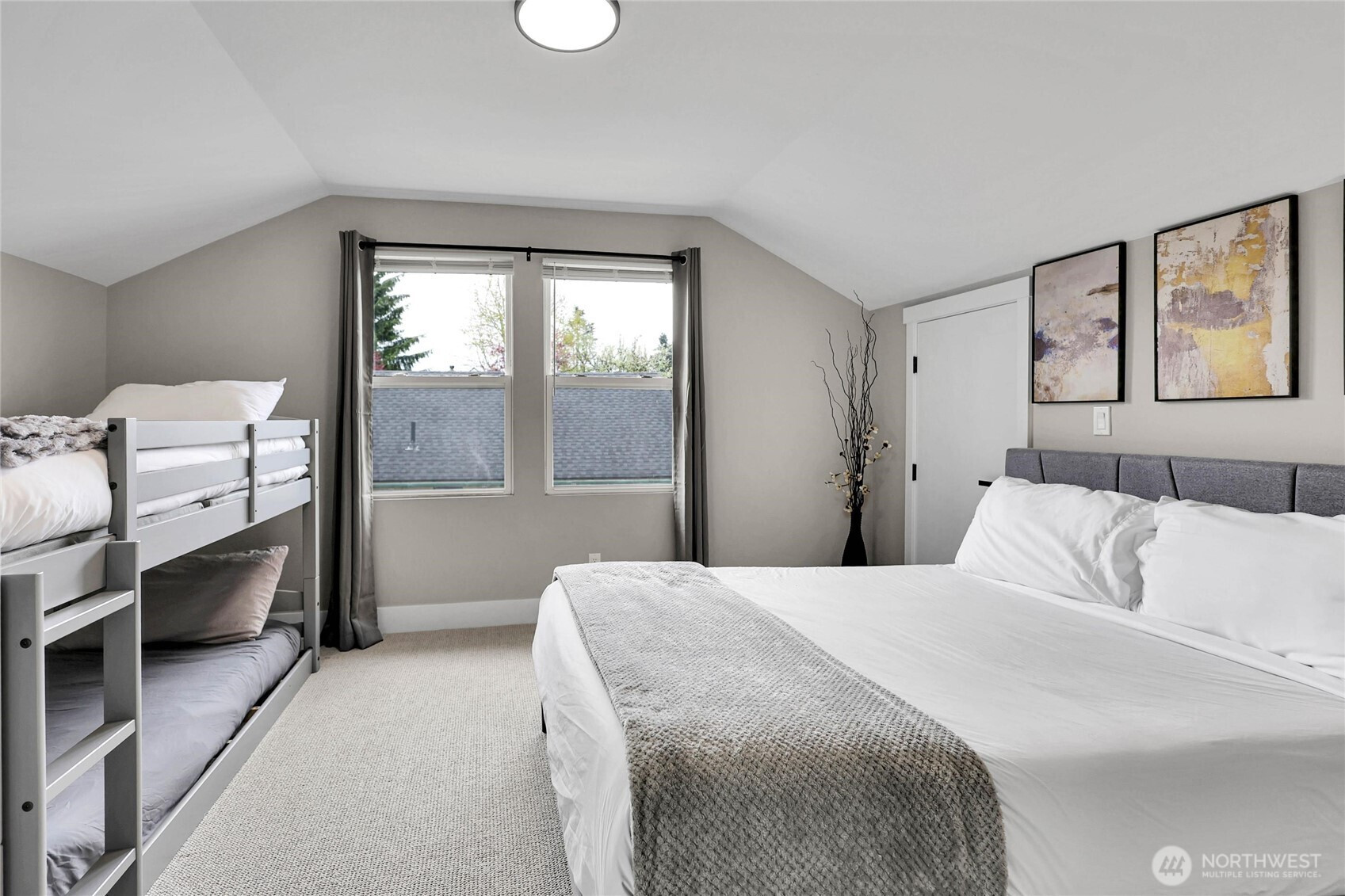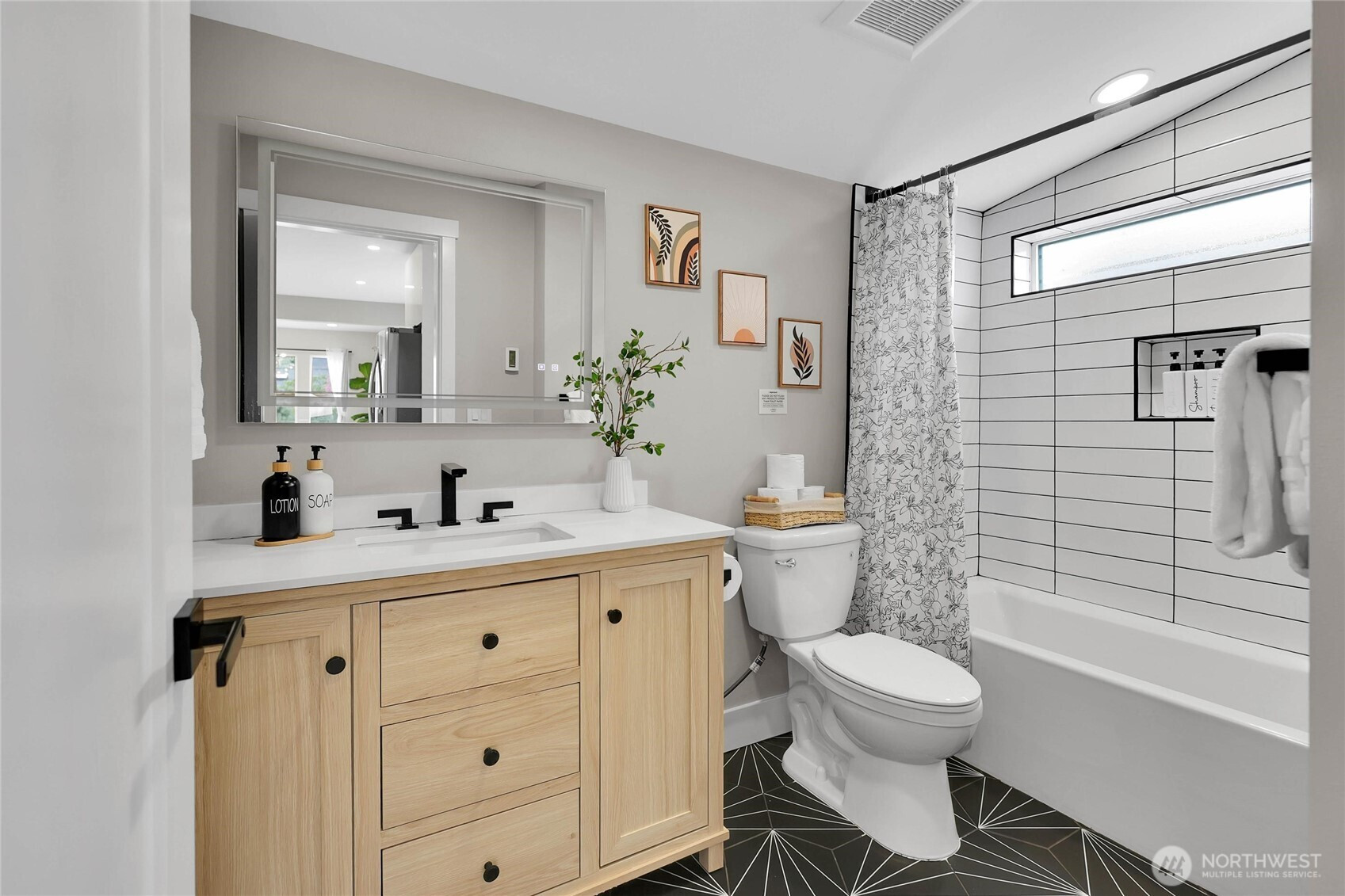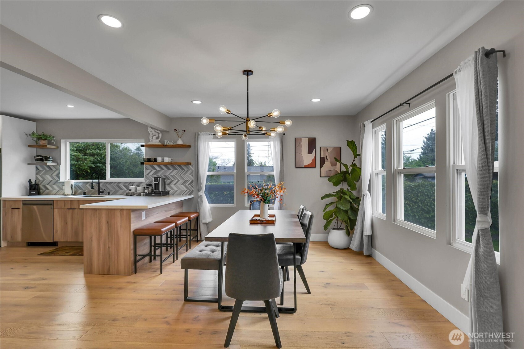 Experience the perfect blend of craftsmanship and modern comfort in this stunning, fully remodeled gem in Highland Park—a small community with three homes nestled in a friendly, quiet neighborhood. The main floor boasts an open-concept layout that seamlessly flows from the chef's kitchen to the dining and living areas. The kitchen is equipped with a high-end six-burner gas stove, stainless steel appliances, quartz countertops, and ample cabinetry. The master bedroom includes dual walk-in closets and luxury ensuite bathroom with heated tile floors. Additional second full bathroom is conveniently located off the stairs, as well as dedicated laundry room. Upstairs, you'll find two spacious bedrooms, an open loft, and two large walk-in storage areas. The lower level adds flexibility with additional living space, featuring a kitchen, full bathroom with heated tile floors, washer/dryer, and separate entry—ideal for guests, multi-generational living, or rental opportunities. The exterior features an oversized level corner lot, surrounded by tall hedges, a covered patio with solar lighting, RV parking, dedicated alley parking, and ample street parking. With extensive renovations already completed, including engineered hardwood flooring throughout the main floor and mini-split heating and cooling systems, this move-in-ready home delivers the perfect balance of style, functionality, and flexibility.