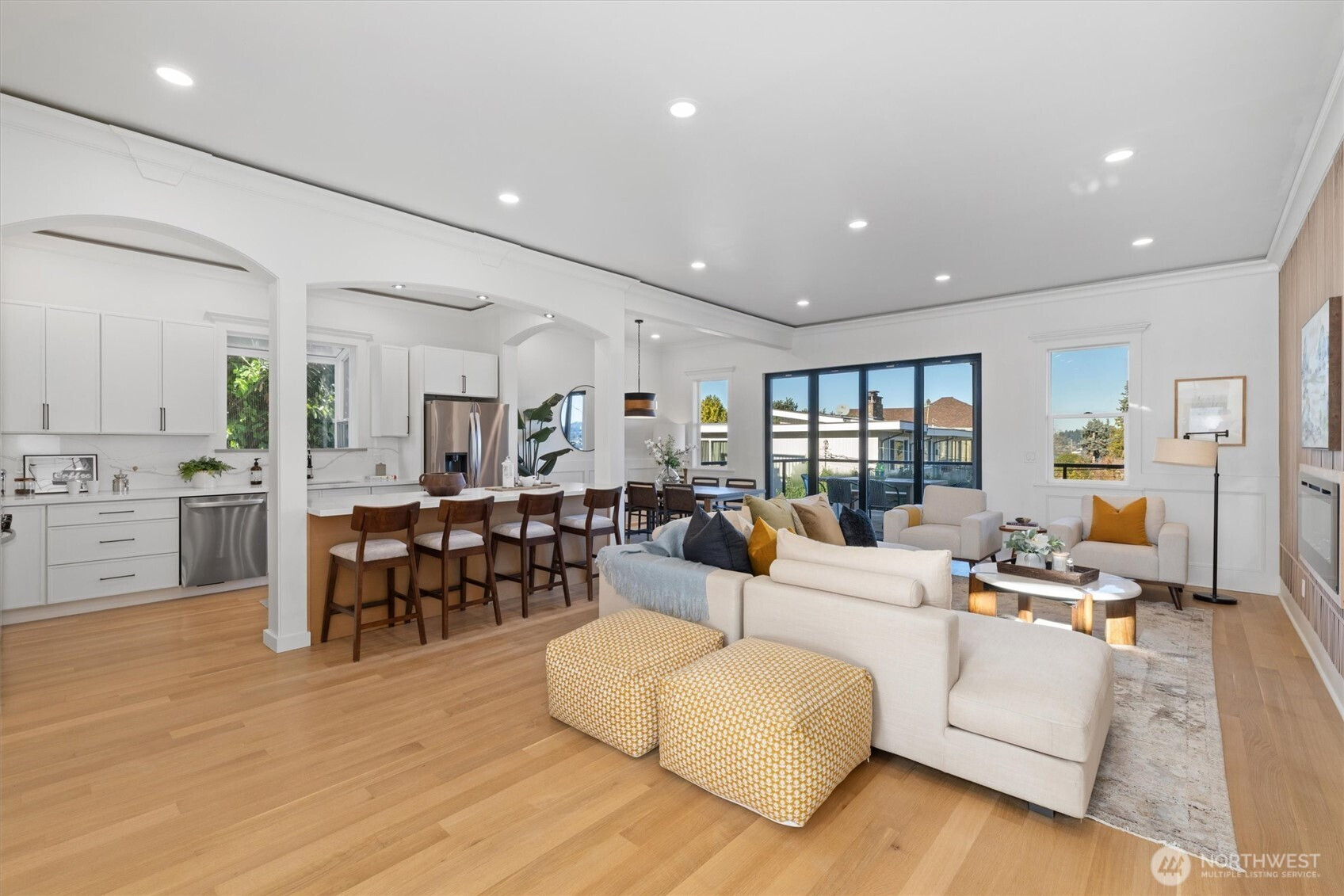 Elegant 7-Bedroom, 5-Bath Estate with spectacular Lake Washington and Mountain Views. Discover luxury living in this expansive 4,670 sq ft residence, originally built in 2010 and thoughtfully updated in 2025. Ideally situated just four blocks from the shores of Lake Washington and a short stroll to Lakeridge Park. Grand entry welcomes you to a fully updated interior featuring multiple decks to savor dramatic panoramas. Main floor bedroom and office provide great flexibility. Upper level offers four bedrooms and three baths highlighted by a well-designed primary suite. A standout feature is the fully self-contained, two-bedroom, one-bath accessory dwelling unit (ADU) on the lower level, with its own private garage perfect for extended living, guests, or rental income. Additional highlights - spacious two-car attached garage, meticulous craftsmanship, and prime proximity to I-5 and I-405 for easy commuting. A rare, view-focused estate with versatile living options in Seattle. Inquire about great rates on jumbo loans.