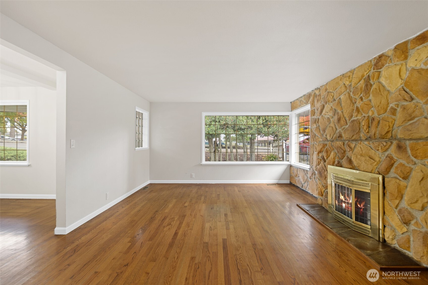 Experience timeless charm and modern comfort in this beautifully updated 4-bedroom, 1.75-bath home offering 1,900 sq ft of refined living. Rich hardwood floors flow through the main living and dining areas, centered around a stunning floor-to-ceiling stone fireplace. The lower level features brand-new LVP flooring, carpet, lighting, and hardware, plus a spacious second kitchen—perfect for gatherings or extended stays. Fresh interior paint throughout. Kitchen features brand new LVT, stainless steel appliances and large pantry with pull out shelves. Enjoy the large outdoor space with a built-in fire pit. Oversized one-car garage, plus driveway parking. Conveniently located, this thoughtfully updated home blends elegance and everyday ease.