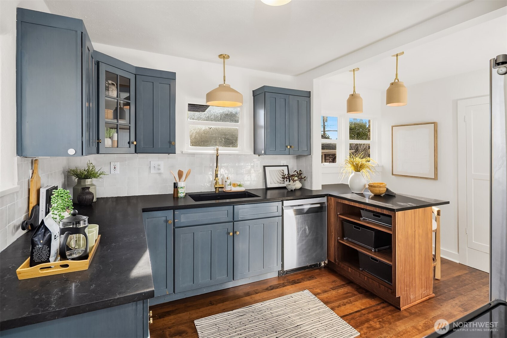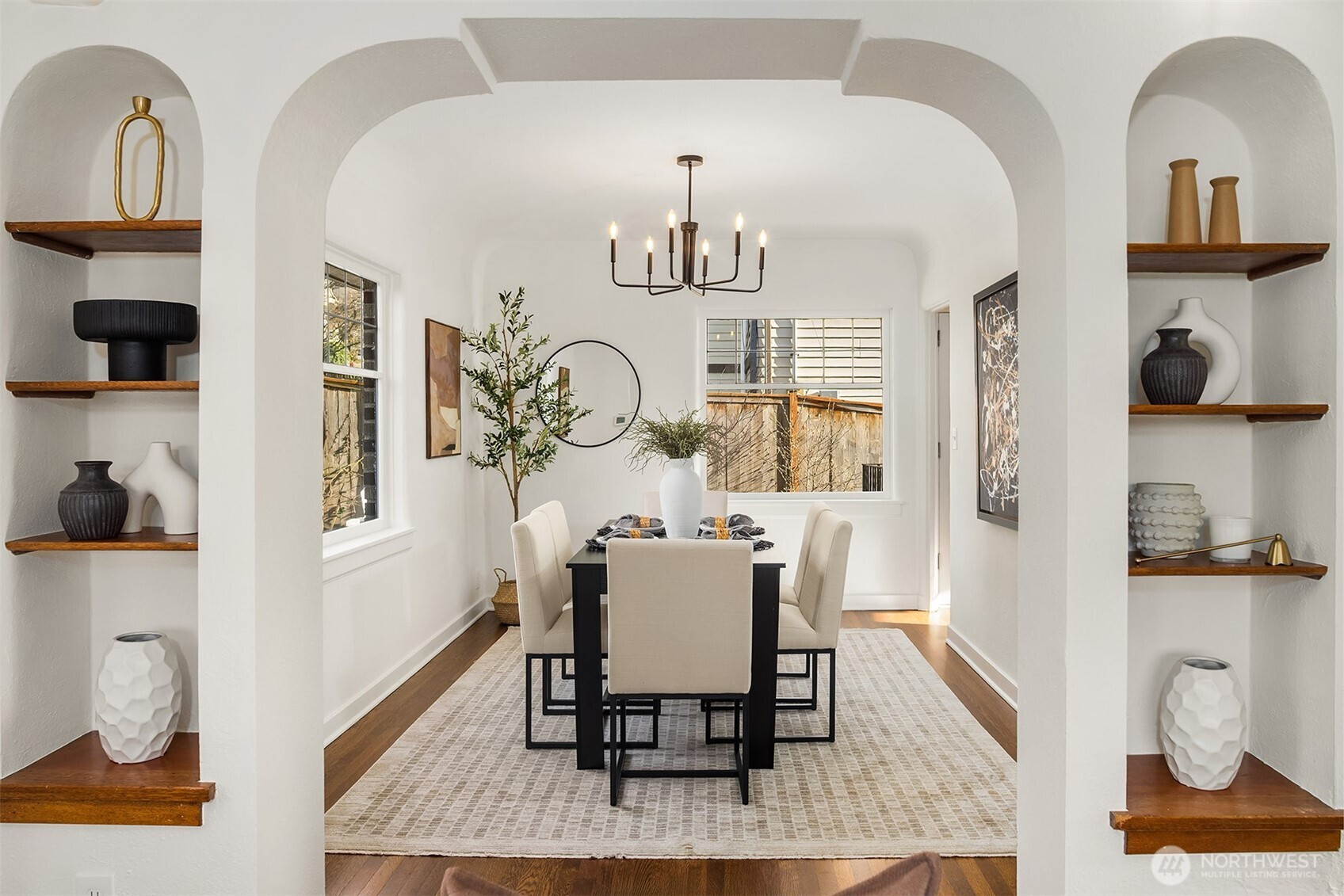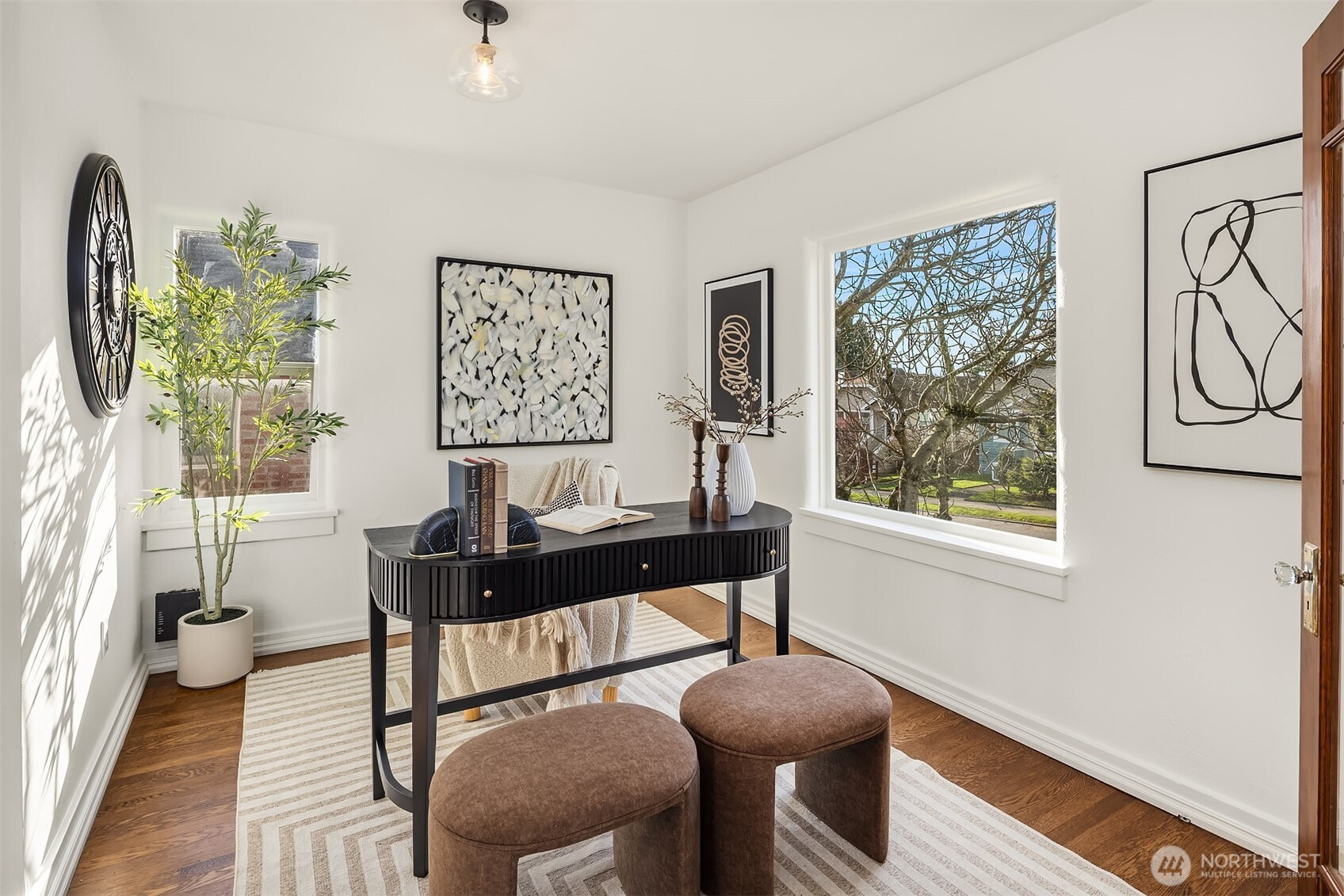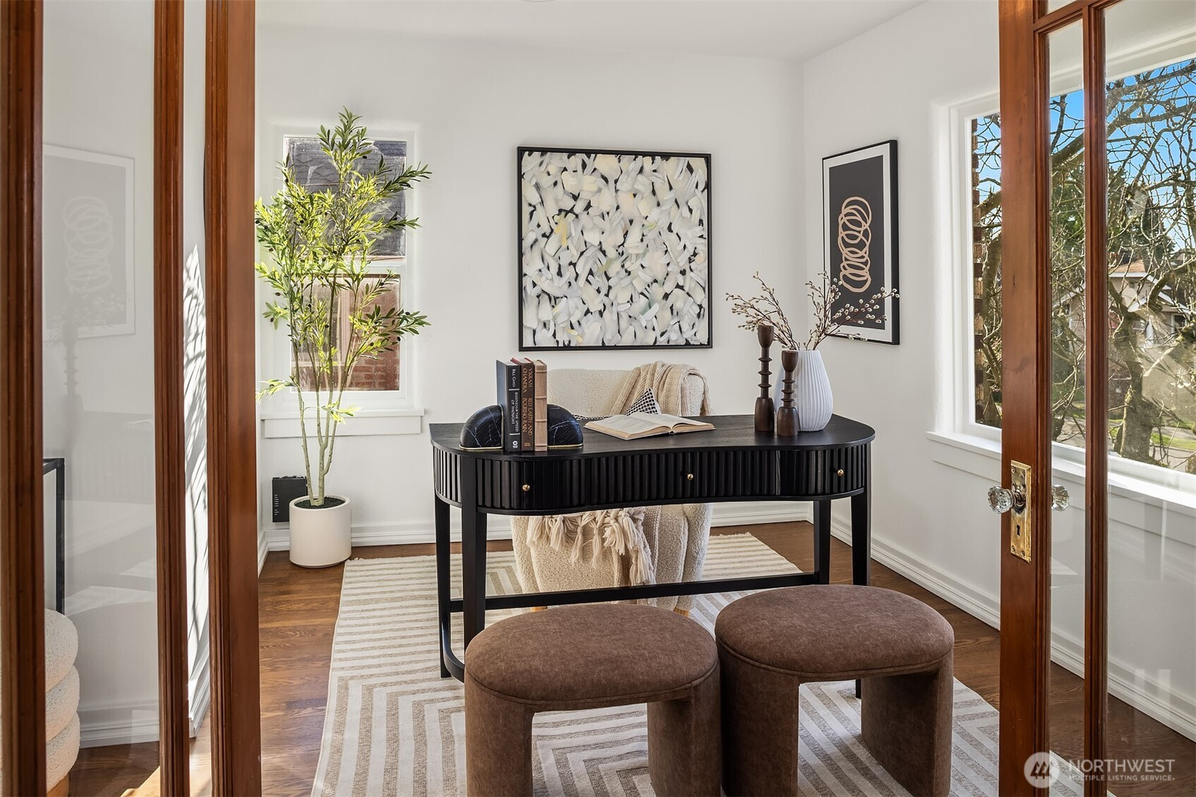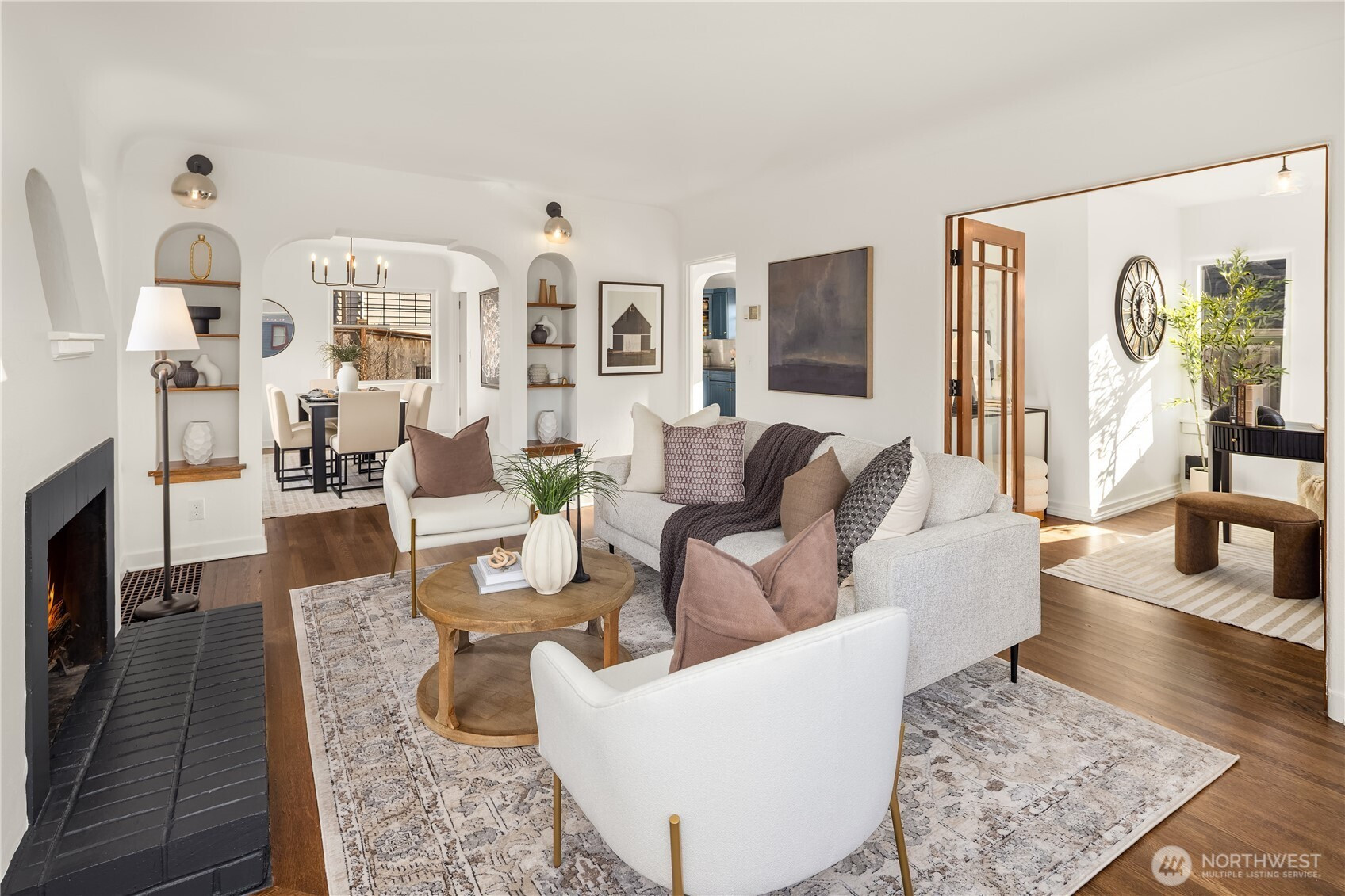 Classic 1929 Tudor in the heart of the Maple Leaf neighborhood. This inviting home offers effortless access to local shops, dining, parks, and convenient routes throughout North Seattle. The thoughtful floor plan includes three bedrooms on the upper level, a main-floor office or flexible living space, 1¾ baths, and a fully finished basement ideal for relaxing, working, or entertaining. A private rear patio creates a peaceful outdoor retreat for morning coffee or evening gatherings. Original oak hardwood floors, arched doorways, coved ceilings, and classic proportions highlight the home’s timeless warmth and character. Tastefully updated and move-in ready, seamlessly blending historic charm with everyday comfort.