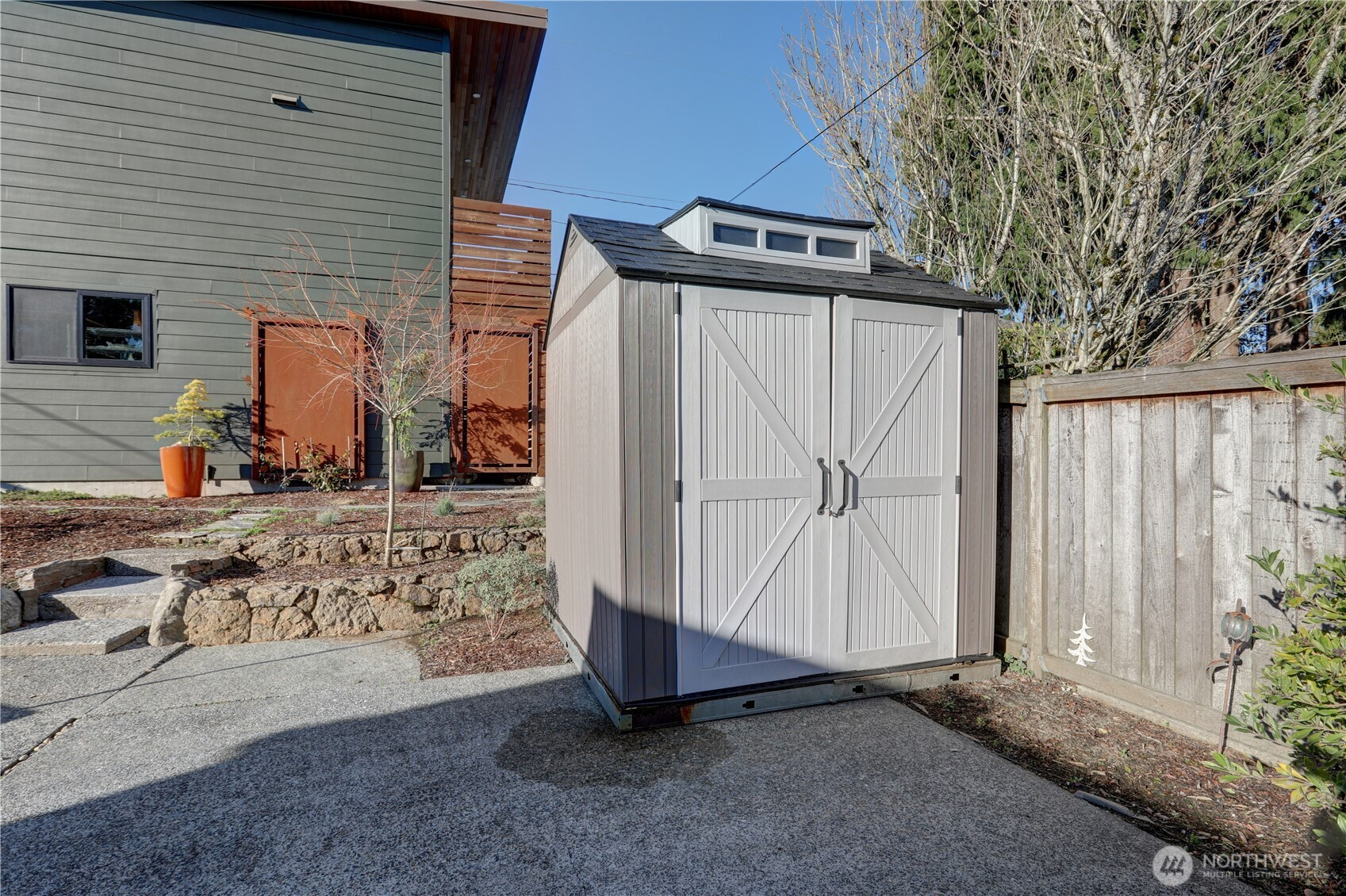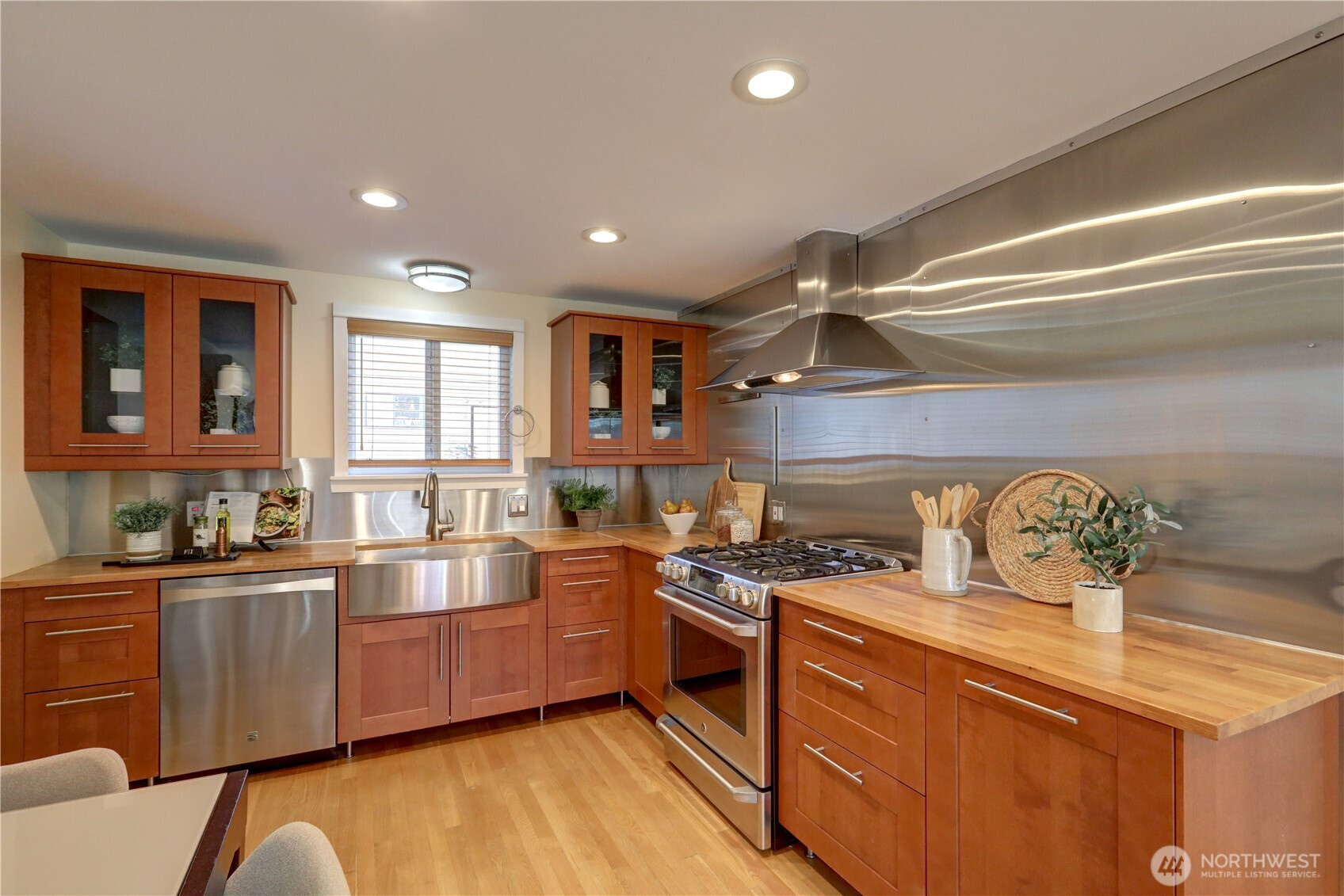 This exquisite home combines luxury with uber charm. Upon entry, you’ll be embraced by the warmth of abundant natural light, gorgeous hardwood floors, and a beautifully crafted gas fireplace. Yet the centerpiece and heart of this home is the stunning gourmet cooks' eat-in kitchen. Enveloped in a stainless-steel backsplash, with butcher-block counters, a stainless-steel farmhouse sink, and high-end appliances, this space elevates cooking to an art form. There are two well-proportioned bedrooms and a full, artfully designed bathroom, capped with a spacious laundry and storage room with ample cabinetry. Mini splits bring year-round temperature comfort. The front yard is a showpiece of master gardening, and in the back is a spacious patio for quiet enjoyment and/or a fabulous entertainment space. An attractive storage shed sits to the side. This is one of two condo dwellings. HOA dues are $20 annually, and this home lives entirely separate from the newer home on the alley side. This gem is located in the wonderful Westwood neighborhood and community, close to restaurants, cafes, great shopping, and easy commuting north or south.