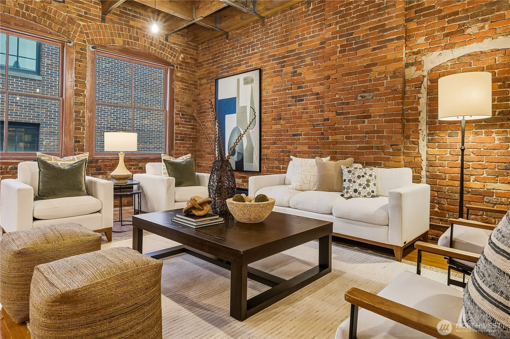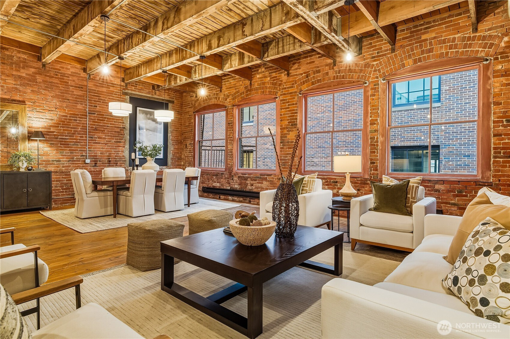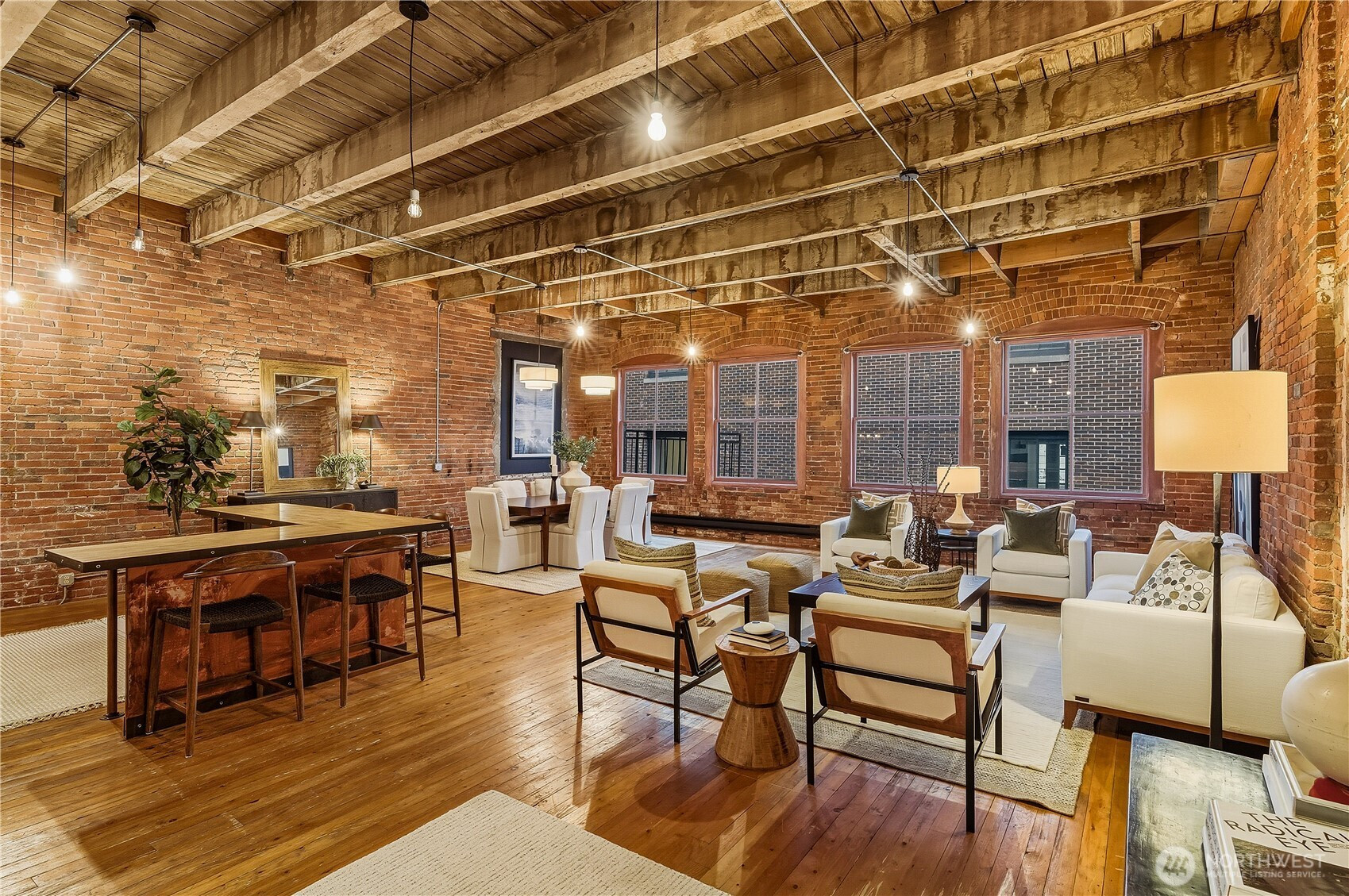 An historic, Pioneer Square gem a short jaunt away from the playoff winning Mariners, Superbowl bound Seahawks and upcoming FIFA World Cup! This New York loft-style condominium offers a blend of classic architectural elements and modern amenities. Constructed in 1900 and converted into condos in the late 1980s, the unit boasts exposed brick walls, soaring ceilings, and huge Palladian windows. Original hardwood floors flow throughout the space of the one bedroom, office/den, and newly remodeled bathroom. Stainless steel appliances and abundantly sized eating bar accent the kitchen. Large dining and living areas have plenty of room for all your entertaining needs. Access to a rooftop deck with Westerly views of the Great Wheel, Bainbridge Island and beyond. One car secured parking and storage unit located in a secure garage. A cultural mecca for our city's venues for local galleries, sports, concerts, eateries, wineries and beer halls.