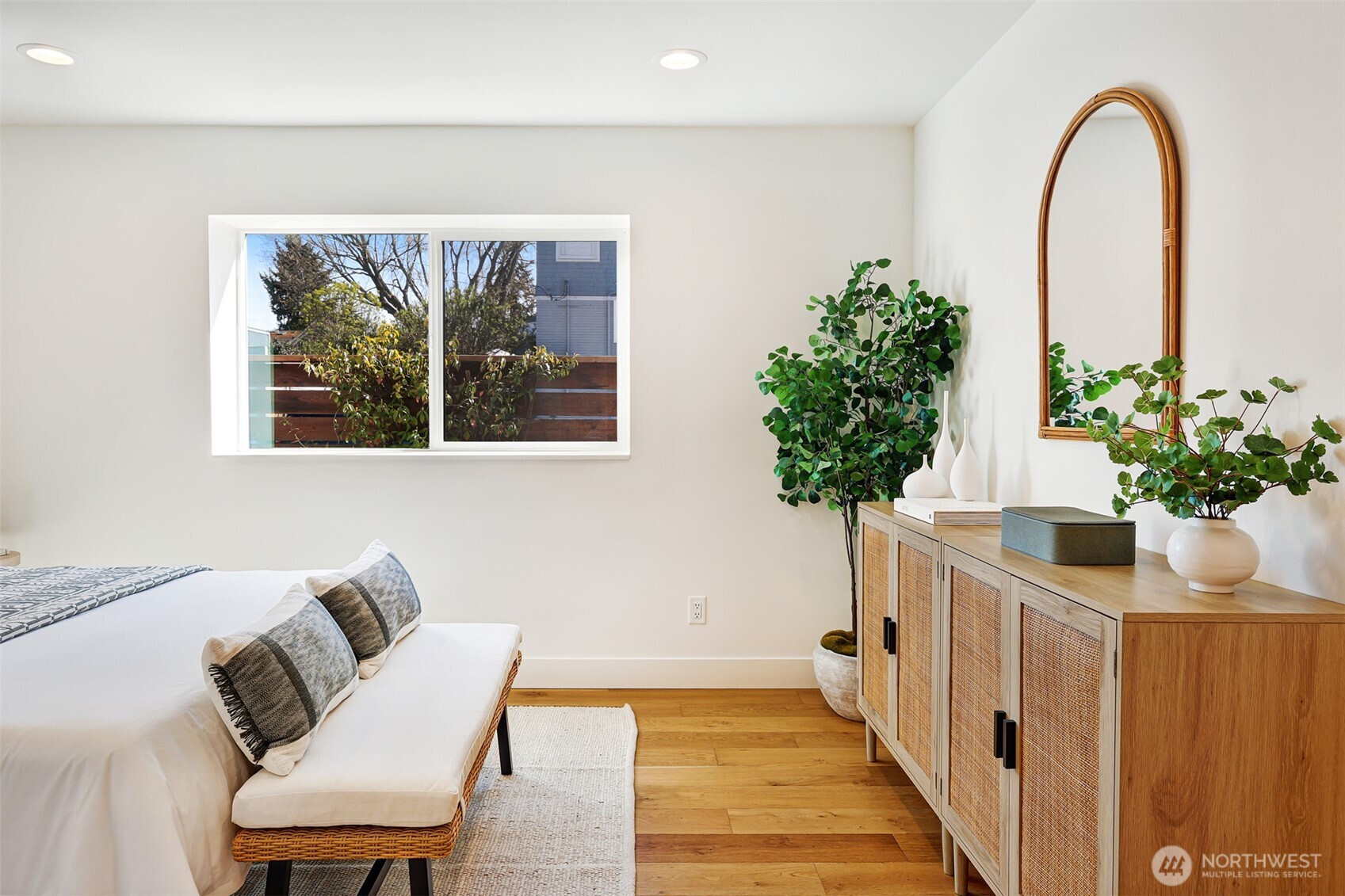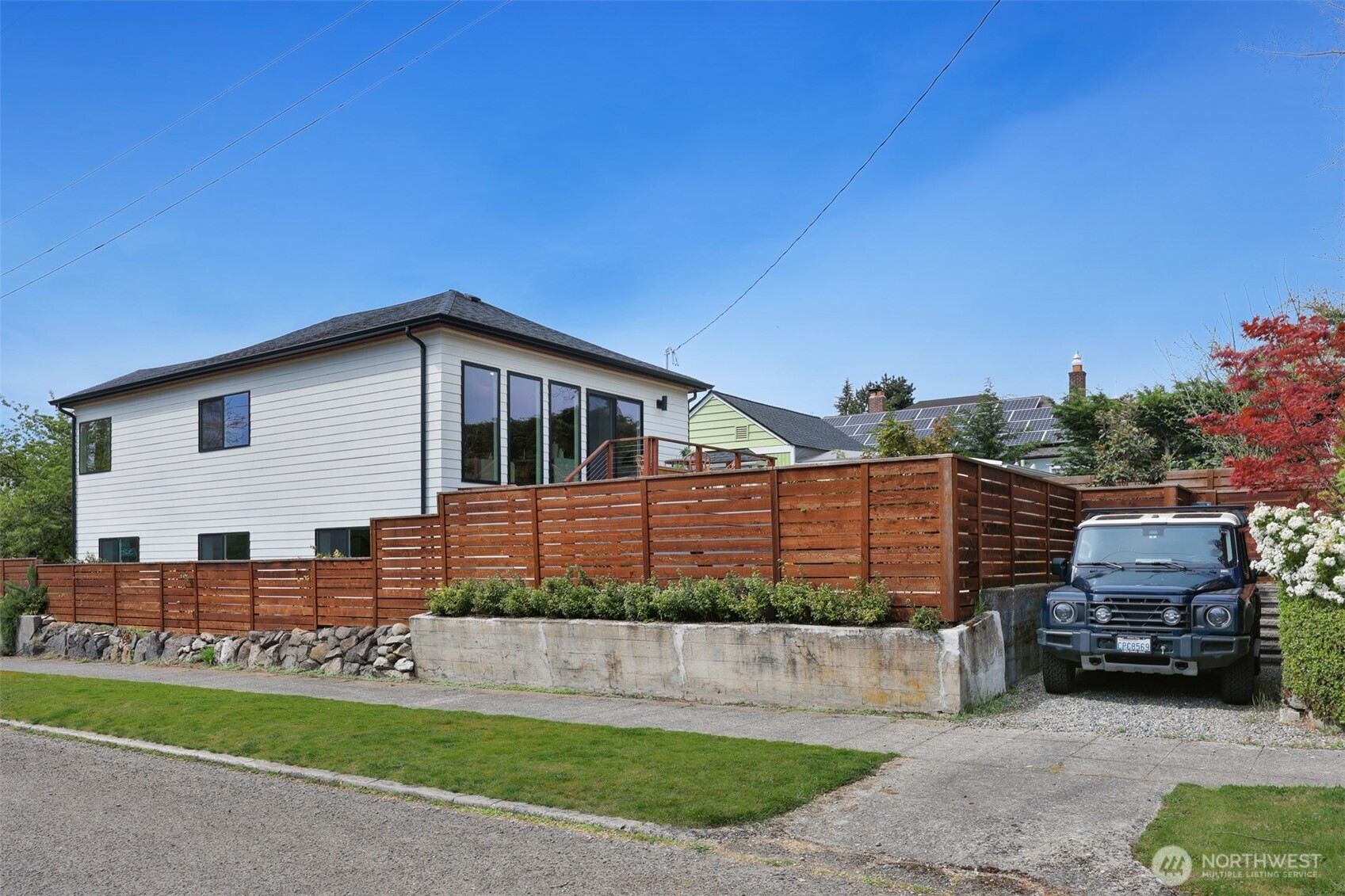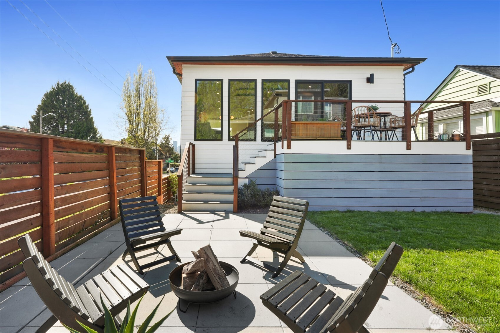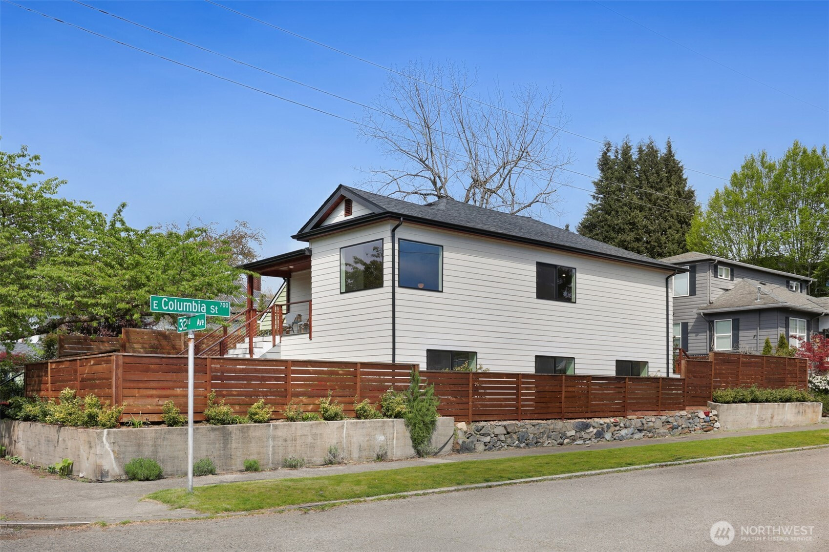 Welcome to a reimagined classic home in sought-after Madrona. Soaring ceilings bring a sense of openness, blending modern style with warm, welcoming touches. The spaces are clean and bright, with two living areas and a chef's kitchen ready for entertaining. All bedrooms are on one level, including a spacious primary suite with a walk-in closet and a luxurious bath. Enjoy views of downtown Seattle and the convenience of being close to both work and play. The Madrona retail district is a true neighborhood gem, offering coffee shops, restaurants, a market, shopping, a school, and a park—all within easy reach. Stroll to Lake Washington viewpoints, wander tree-lined streets, and connect with friendly neighbors. This is a community where pride of ownership is evident, and historic homes blend with new designs. Bus line 3 is just a block away, providing direct access to downtown, Belltown, and Capitol Hill. Once you experience Madrona, it’s easy to understand why people stay—it's a treasured neighborhood where you can build lasting memories. The home sits on a fenced corner lot with a yard and patio, plus off-street parking. Move-in ready and designed to delight your senses.