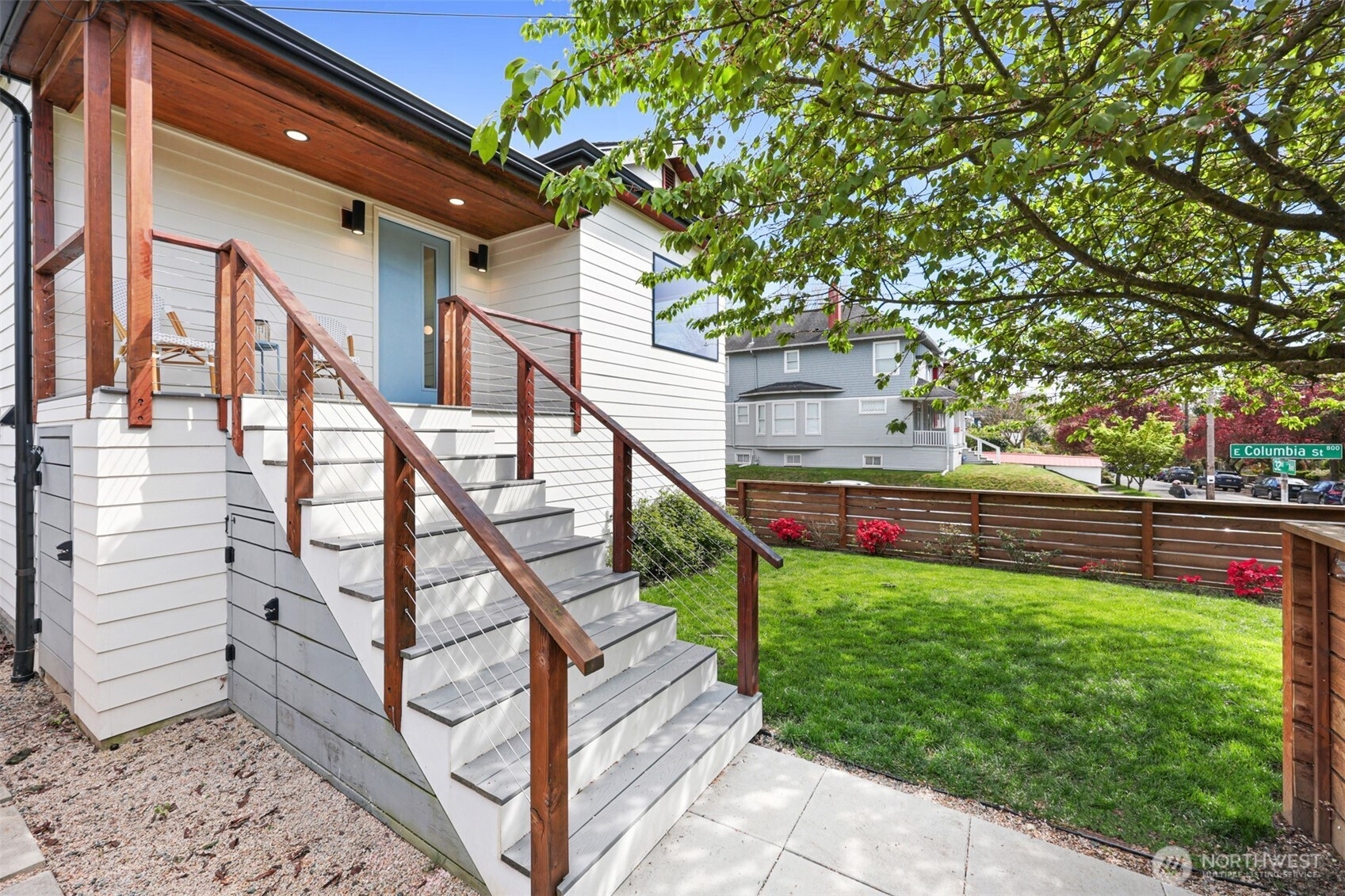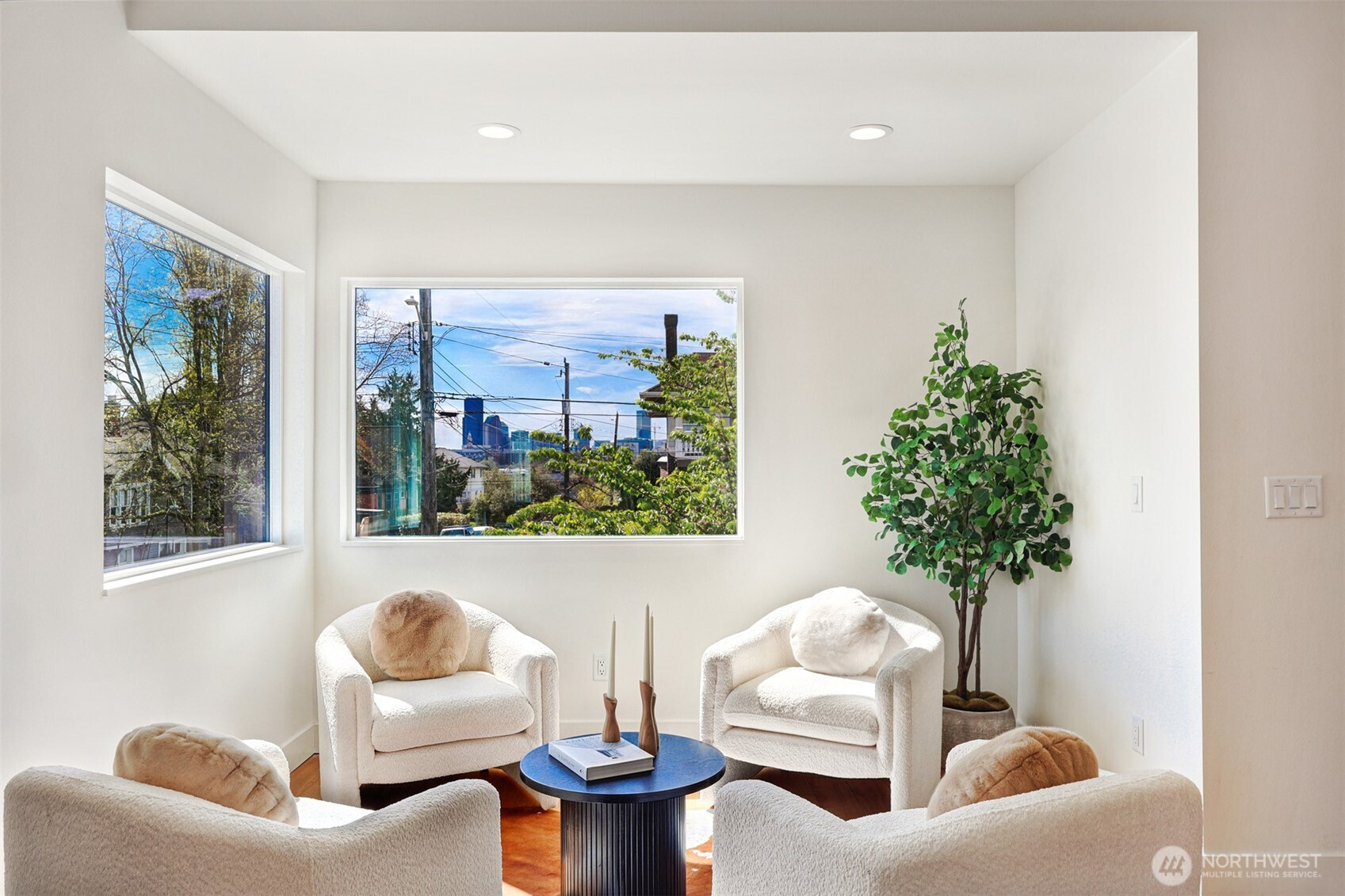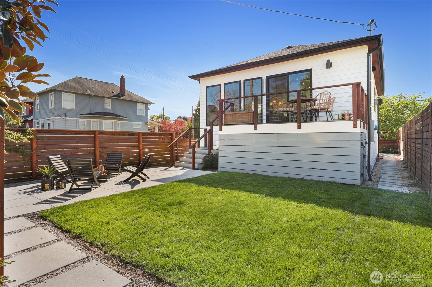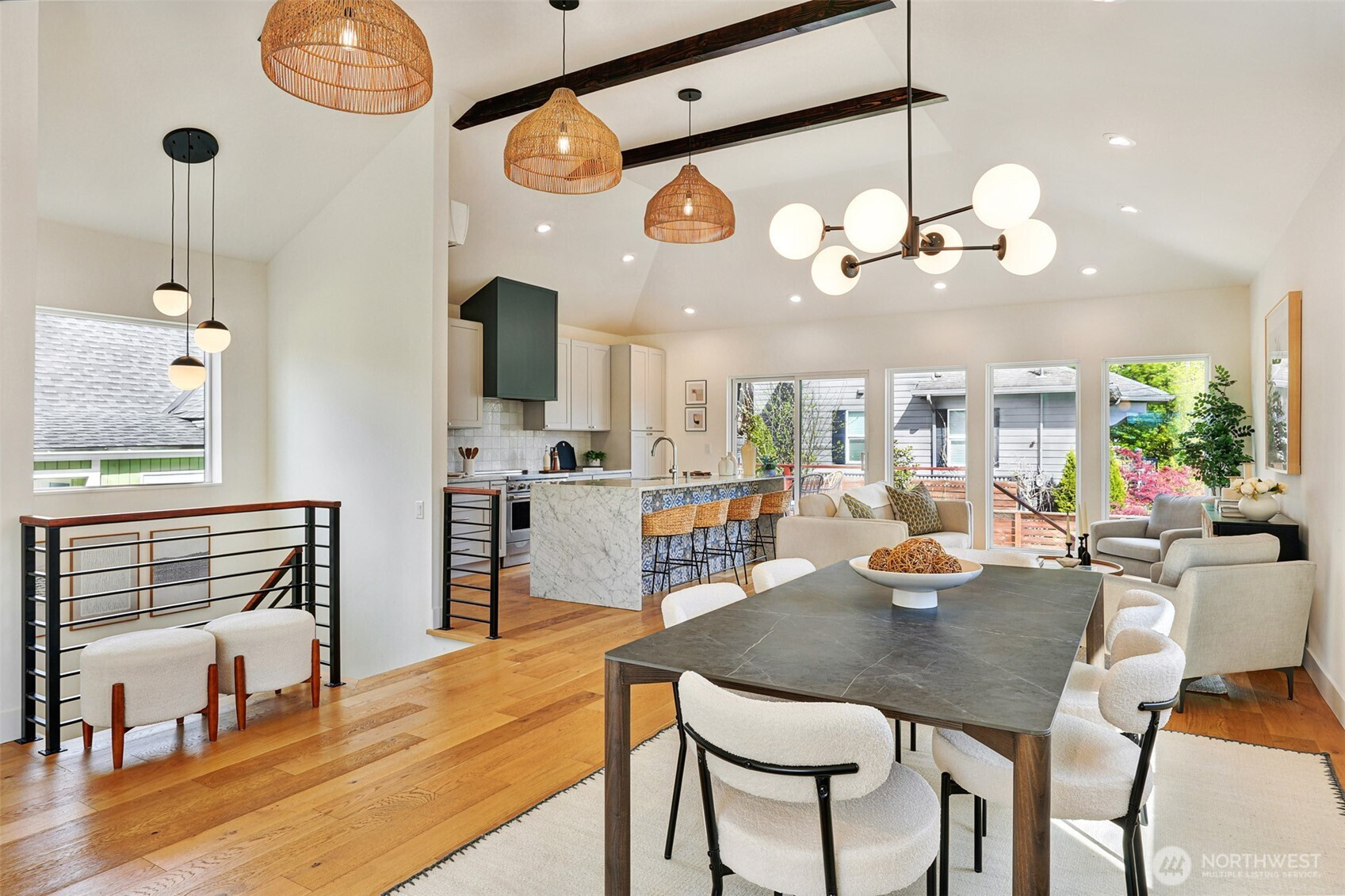 Welcome to a reimagined classic home in sought-after Madrona. Soaring ceilings bring a sense of openness, blending modern style with warm, welcoming touches. The spaces are clean and bright, with two living areas and a chef's kitchen ready for entertaining. All bedrooms are on one level, including a spacious primary suite with a walk-in closet and a luxurious bath. Enjoy views of downtown Seattle and the convenience of being close to both work and play. The Madrona retail district is a true neighborhood gem, offering coffee shops, restaurants, a market, shopping, a school, and a park—all within easy reach. Stroll to Lake Washington viewpoints, wander tree-lined streets, and connect with friendly neighbors. This is a community where pride of ownership is evident, and historic homes blend with new designs. Bus line 3 is just a block away, providing direct access to downtown, Belltown, and Capitol Hill. Once you experience Madrona, it’s easy to understand why people stay—it's a treasured neighborhood where you can build lasting memories. The home sits on a fenced corner lot with a yard and patio, plus off-street parking. Move-in ready and designed to delight your senses.