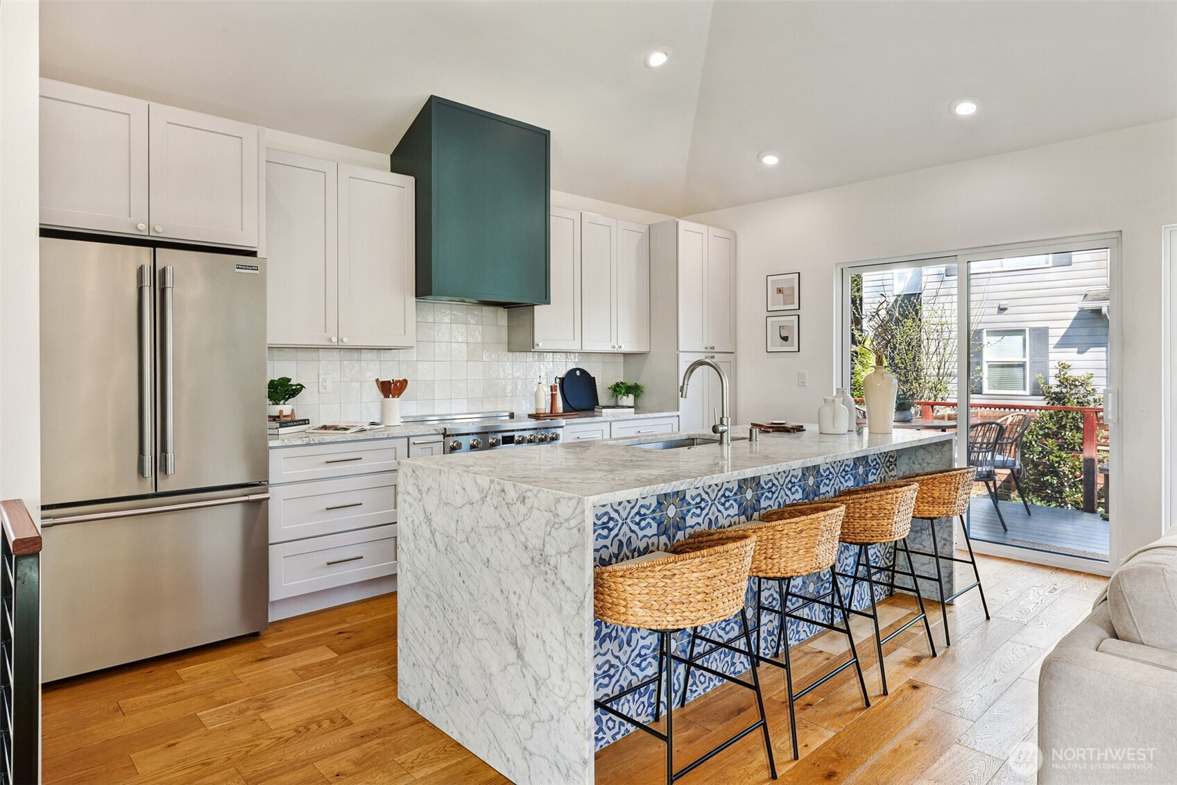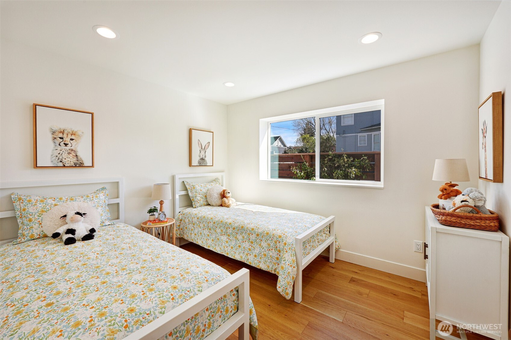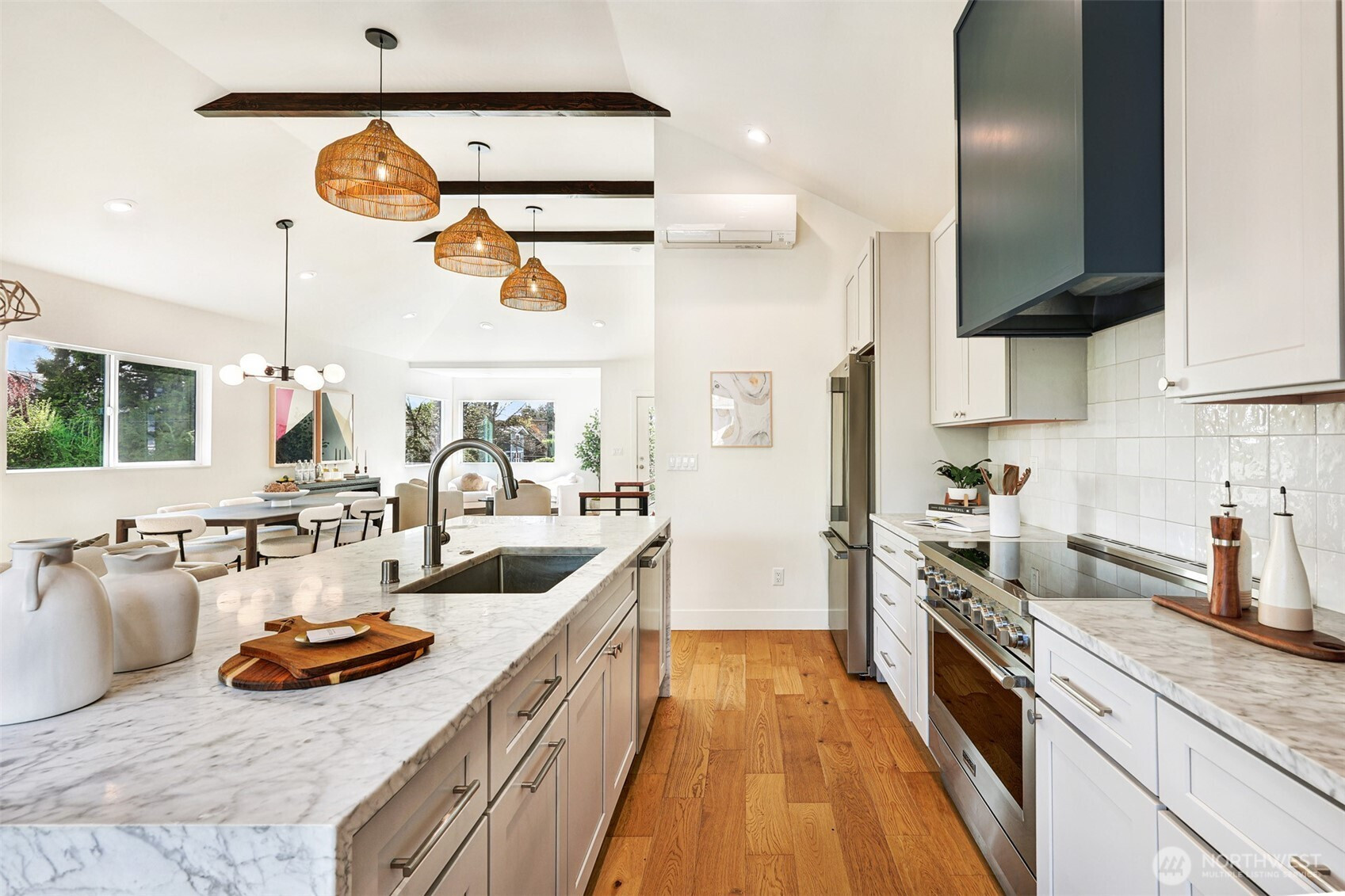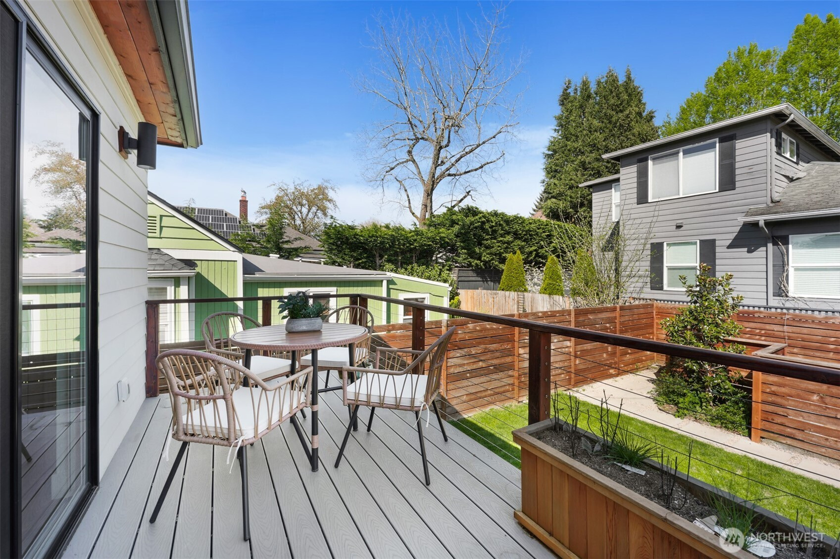 Welcome to a reimagined classic home in sought-after Madrona. Soaring ceilings bring a sense of openness, blending modern style with warm, welcoming touches. The spaces are clean and bright, with two living areas and a chef's kitchen ready for entertaining. All bedrooms are on one level, including a spacious primary suite with a walk-in closet and a luxurious bath. Enjoy views of downtown Seattle and the convenience of being close to both work and play. The Madrona retail district is a true neighborhood gem, offering coffee shops, restaurants, a market, shopping, a school, and a park—all within easy reach. Stroll to Lake Washington viewpoints, wander tree-lined streets, and connect with friendly neighbors. This is a community where pride of ownership is evident, and historic homes blend with new designs. Bus line 3 is just a block away, providing direct access to downtown, Belltown, and Capitol Hill. Once you experience Madrona, it’s easy to understand why people stay—it's a treasured neighborhood where you can build lasting memories. The home sits on a fenced corner lot with a yard and patio, plus off-street parking. Move-in ready and designed to delight your senses.