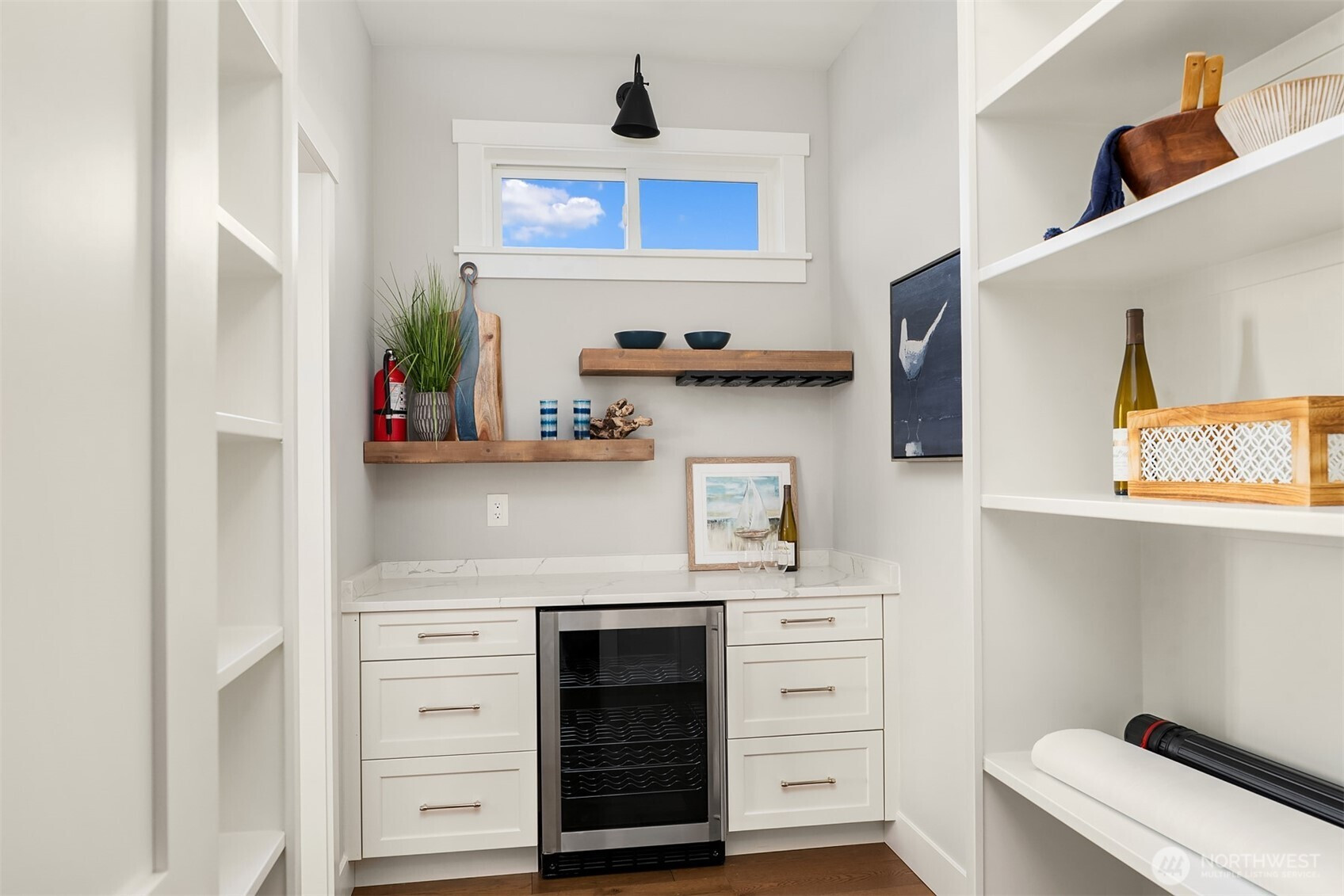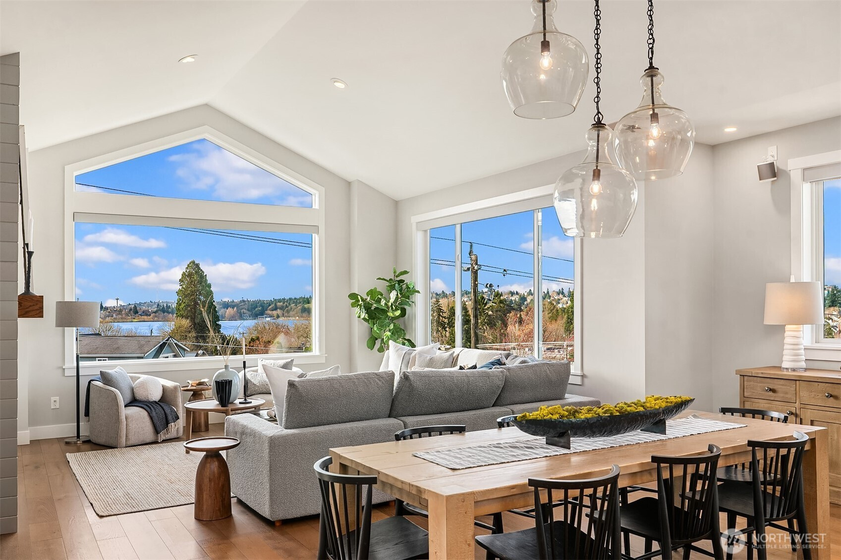 Sitting high off the street with sweeping views of Green Lake, the Skyline & the Olympics this centrally located 2019 custom built Green Lake home features high end finishes, large spaces & a gorgeous ADU perfect for multi-generational living, guests or rental income. Custom everything in this home from the high end kitchen finishes, built in cabinets/desks/mudroom, a 4-level elevator & added shop off the 2-car garage - everyone gets what they want here! The vaulted ceilings on the top level allow for supersized windows filled with southern light drenching the living room, dining room, kitchen, play space, walk in pantry & half bath. One floor down are the 4 main home bedrooms including a primary suite w/ views of the lake, fireplace, ensuite bath w/ heated floors and two walk in closets, a 2nd full bath & laundry are also on this level. The entry level features a laundry/craft/office space, a second office or guest space, a full bath & the 1 bed, 1 bath ADU with separate entrance off 80th. The ADU has high end finishes with granite slab, fireplace, custom cabinets, heated bathroom floors, large walk in closet and laundry hookups. The lower level has a large two car garage (w/EV hookup) with extra storage/shop, a mudroom with custom built ins & a temperature controlled wine cellar. With a gorgeous roof deck (& solar panels), a patio/grass area and separate garden space off the ADU, there is plenty of outdoor space to enjoy. A block to Green Lake & shops- this home has it all.