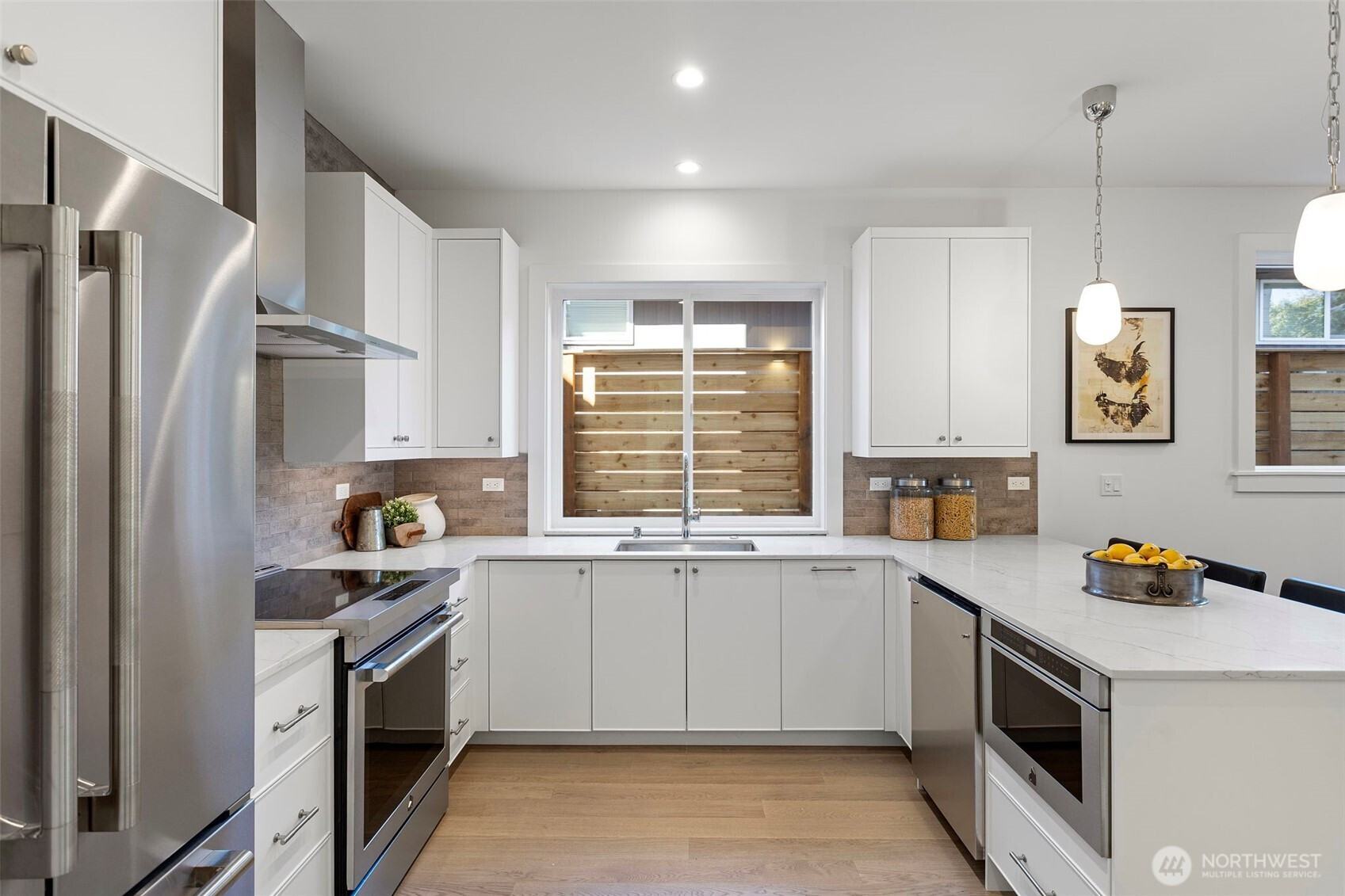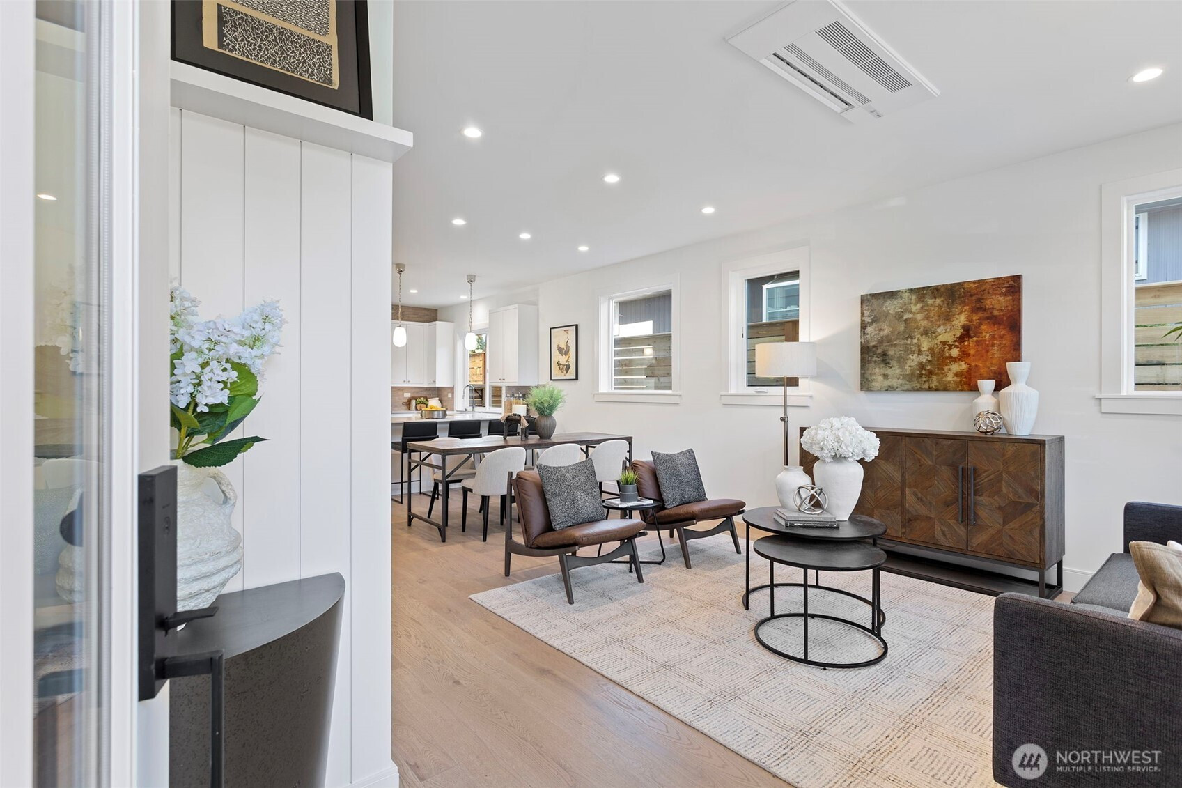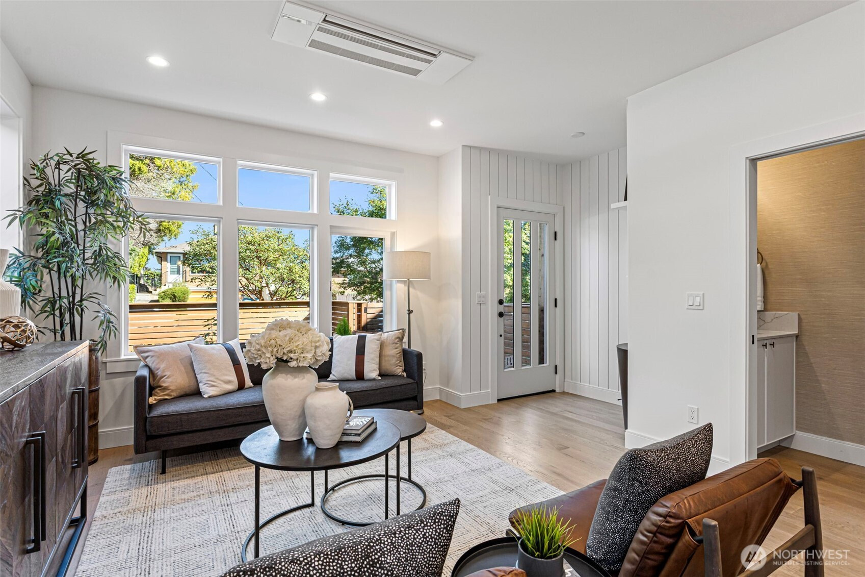 Discover contemporary living in this boutique five-home new construction community in Ballard by Roland Development. Bathed in natural light, the open-concept main level showcases thoughtful design, sleek finishes, and a welcoming entry that sets the tone. The second level features two flexible bedrooms with a shared full bath, while the top-floor primary suite offers a private, retreat-like escape. Outside, enjoy a peaceful fenced yard with low-maintenance turf—ideal for entertaining or relaxing. Complete with assigned parking and EV charging, plus easy access to transit and Ballard’s vibrant offerings—from breweries and the farmers market to Shilshole Bay—this home delivers modern comfort with unbeatable convenience.