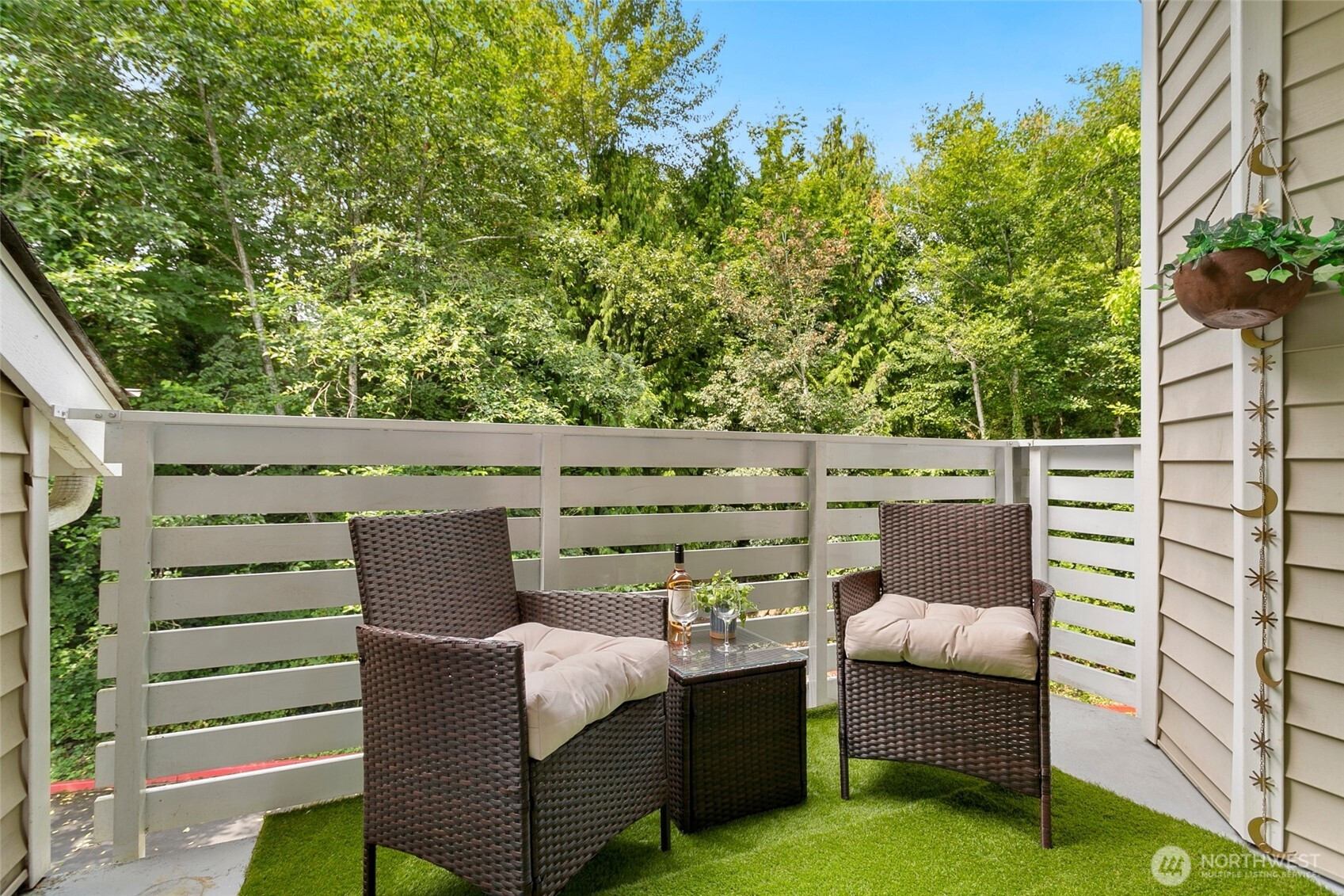 Woodland views and outstanding location for this move in ready 2 bed/1 bath condo. This top floor/end unit home features an open concept floorplan that’s bathed in natural light with spacious 9 foot ceilings and new designer plush carpeting throughout. Gourmet kitchen is a cook’s delight and perfect for entertaining with large granite counters, contemporary maple cabinets, stainless steel appliances with brand new dishwasher, and breakfast bar. Large primary bedroom with huge walk-in closet. The additional bedroom is generously sized with its own walk-in closet. In unit laundry with full size washer/dryer for added convenience. Bath has been updated with a new toilet and bidet. Freshly painted living room, dining room, and smaller bedroom. Located at the back of the complex adjacent to the greenbelt. Secured gated entry with 1 car carport parking, tons of visitor spaces, and a patio storage space. Healthy and pet friendly HOA with dues at $530/mo cover garbage, common areas, earthquake insurance, road maintenance, & security services all with no special assessments. HOA amenities include a large inground pool, spa/hot tub area, and club house. Tons of outdoor recreation also nearby, including Gene Coulon Park, Seward Park, and all the hiking trails along the Cedar River. Conveniently located near The Landing, Southcenter, IKEA, Costco, Uwajimaya, and more. Central and ideal commuter location via mass transit (Renton Transit Center/Tukwila 1 Line) or easy access to I-5/I-405.