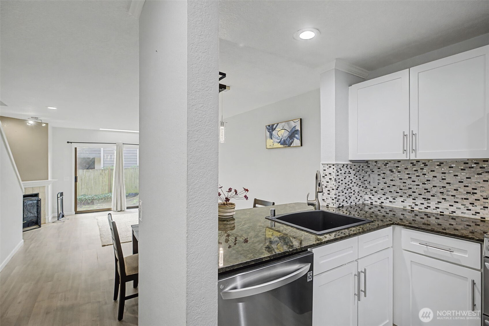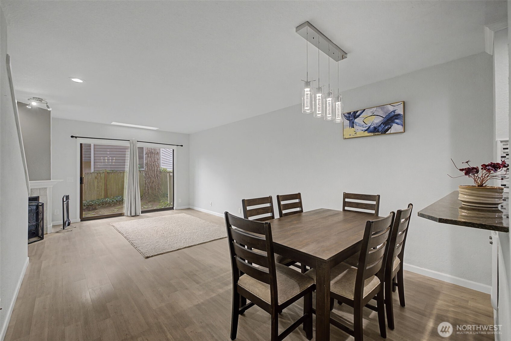 Discover this beautifully updated townhome in the Evergreen Manor community. With an incredible blend of comfort, style, and convenience, this 2-bedroom, 1.5-bath home features fresh interior paint, new flooring and updated appliances, creating a modern, move-in-ready living experience. The inviting entry opens to a bright and functional kitchen with ample cabinetry and pantry storage, flowing seamlessly into a spacious living area with a cozy fireplace and dining space. Step outside to your private patio perfect for relaxing, entertaining, or pets. Both bedrooms offer generous space with double closets, including a primary bedroom that easily accommodates a king-size bed. Spacious full size bathroom in addition to a in-unit laundry located on the second level adds everyday convenience. A detached single-car garage with opener is located just steps from the front door, providing easy access and additional storage. No rental cap, making this an excellent opportunity for investors or future flexibility for owner-occupants. Ideally located close to shopping, dining, parks, and major commuter routes, this home offers low-maintenance living in a prime Kenmore location.