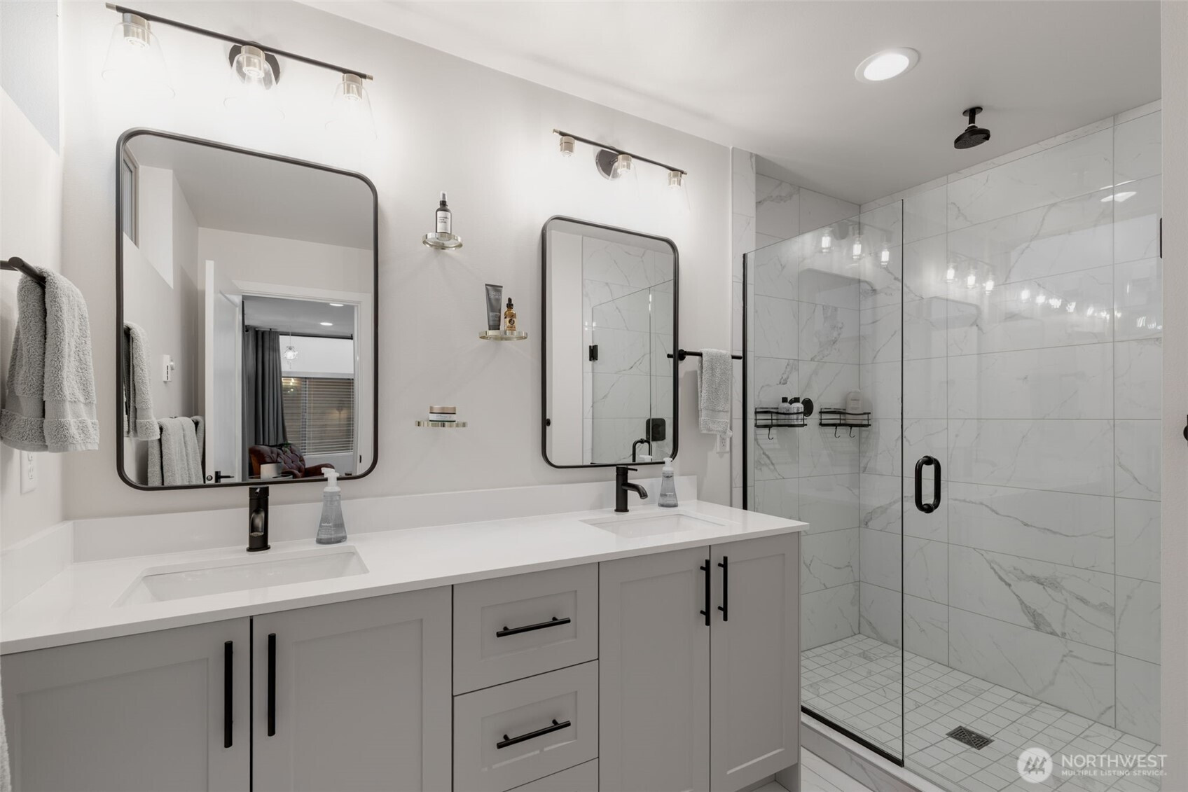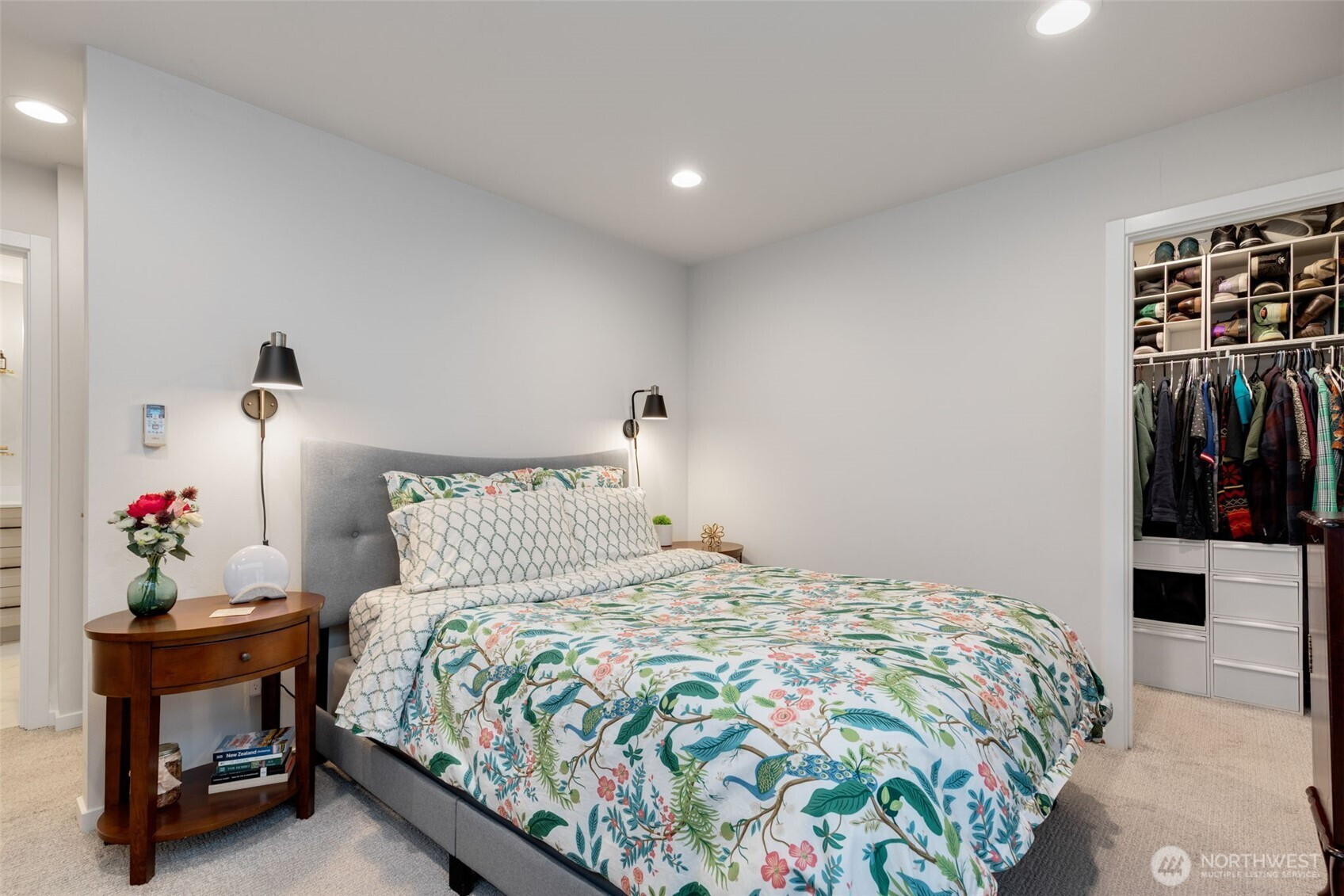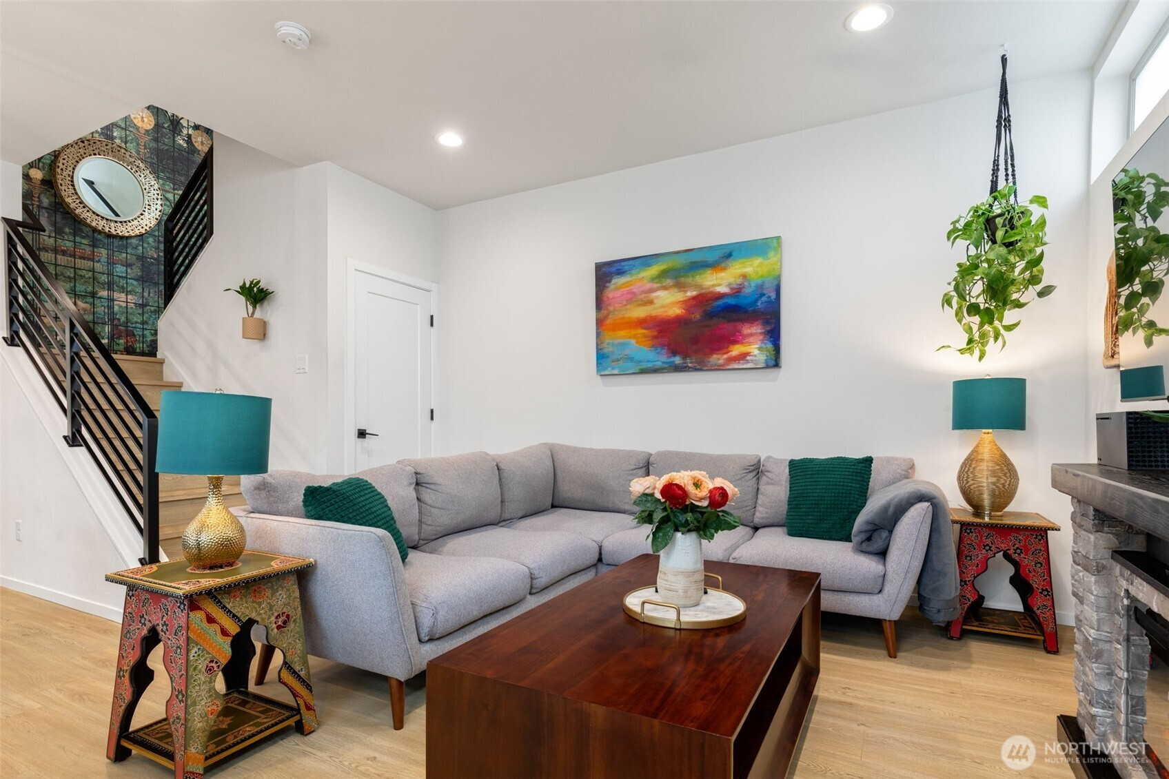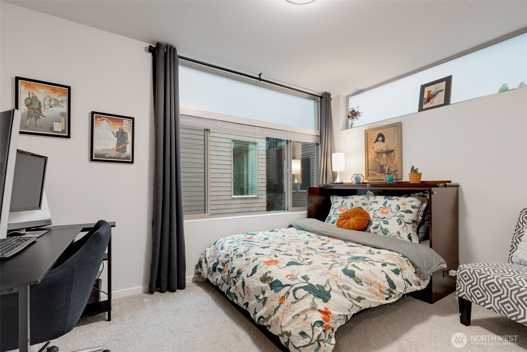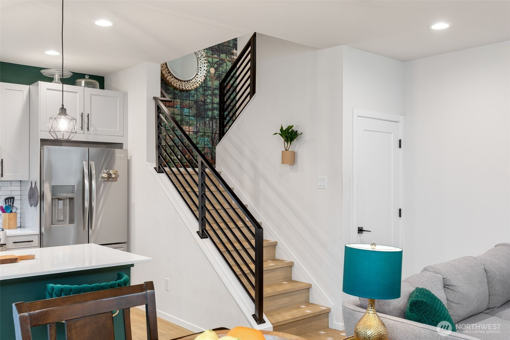 Tucked into an 8-unit community, this Loyal Heights townhome was built for generous, easy living. The main level opens from living room to kitchen, with quartz counters, stainless appliances, and a gathering-ready island, with room to lounge, dine, and entertain. Vaulted ceilings and clerestory windows flood the space with light while keeping things private. Two bedrooms and a full bath on the middle level offer flexibility for guests or work-from-home life, while the top-floor primary suite feels like a getaway—complete with a walk-in closet and spa-like bath with double vanity and custom tile shower. Head up to the rooftop deck for territorial views and a quiet moment above it all. Mini-splits keep things comfortable year-round, street parking close to your door is always easy to find. All set on a leafy street near parks, and easy to access grocery stores (including Metropolitan Market), with Ballard and Golden Gardens close at hand. Be close to the heartbeat of NW Seattle but in a quiet enclave in an easy-to-maintain home.