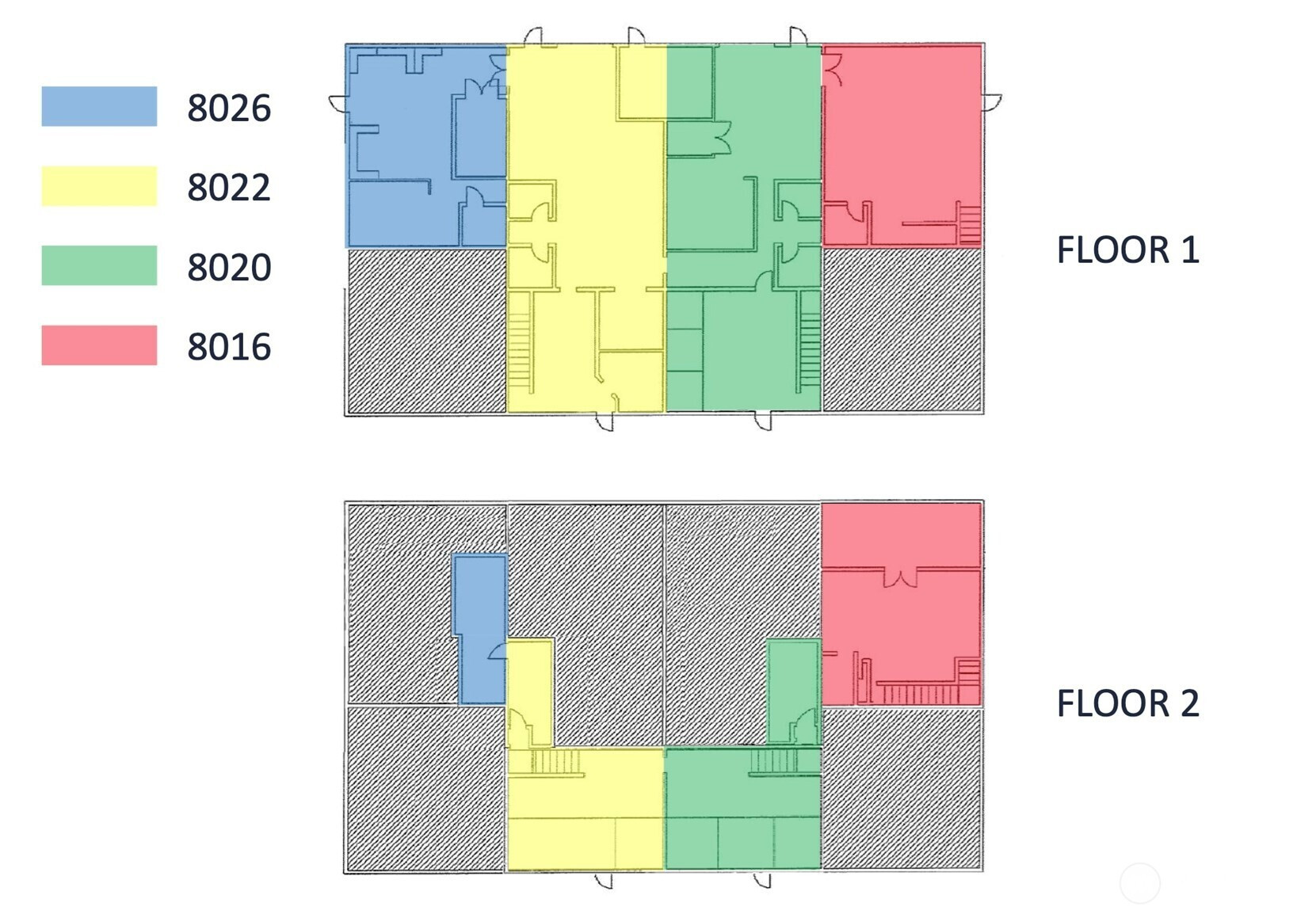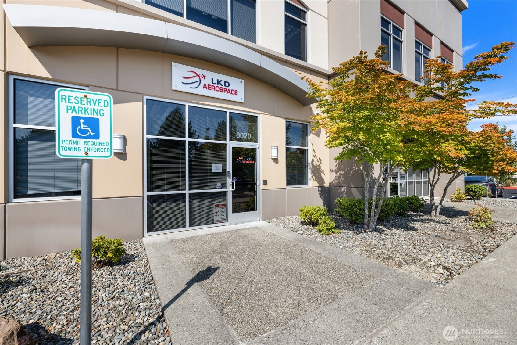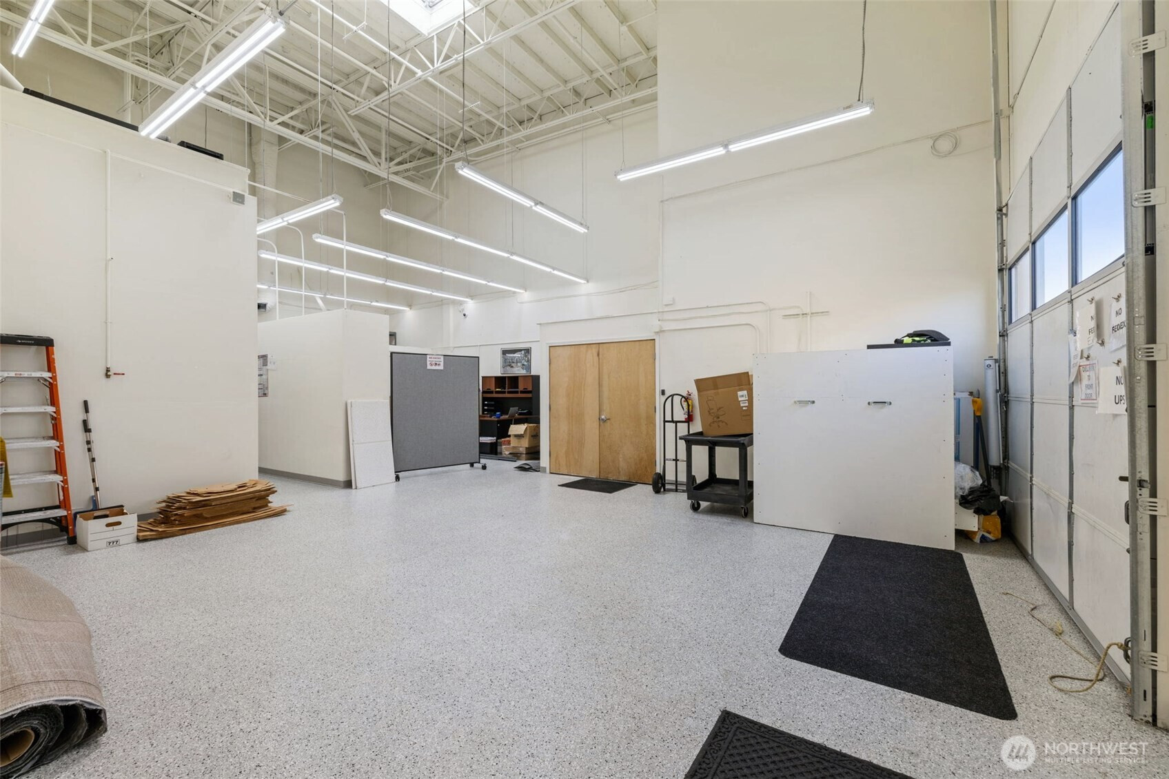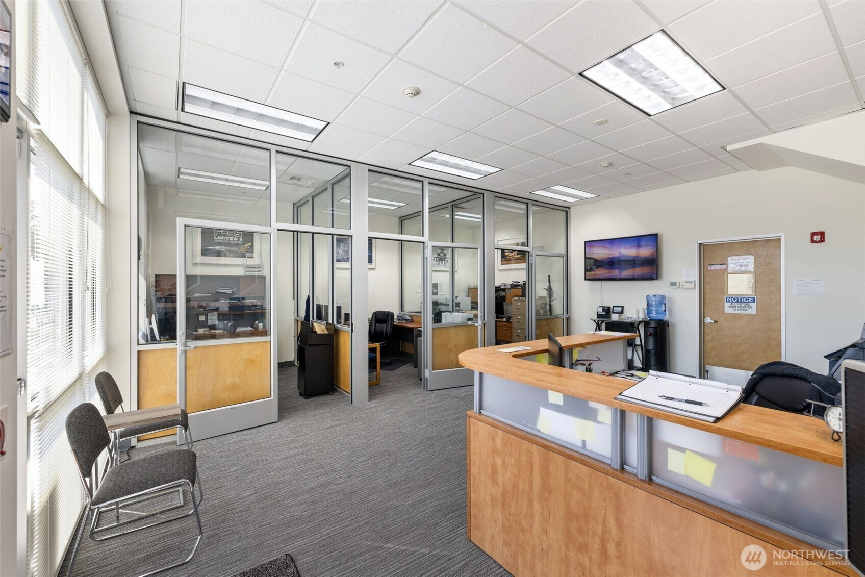 8020 Bracken, is an office/warehouse suite featuring high-end finishes with contemporary metal and glass offices on both levels. The warehouse area includes 3-phase power, 20-foot clear height, insulated grade-level door with windows, and skylights for natural light. Layout includes reception, 3 downstairs private offices, 3 upstairs private offices, warehouse, kitchenette, 2 restrooms, and storage space. The well-managed HOA has never required a cash call, operates the property at a first-class level, and maintains strong reserves. Recent upgrades include new sprinkler heads, roof, interior and exterior LED lighting, interior flooring and paint, and parking lot seal coat.