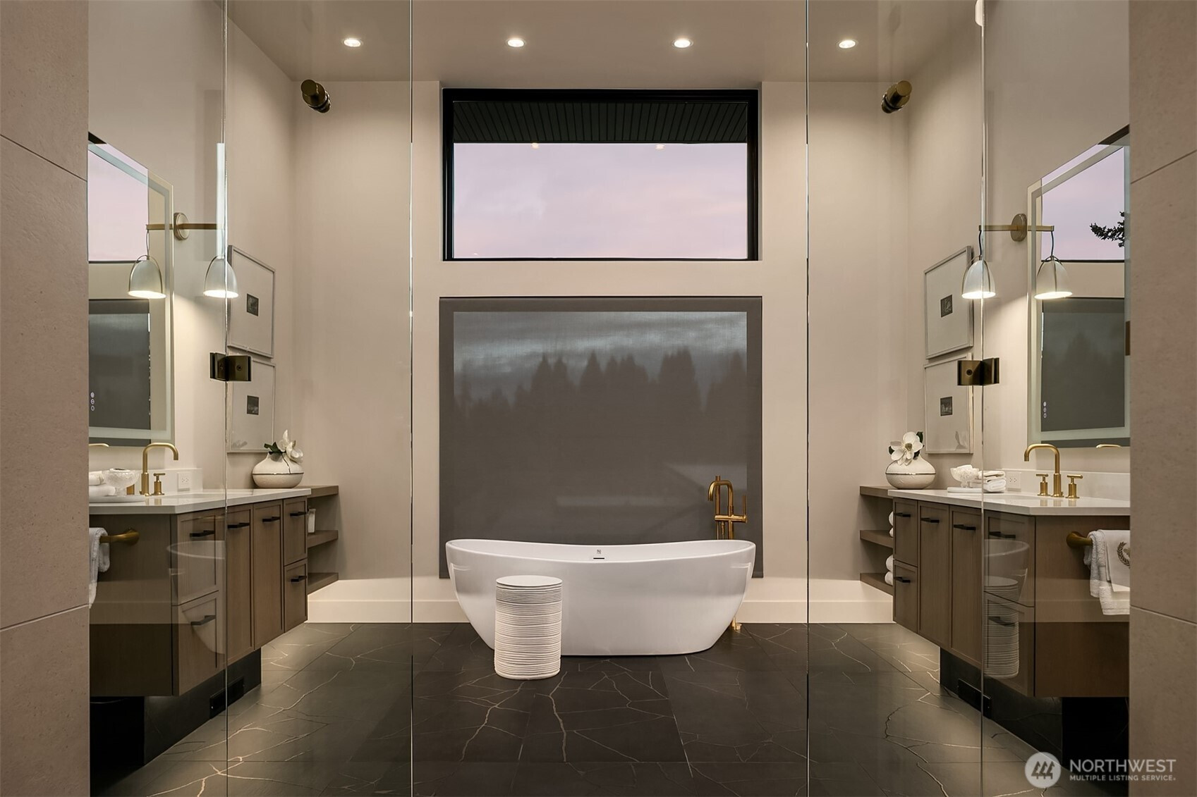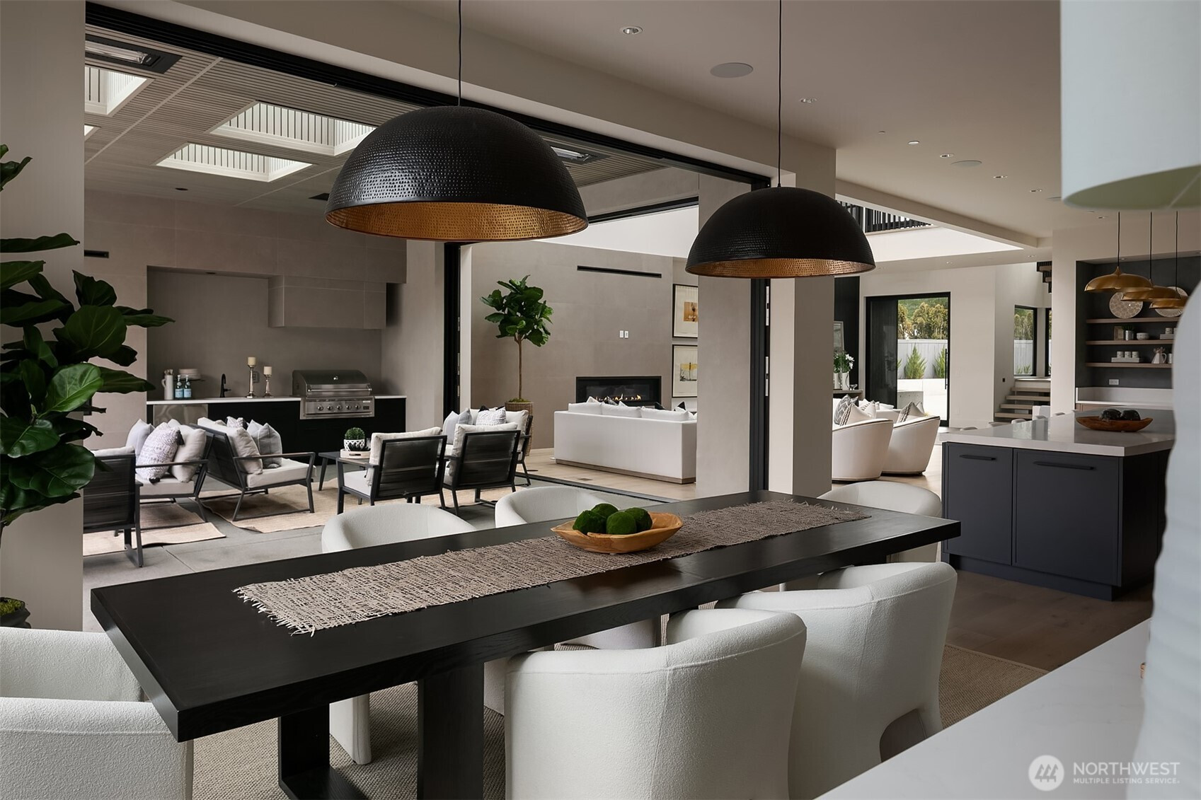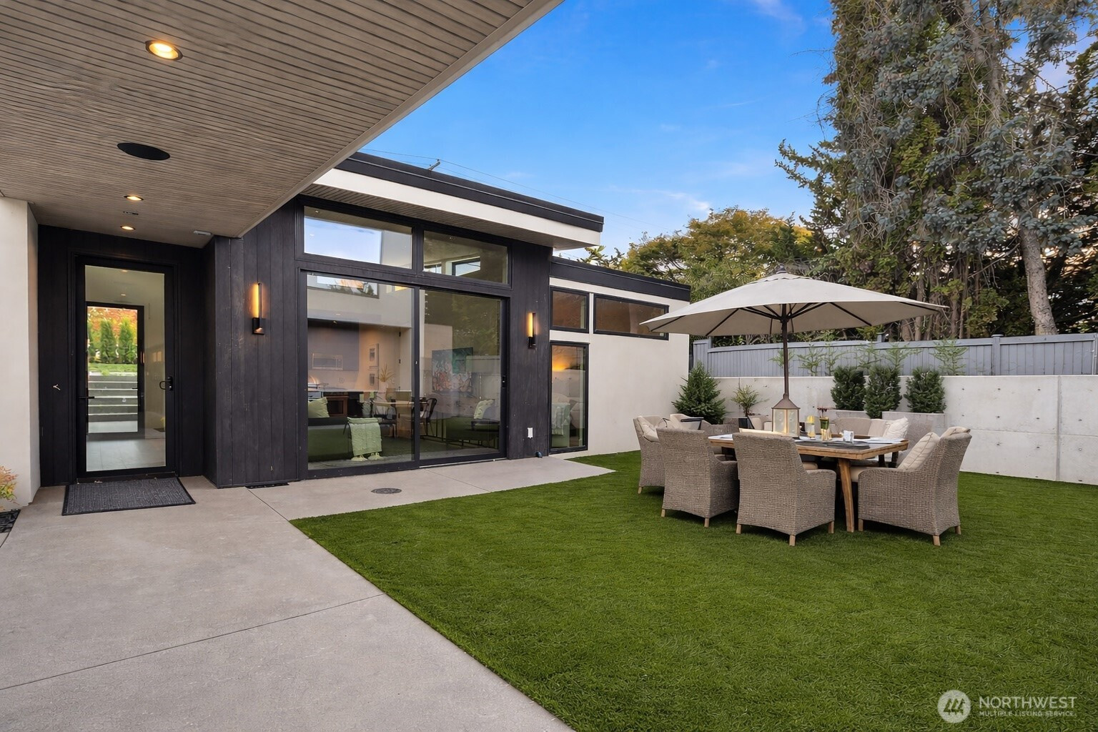 Elegant, elevated and filled with natural light, this exceptional residence offers a refined balance of architectural presence, thoughtful design and estate scale living. Sited on a flat half-acre lot & complemented by a 1-bedroom guest house, the property delivers presence & everyday livability. The main home is discreetly tucked down a private drive, where a dramatic pivot door opens to a stunning great room with soaring 20-foot ceilings & skylights defining the great room. The kitchen is designed to impress & perform, featuring an expansive 18-foot island, full prep kitchen, premium appliances & custom cabinetry ideal for daily living. Fleetwood sliding doors extend the living space to a large covered patio with skylights, built-in BBQ, fireplace & heaters, opening to expansive, flat grounds—an entertainer’s dream year round. Each bedroom is thoughtfully designed with its own en suite bath & walk-in closet. The primary suite is a true sanctuary, offering a serene bath, abundant closet space with a three-way dressing mirror & a thoughtful dressing hall with built-ins and a refreshment station. Floor to ceiling windows flood the space with natural light. The detached one-bedroom guest house offers flexibility for extended stays, a home office, or additional living space, complete with a kitchen, one-car garage & its own courtyard with a built-in BBQ. Ideally located steps to Medina Park, the Beach Park & the neighborhood Kitchen and Market. This half-acre setting delivers.