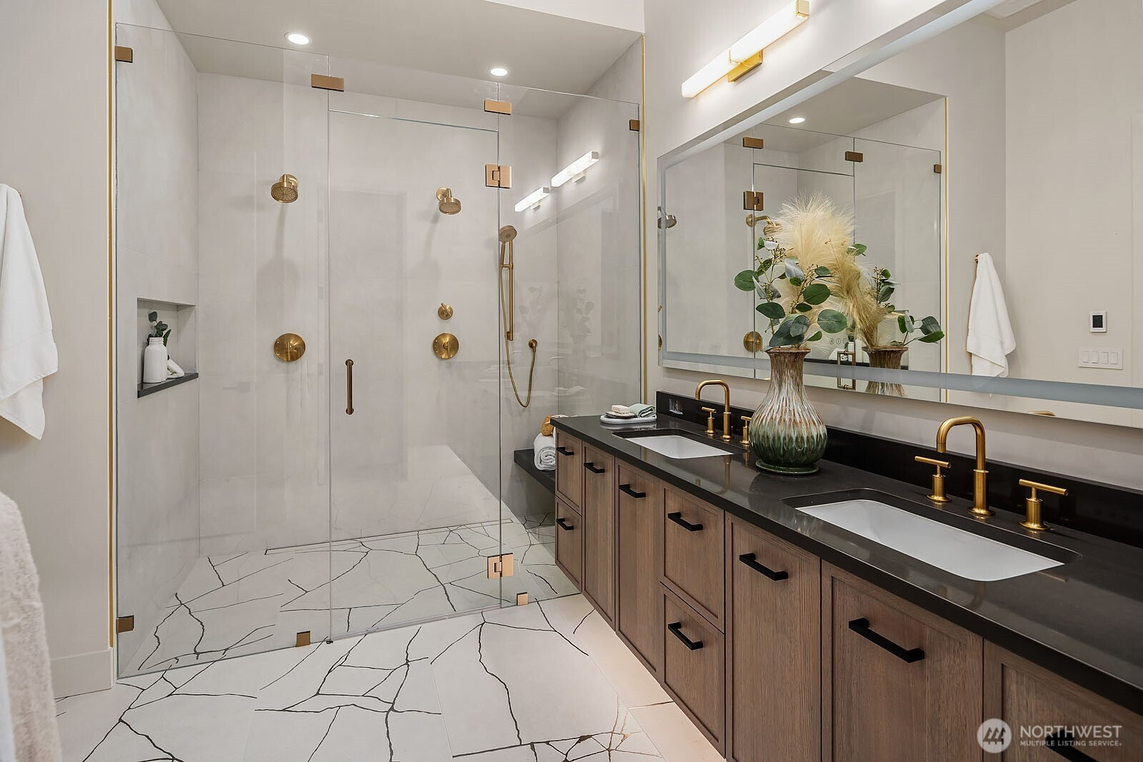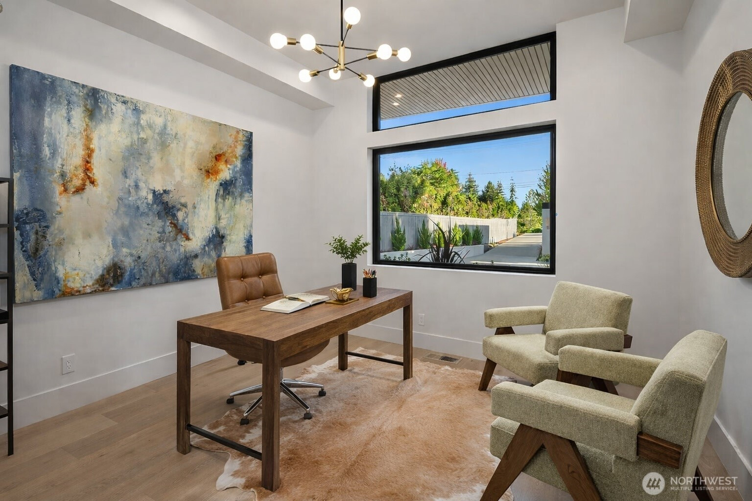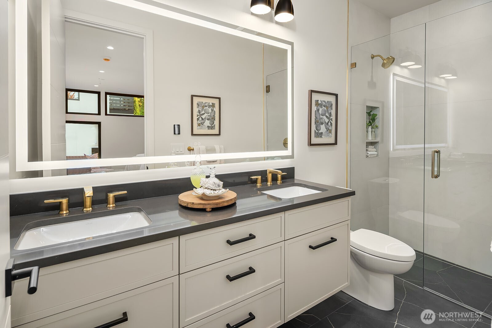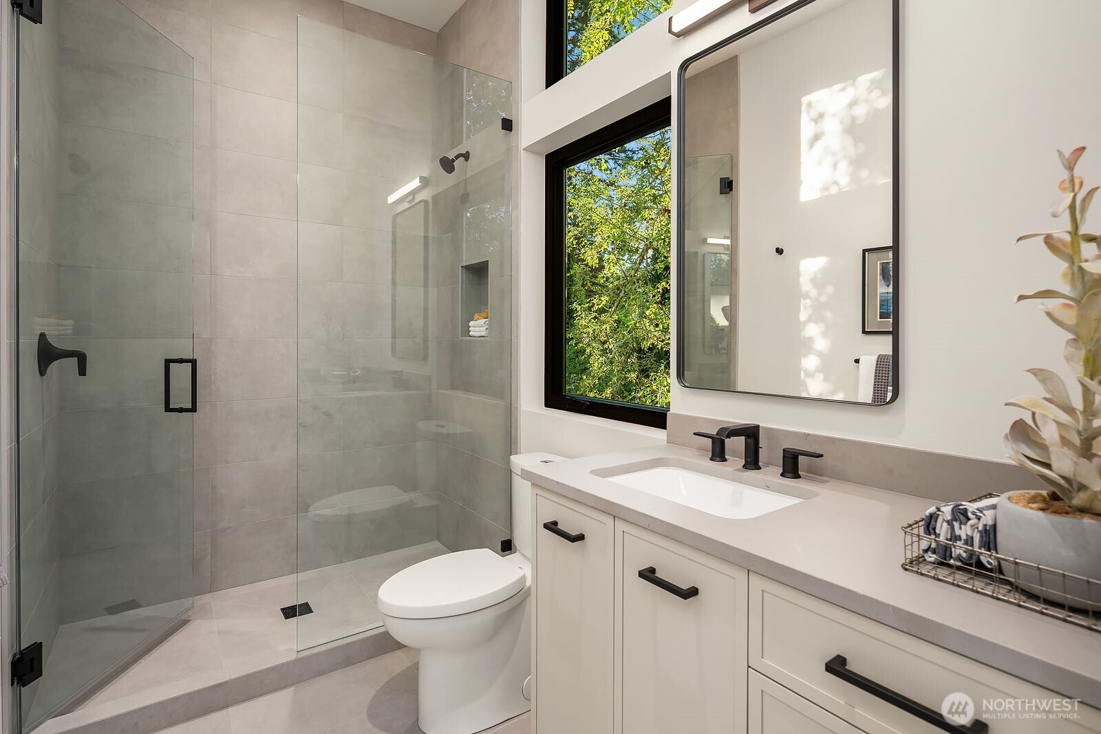 Elegant, elevated and filled with natural light, this exceptional residence offers a refined balance of architectural presence, thoughtful design and estate scale living. Sited on a flat half-acre lot & complemented by a 1-bedroom guest house, the property delivers presence & everyday livability. The main home is discreetly tucked down a private drive, where a dramatic pivot door opens to a stunning great room with soaring 20-foot ceilings & skylights defining the great room. The kitchen is designed to impress & perform, featuring an expansive 18-foot island, full prep kitchen, premium appliances & custom cabinetry ideal for daily living. Fleetwood sliding doors extend the living space to a large covered patio with skylights, built-in BBQ, fireplace & heaters, opening to expansive, flat grounds—an entertainer’s dream year round. Each bedroom is thoughtfully designed with its own en suite bath & walk-in closet. The primary suite is a true sanctuary, offering a serene bath, abundant closet space with a three-way dressing mirror & a thoughtful dressing hall with built-ins and a refreshment station. Floor to ceiling windows flood the space with natural light. The detached one-bedroom guest house offers flexibility for extended stays, a home office, or additional living space, complete with a kitchen, one-car garage & its own courtyard with a built-in BBQ. Ideally located steps to Medina Park, the Beach Park & the neighborhood Kitchen and Market. This half-acre setting delivers.