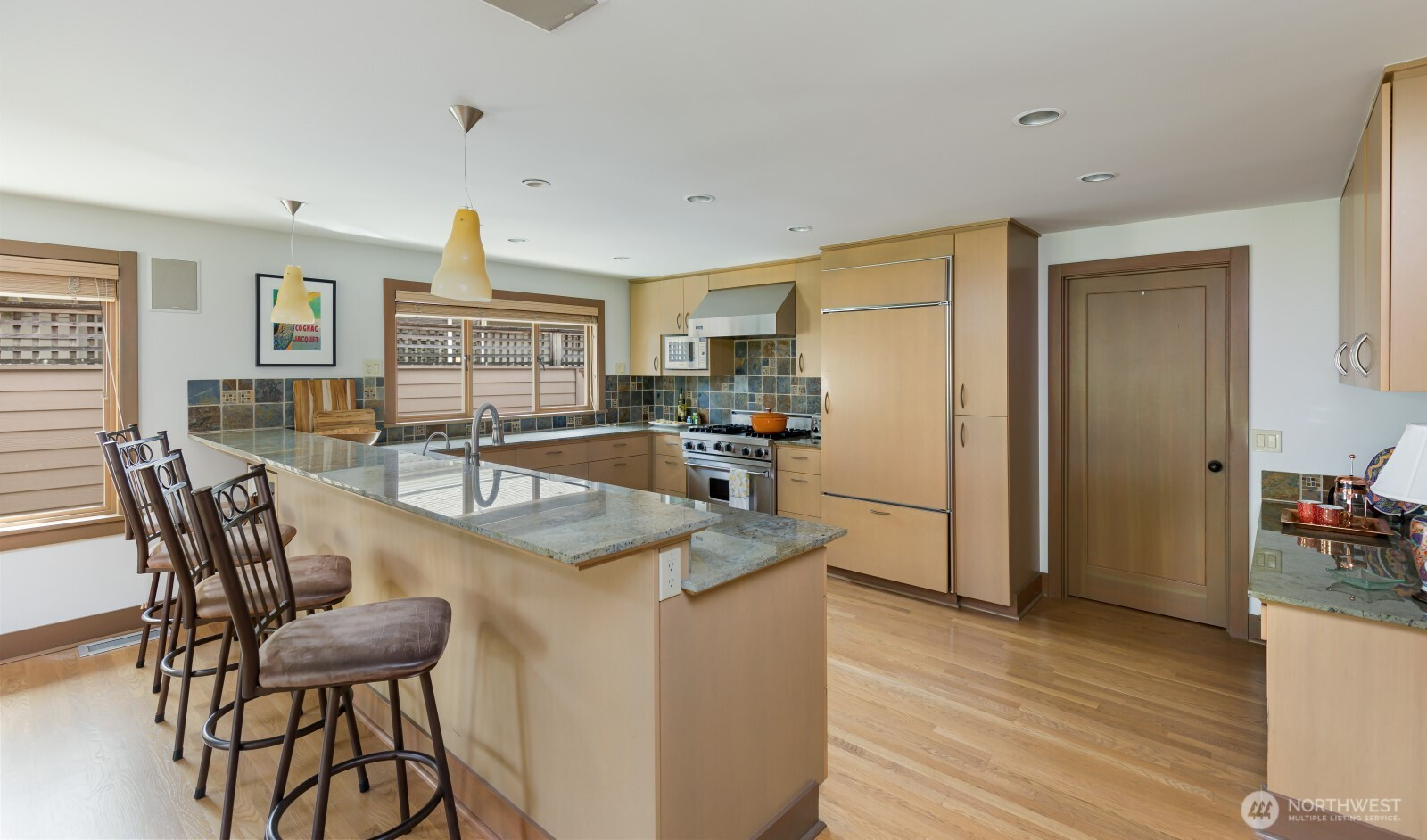 Distinctive Rambler on the Sand Point Country Club fairway was fully renovated in 2001, with planning and design by David Olson Architects. The quality found in this home is rare and the floor plan exceptional, incorporating a Living, Dining, and Family Room arranged enfilade, promoting natural sightlines and a gentle flow for ease of gathering. The rooms where you’ll live and entertain command the golf-course vistas, seamlessly extending your sense of space and privacy. Sleeping rooms inhabit the North wing, with two Bedrooms sharing a hall Bath, and the Primary with a walk-in-closet and en-suite, presenting dual sinks, artisan tile, and a towel warmer. The Powder and Den, also a possible guest area, are apart from the hub, recessed down a hall off the Entry. Outdoors, mature plantings intertwine through the courtyard and wind around back, where a bluestone patio invites you to stay a while. Irrigation for easy care! Fine finishes, including European fixtures in two Baths, extensive use of wood that adds warmth and depth to every room, natural surfaces, and light fixtures that are as much art as craft. Envy-worthy Kitchen with walk-in pantry, Sub-Zero fridge and Viking range will elevate your culinary pursuits. A true Laundry Room connects to the two-car Garage. Turnkey, with new and updated systems and a location that can’t be replicated. Restaurants, arts, culture, groceries, sporting opportunities, world class learning, lakes, and shopping - all within reach!
