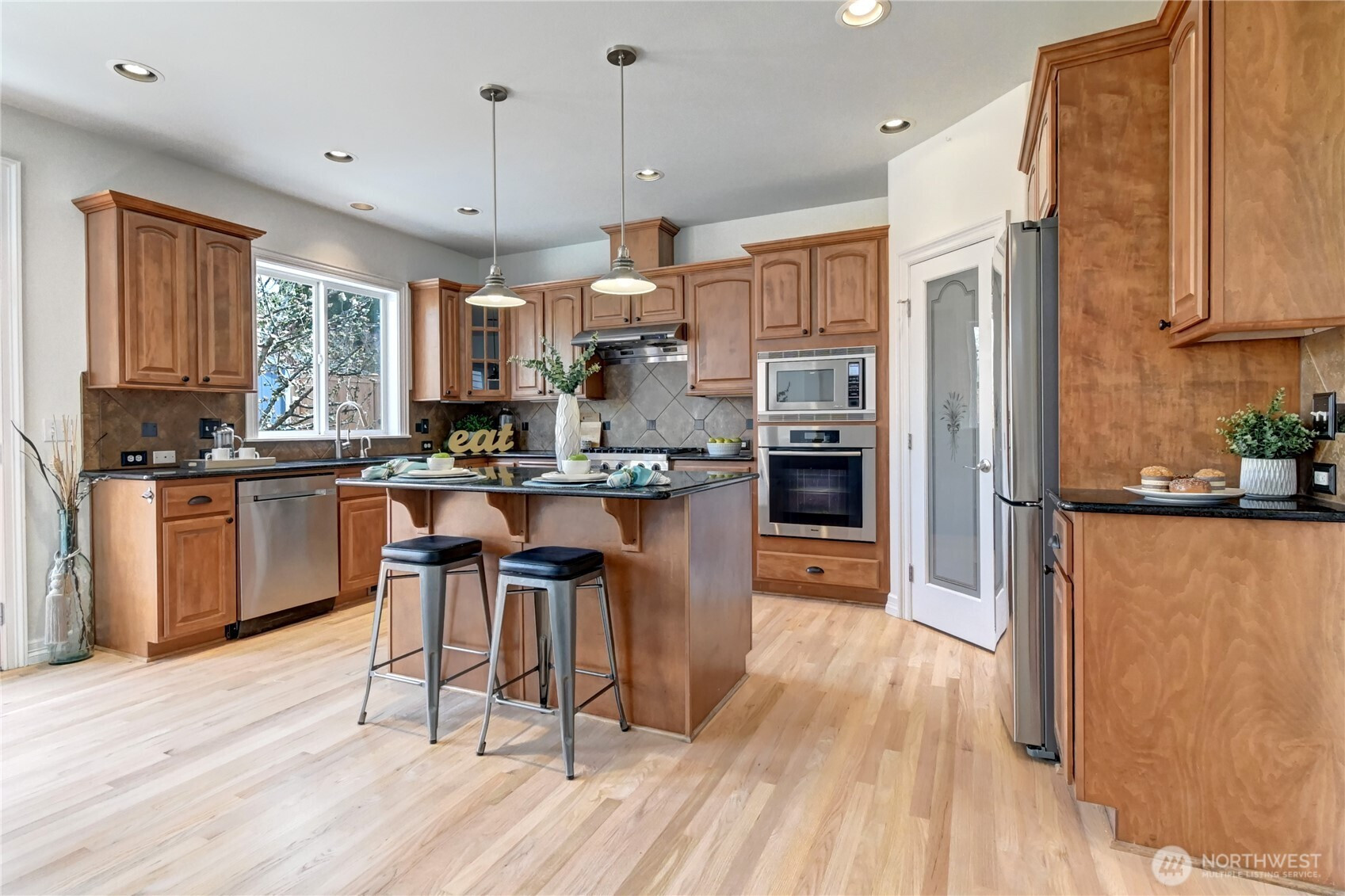 Welcome to your South Rose Hill Sanctuary! Nestled in a quiet, close-knit enclave just minutes from Google, Microsoft, and I-405, this meticulously maintained residence offers the perfect blend of high-end elegance and outdoor freedom. Pre-inspected and boasting a "new everything" list—including a new roof, gutters, AC, interior/exterior paint, HW heater, plush carpeting & newly refinished hardwood flooring & crawl space—this home is truly turn-key. The Backyard of Your Dreams: The crown jewel of this property is the sprawling, 95-ft-deep rear lot. Fully fenced & professionally landscaped, this private oasis features a newly stained fence, raised garden beds, and storage sheds. Entertain in style on the oversized paver-stone patio under a custom gazebo, all while enjoying the serene backdrop of an adjacent greenspace & the Rose Hill Meadows Park. Sophisticated Living. Inside, discover a chef’s kitchen with slab granite and custom cabinetry, a main-floor den with detailed millwork, and a great room designed for gathering. Upstairs, the master retreat offers a spa-like 5-piece bath with skylights, towel warmer & walk-in closets. All four bedrooms feature Custom Closet systems, while the massive bonus room is wired and ready for your dream home theater. Unbeatable Location: Walk to Rose Hill Elementary or Lake Washington High School. With an oversized 3-car garage and proximity to trails and transit, this is the ultimate Kirkland lifestyle.