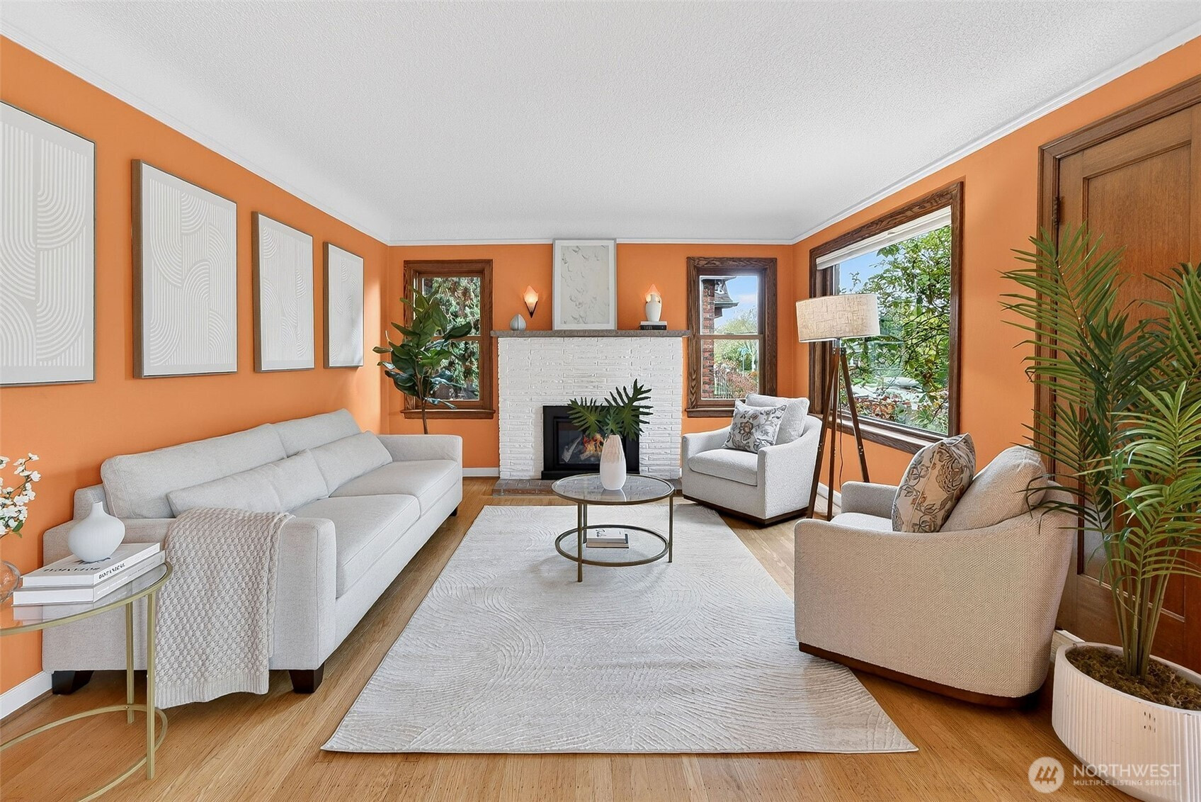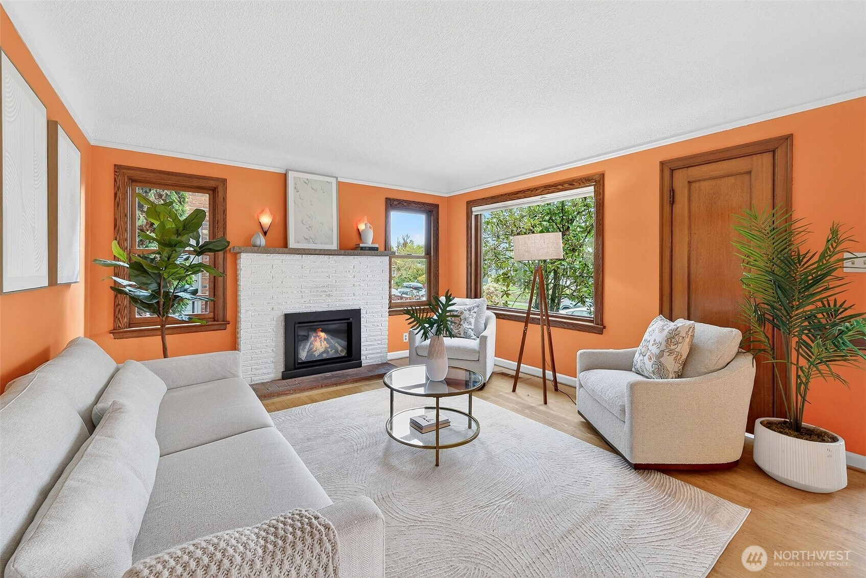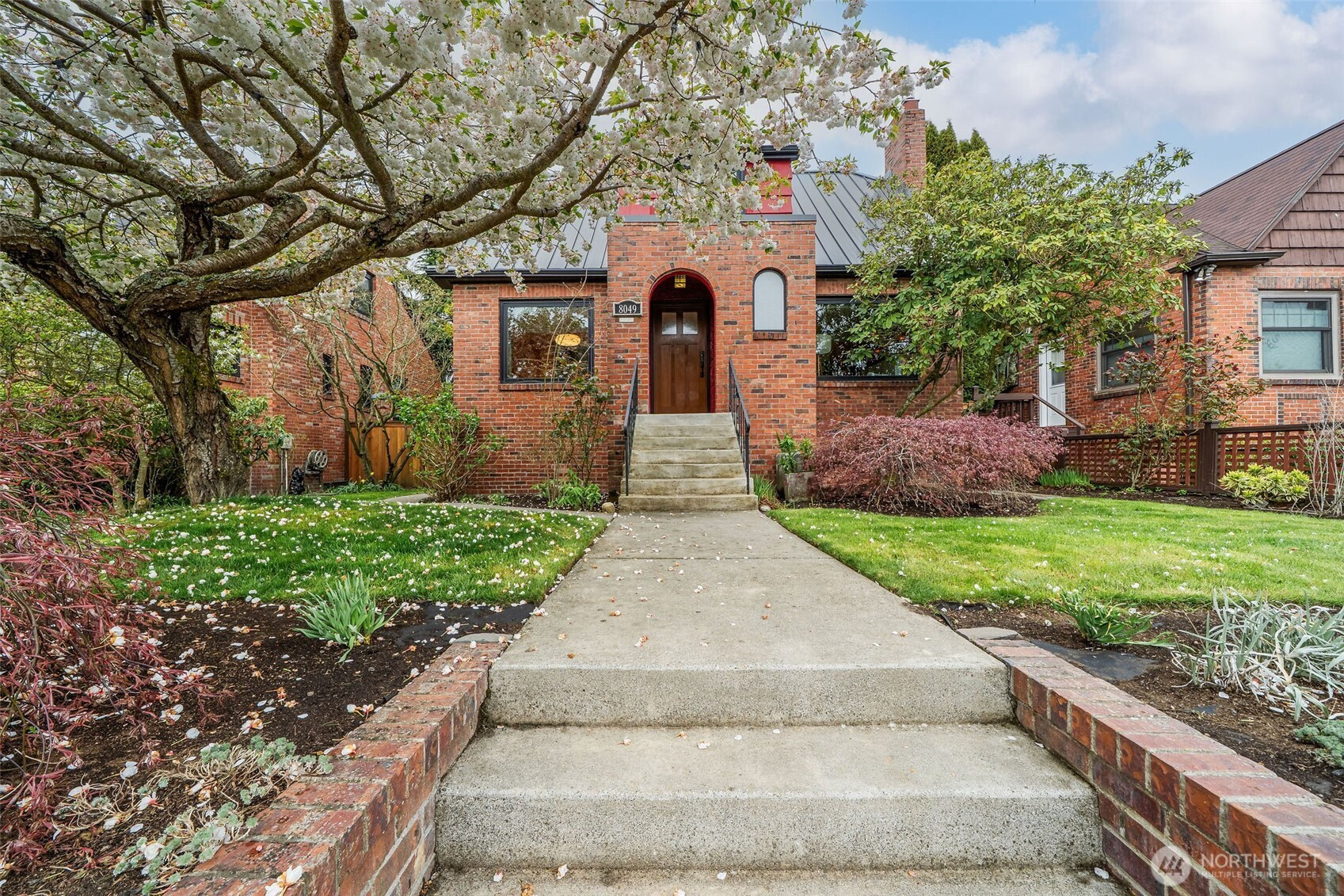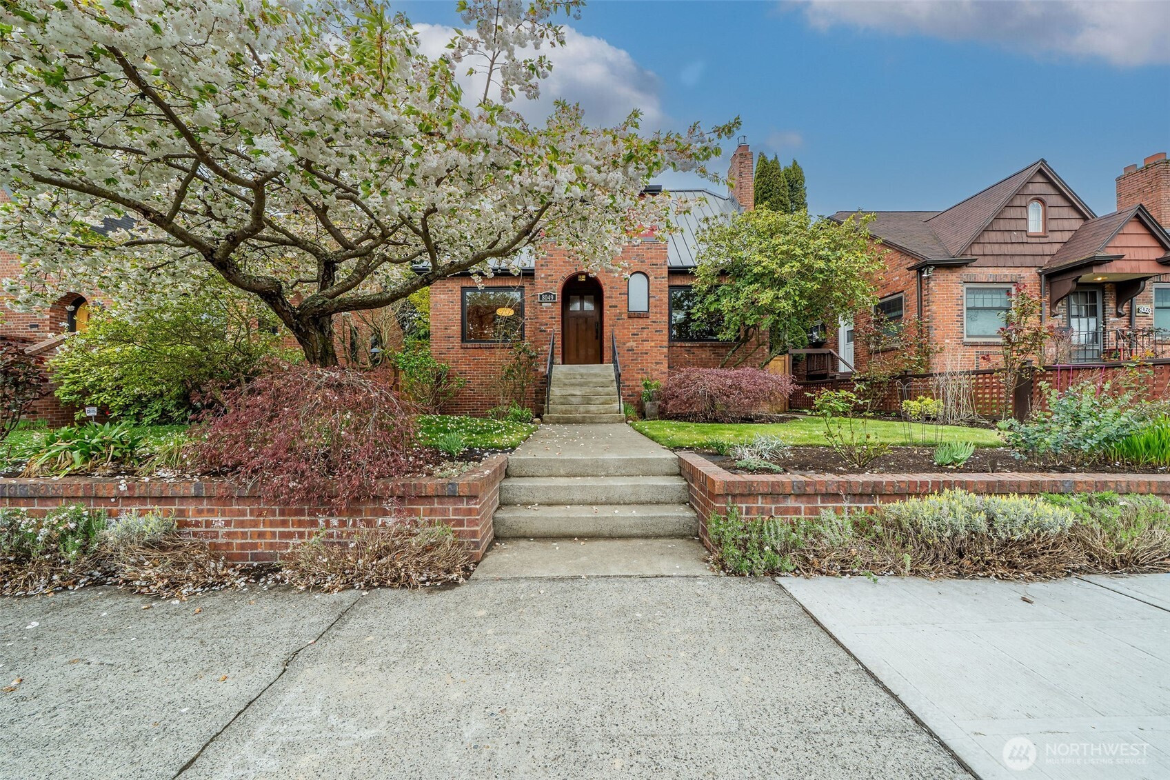 Timeless brick Tudor charm in the heart of Loyal Heights. This 4-bedroom home has been meticulously maintained and thoughtfully improved by the same owners for over a decade, with genuine pride poured into every corner. Inside, warm Carnival-painted walls and a glowing gas fireplace make every morning feel like an occasion. Fresh carpet throughout, two fully remodeled bathrooms, whole-house re-plumb, Andersen windows throughout, and a finished basement that truly delivers: new LVP flooring, a spacious rec room, and a flexible fourth bedroom perfect as a home office or guest suite. Outside, the craftsmanship continues. A metal roof, brick front wall, custom stonework side yard with drainage, and an 8-foot alley fence are just a few of the lasting investments made over the years. The backyard is a private oasis — a large patio ideal for entertainers and gardeners alike, complete with raised vegetable and herb planters already in place. There are homes that are maintained — and then there are homes that are truly loved. This is one of them. Nestled in one of northwest Seattle's most peaceful and well-established neighborhoods, just minutes from the bustle of downtown Ballard and the shores of Puget Sound. Golden Gardens Park, the Loyal Heights Community Center, and beloved local spots like Larsen's Bakery are all close at hand — walkable streets and a strong sense of community make this one of Seattle's most livable and loved corners of the city.